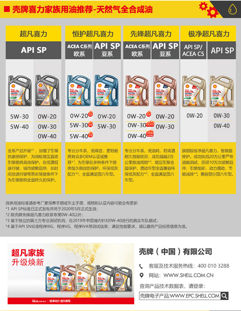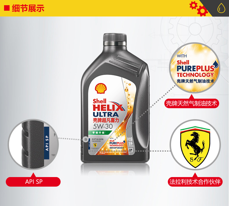 壳牌(Shell)超凡喜力5W-30 API SP 1L 天然气全合成机油