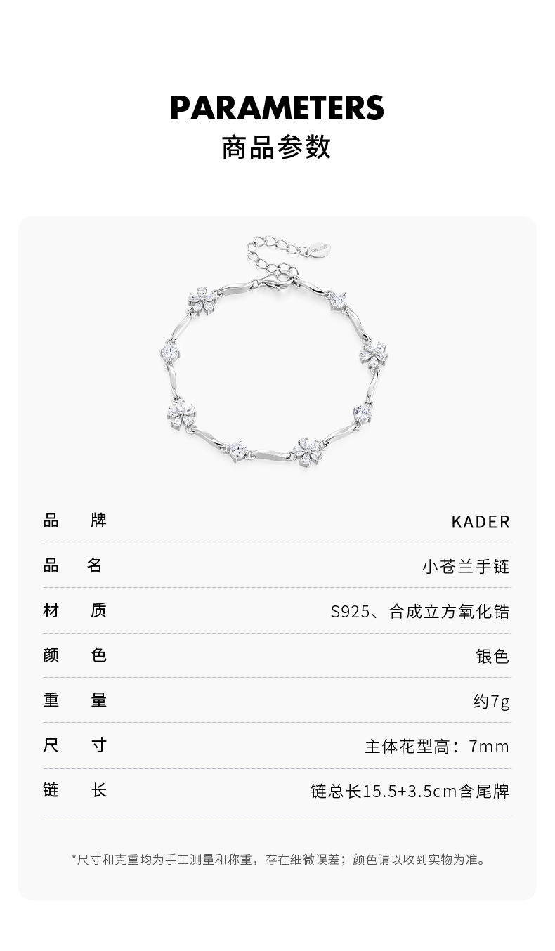 KADER卡蒂罗 小苍兰手链 S925银森系清新造型设计女款手绳 灵动诗意款配饰小巧精致礼物送女生 女款 礼物