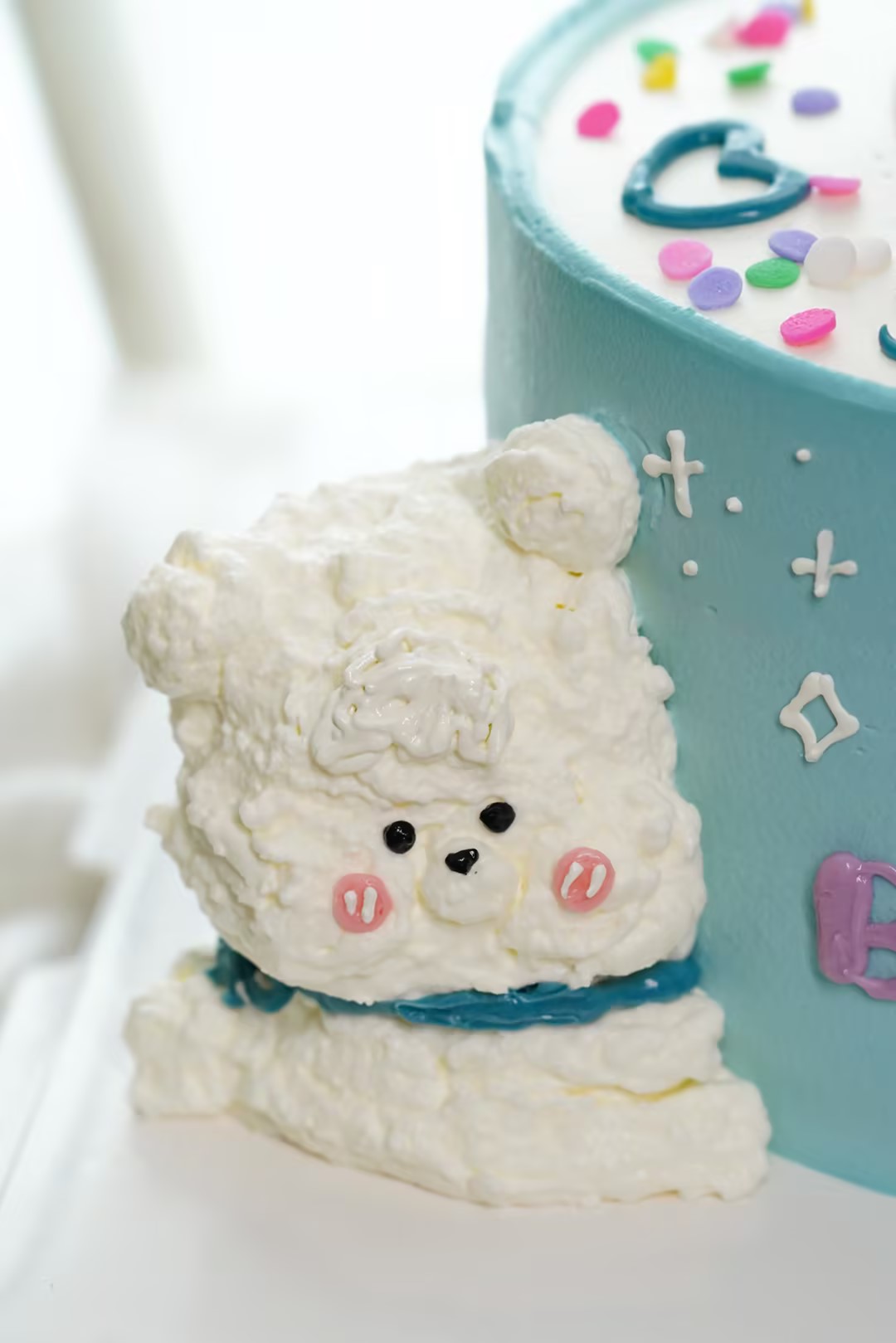 顺滑动物奶油搭配美味夹馅,新鲜健康,好吃又看。两只可爱动物是奶油霜制成。
