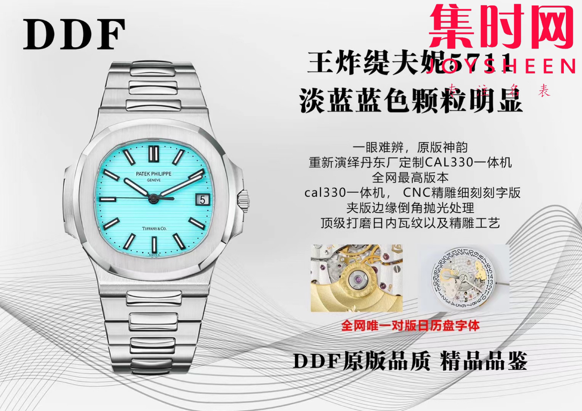 百达翡丽DDF鹦鹉螺5711系列 男士腕表 蒂芙尼蓝 330机 一眼难忘原版神韵难以辨别传世之作 丹东厂定制红宝石中轴一体机