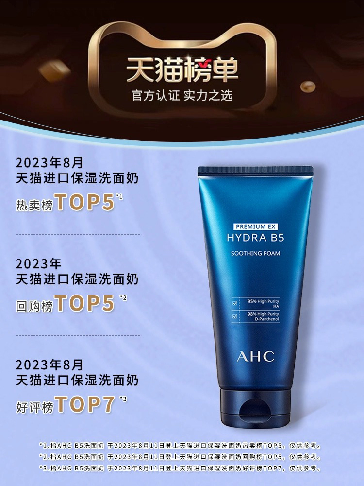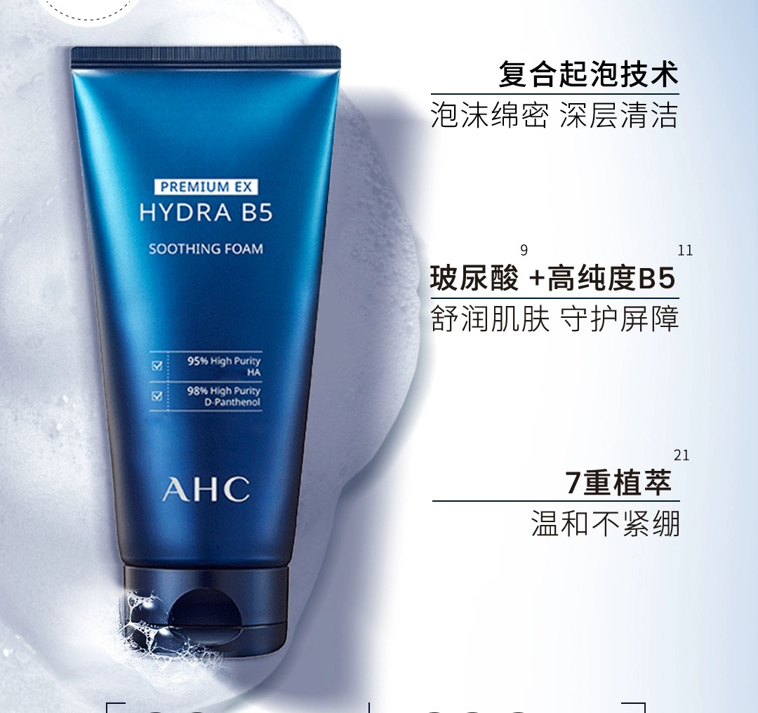 韩国 AHC爱和纯 玻尿酸B5高效保湿补水洁面洗面奶 150ml