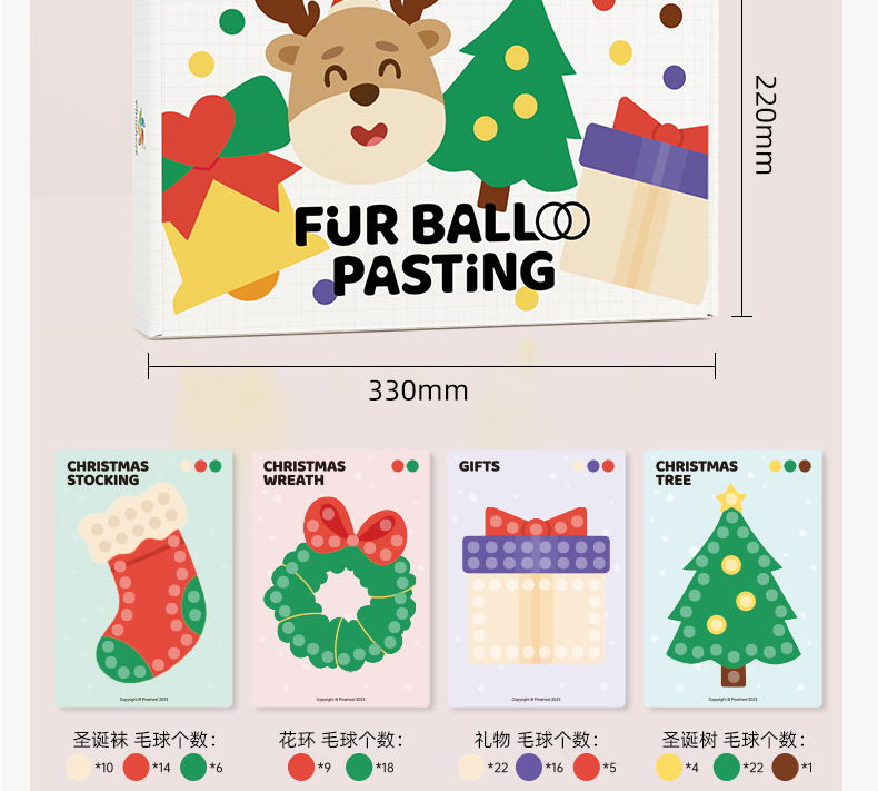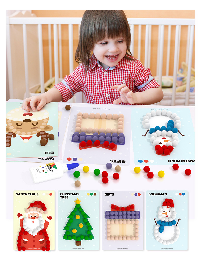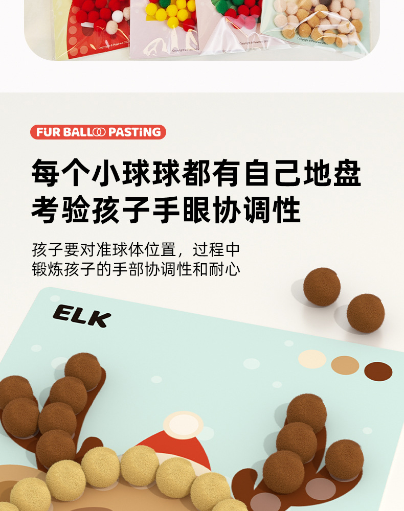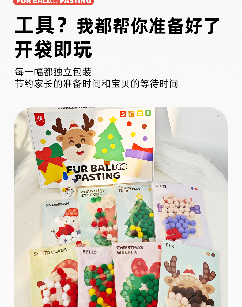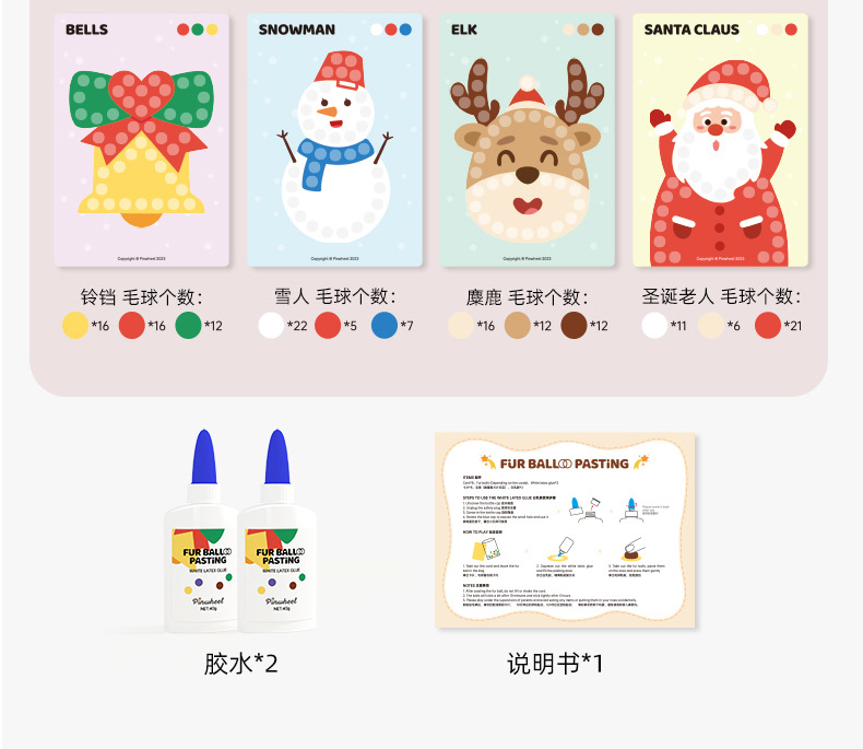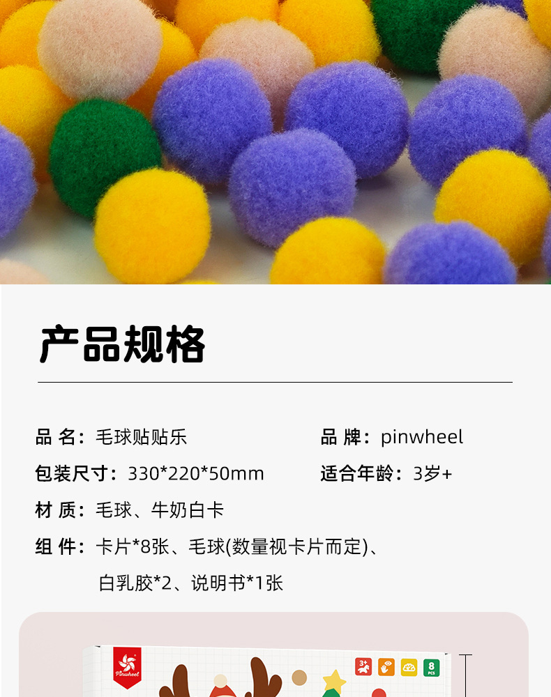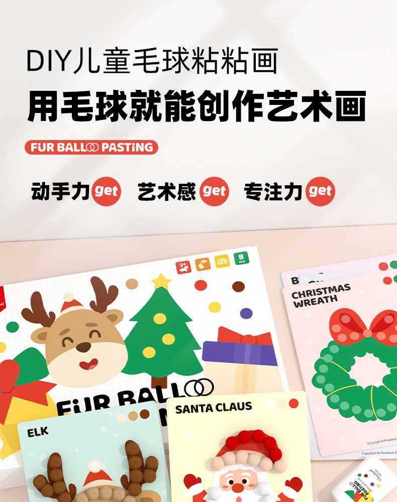 【用毛球就能创作艺术品】Pinwheel毛球粘贴贴画儿童diy手工创意材料幼儿园男女孩圣诞玩具
