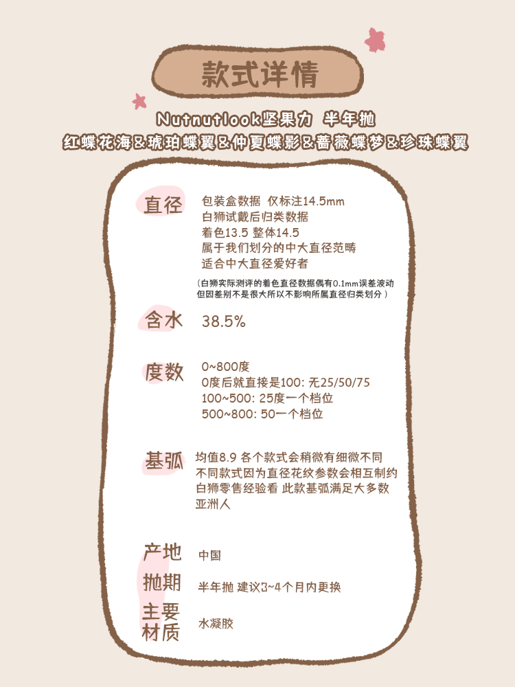 坚果力美瞳 · 蝴蝶系列&红蝶花海&琥珀蝶翼&仲夏蝶影&蔷薇蝶梦&珍珠蝶翼 14.5mm中大直径 半年抛2片