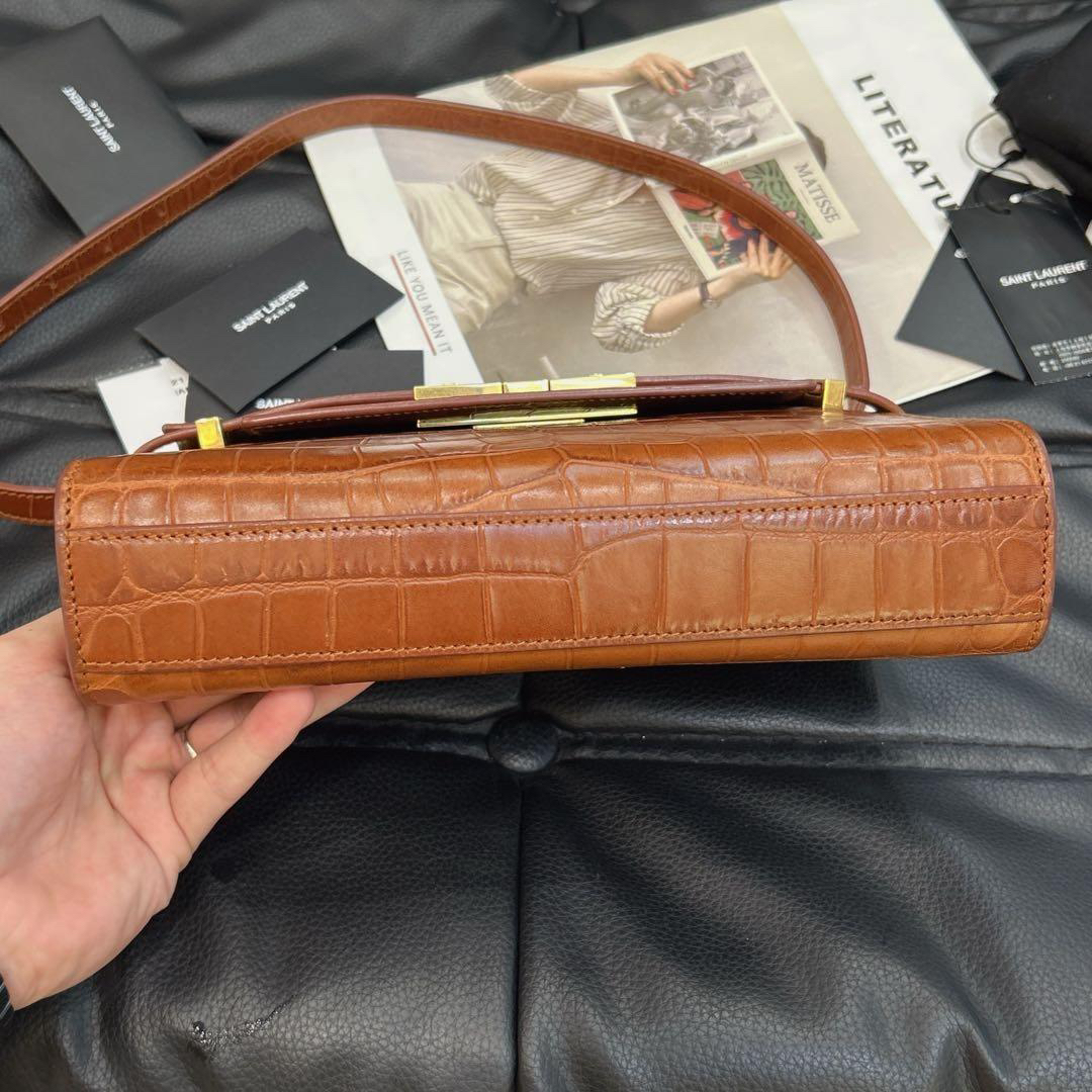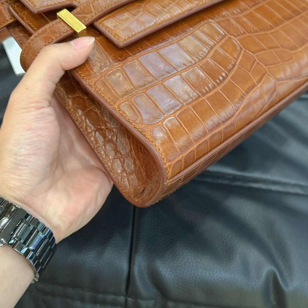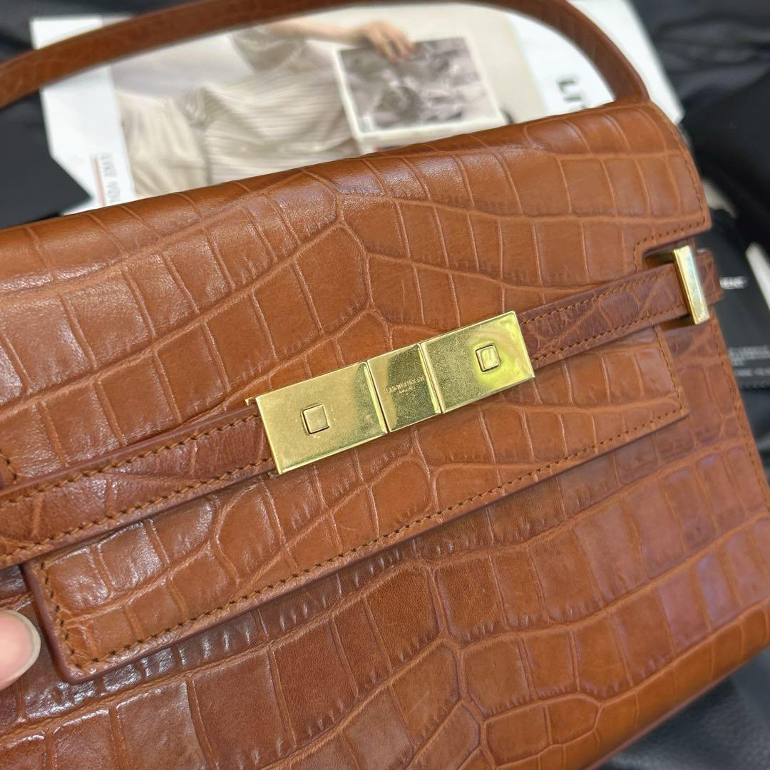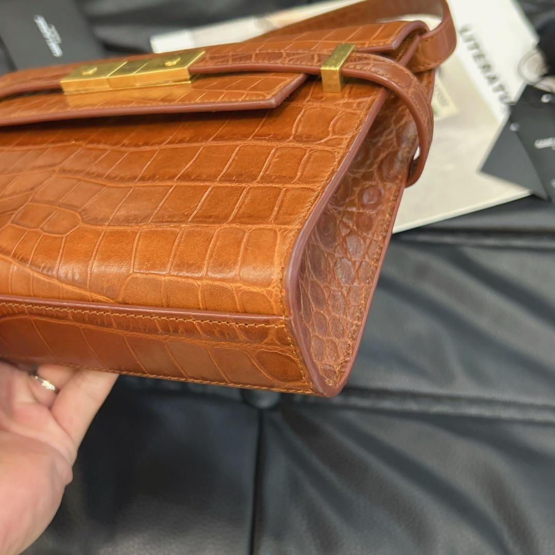 正品二手 YSL 曼哈顿 鳄鱼压纹 牛皮 焦糖色 小号 单肩包🍁97新 24x15 配件:吊牌 防尘袋 卡片 。五金轻微氧化 整包成色不错 秋冬必搭单品