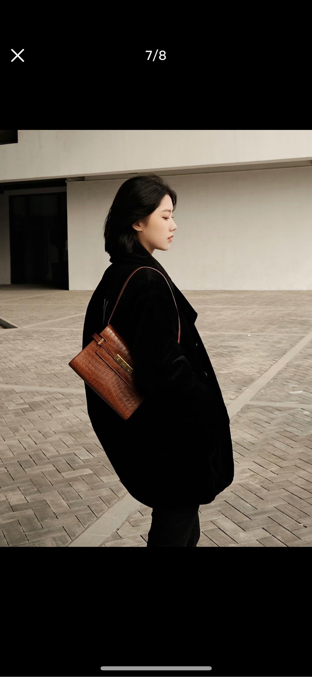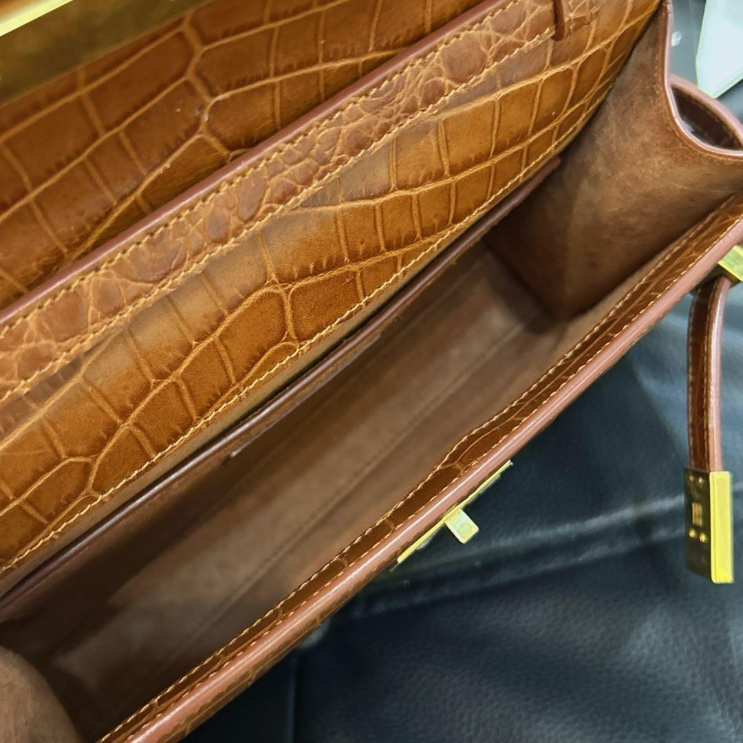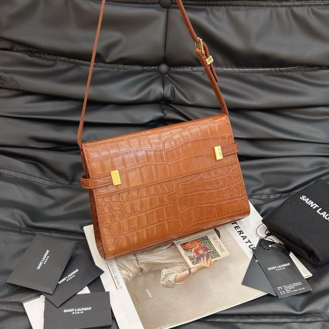 正品二手 YSL 曼哈顿 鳄鱼压纹 牛皮 焦糖色 小号 单肩包🍁97新 24x15 配件:吊牌 防尘袋 卡片 。五金轻微氧化 整包成色不错 秋冬必搭单品