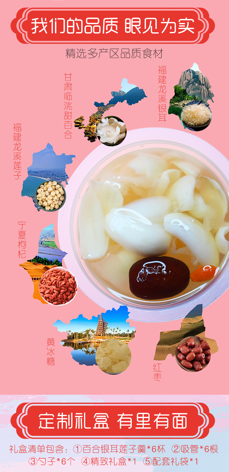 即食百合银耳莲子羹六碗礼盒装1200克婵乡源即食百合套餐营养美味