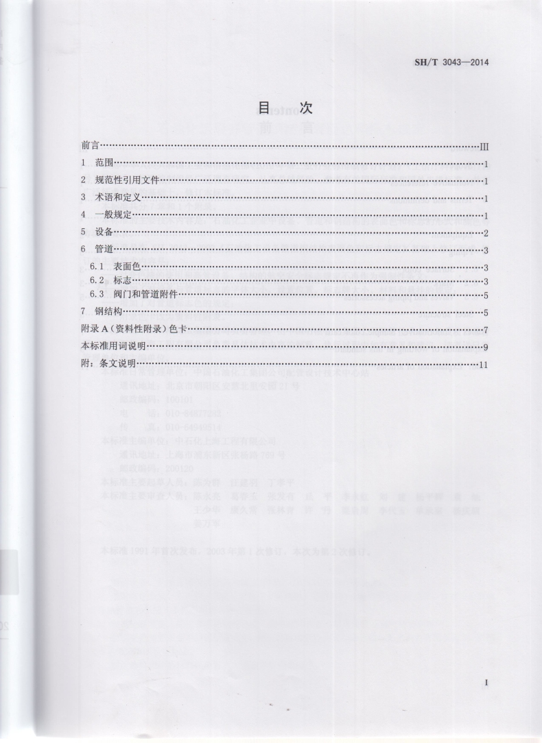 石油化工设备管道钢结构表面色和标志规定SH/T 3043-2014