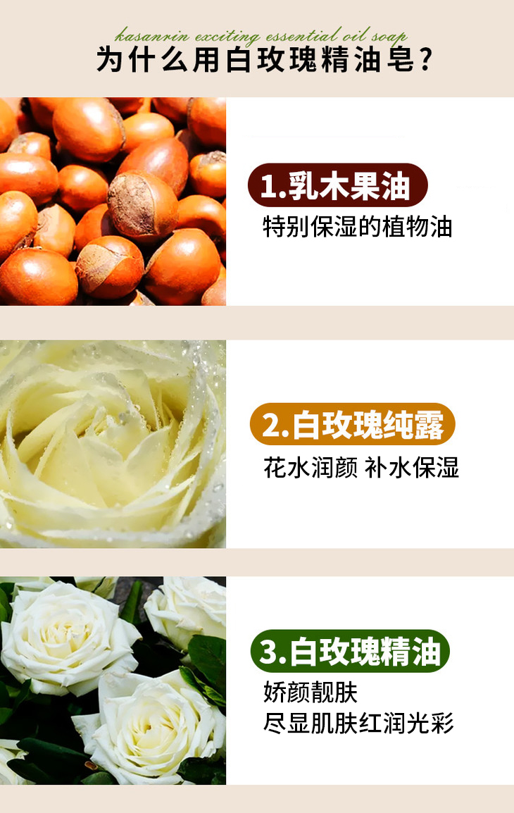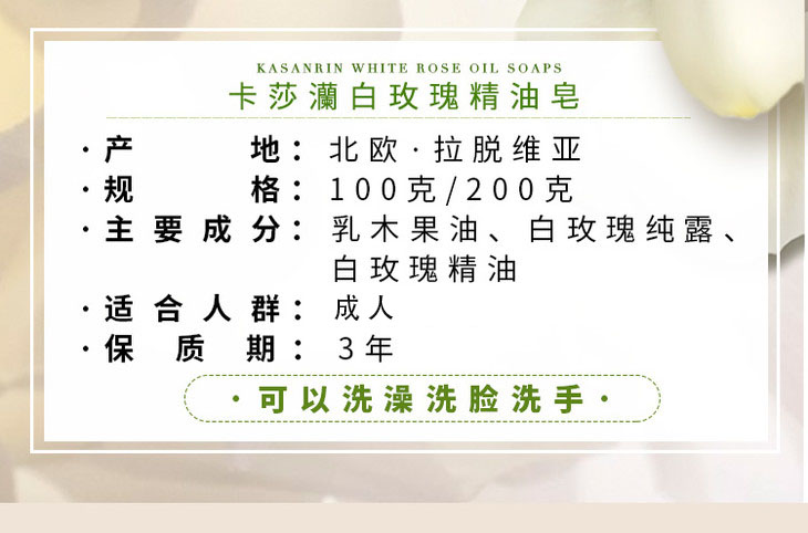【整条】卡莎灡进口白玫瑰精油皂,洁净润肤,水润保湿,靓丽肌肤!