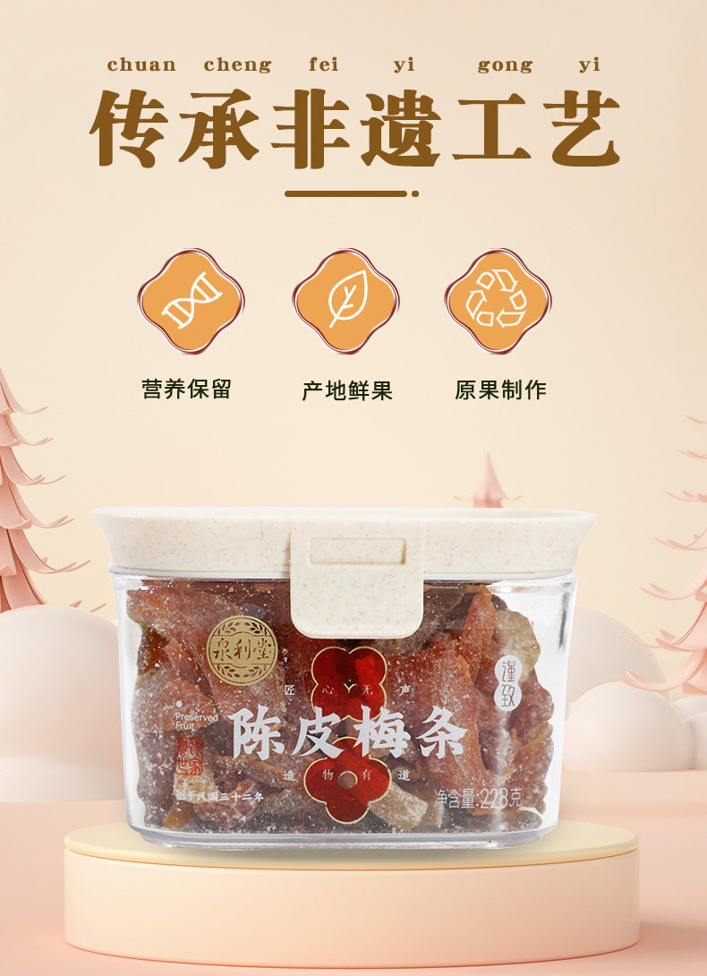 泉利堂上品荟萃228g(柠檬冰梅/冰糖杨梅/鲜味梅李/陈皮梅条)