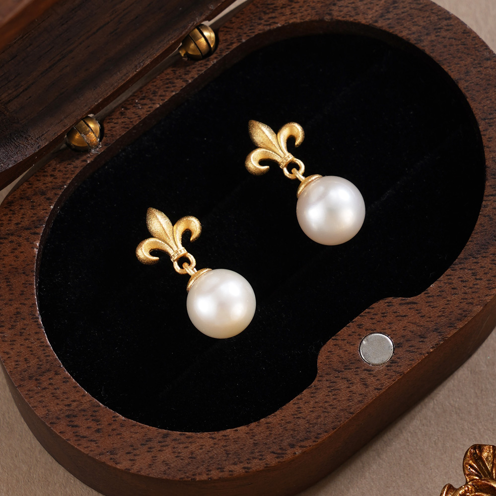 子佩集【鸢尾之诗】银S925珍珠惜王妃耳钉【E4744】镀金兰花草2602