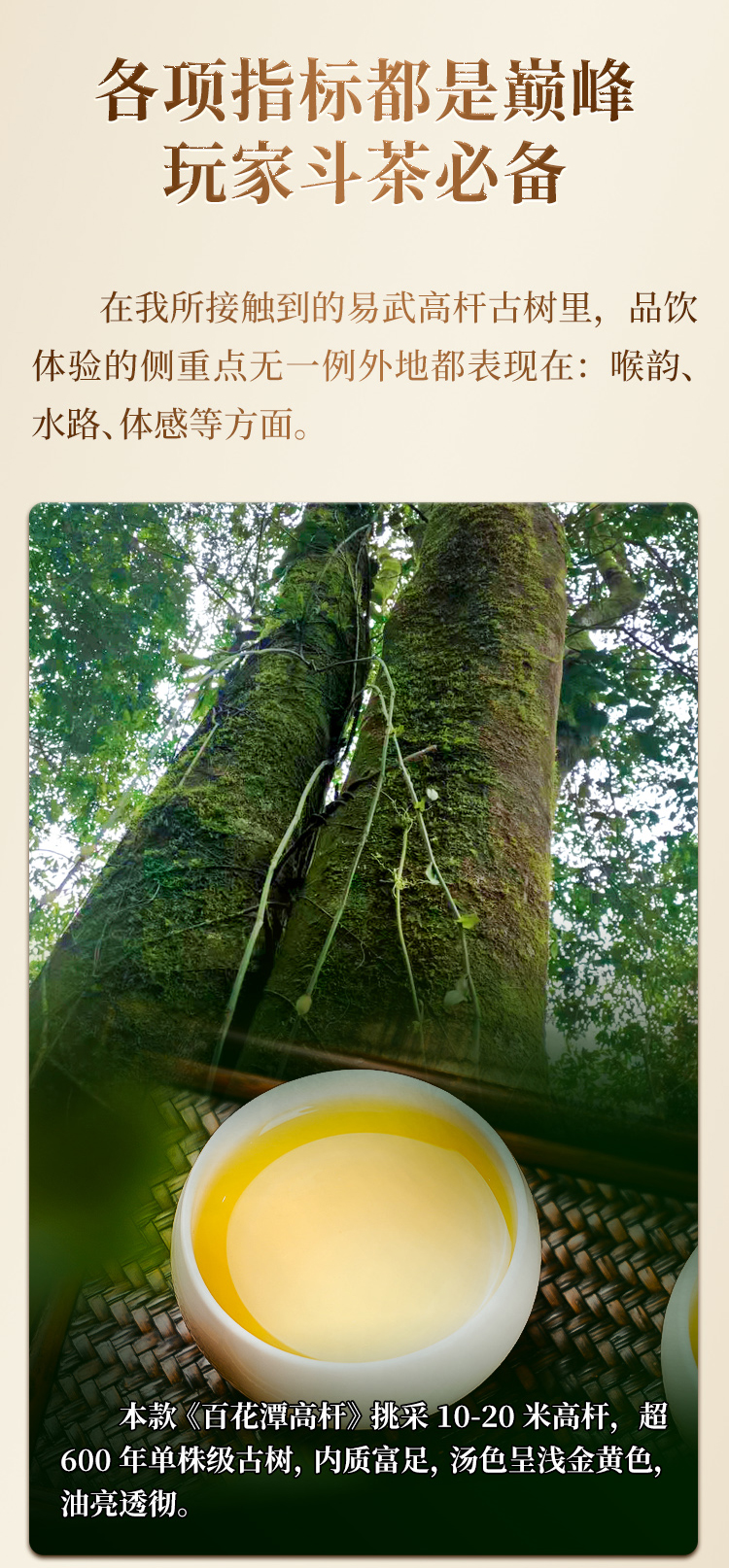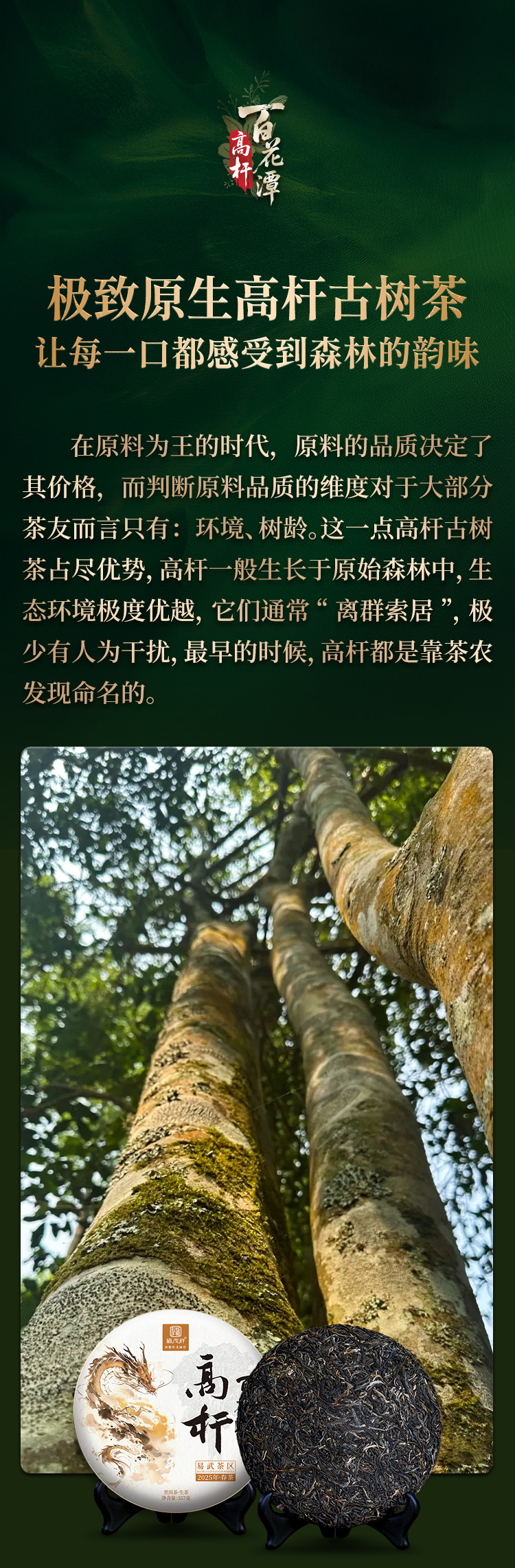 【玩家斗茶必备】【百花潭高杆】2025年春茶易武茶区百花潭20米以上高杆普洱生茶古树茶饼357g