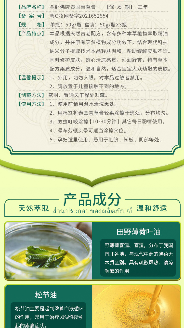金卧佛牌 泰国青草膏 50g*1瓶+ 太田 芦荟胶 200g*1瓶