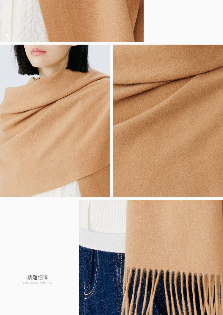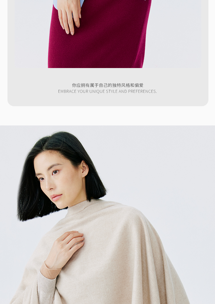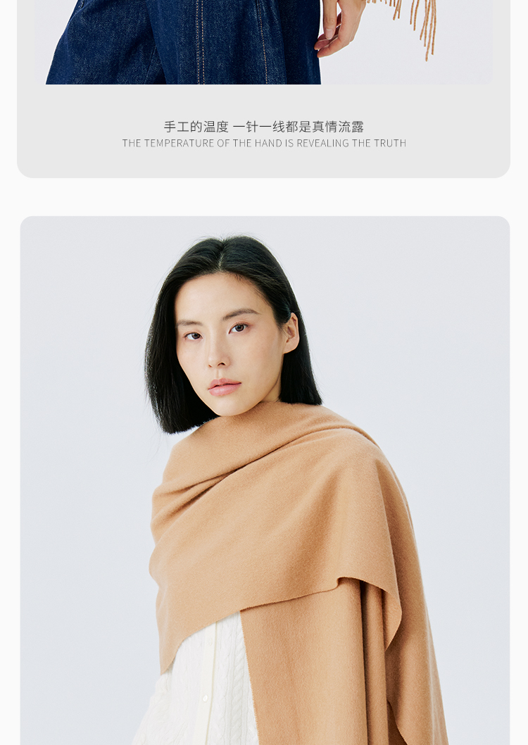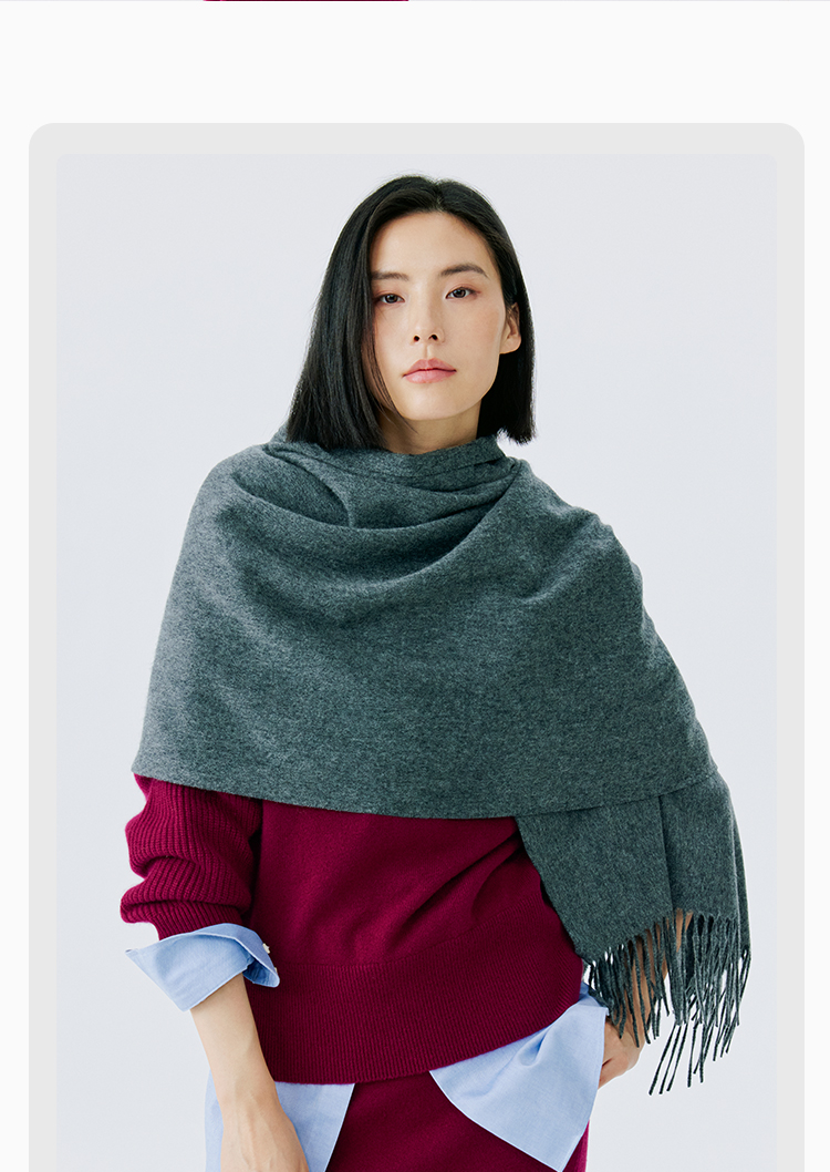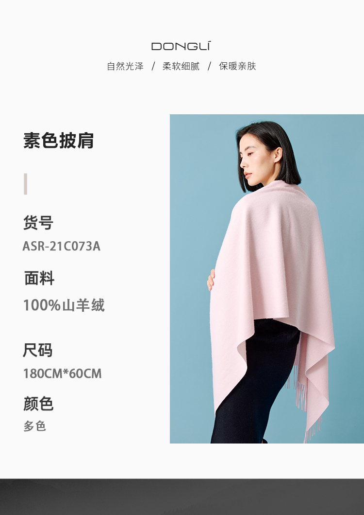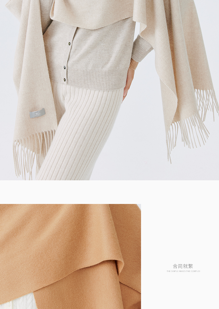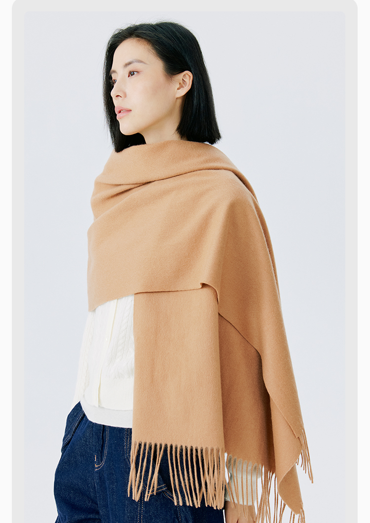 东黎 • 山羊绒女士秋冬纯色双面防风保暖围巾披肩180cm*60cm 21C073A