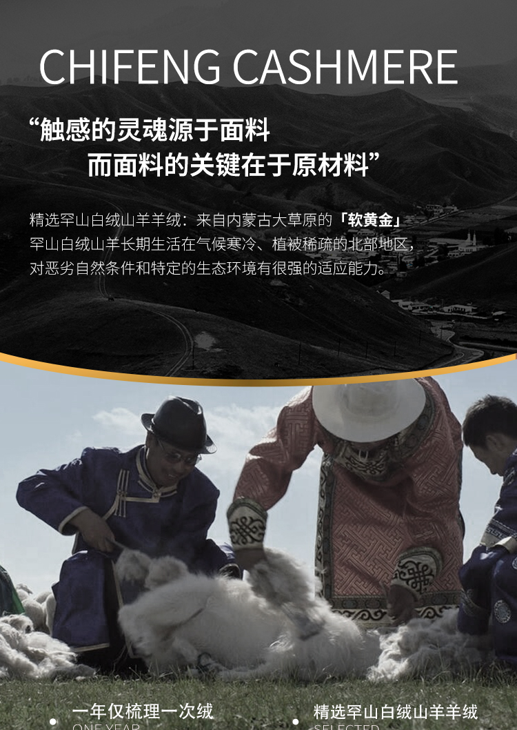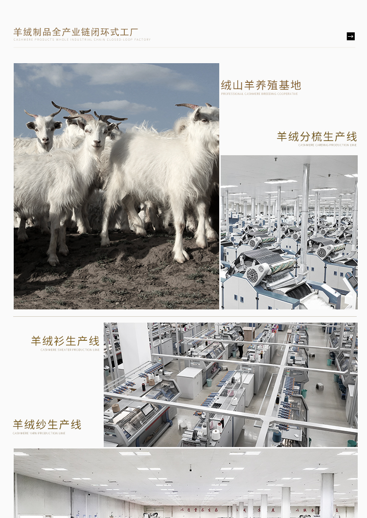 东黎羊绒是赤峰东荣集团自主品牌,自有牧场/羊绒制品全产业链优势,实现了羊绒从“牧场”到“商场”的华丽转变。