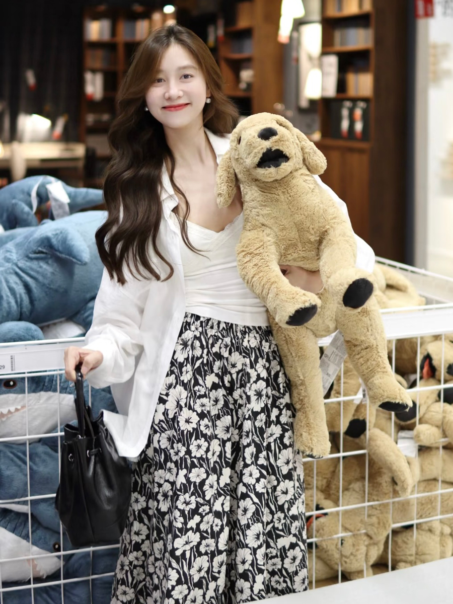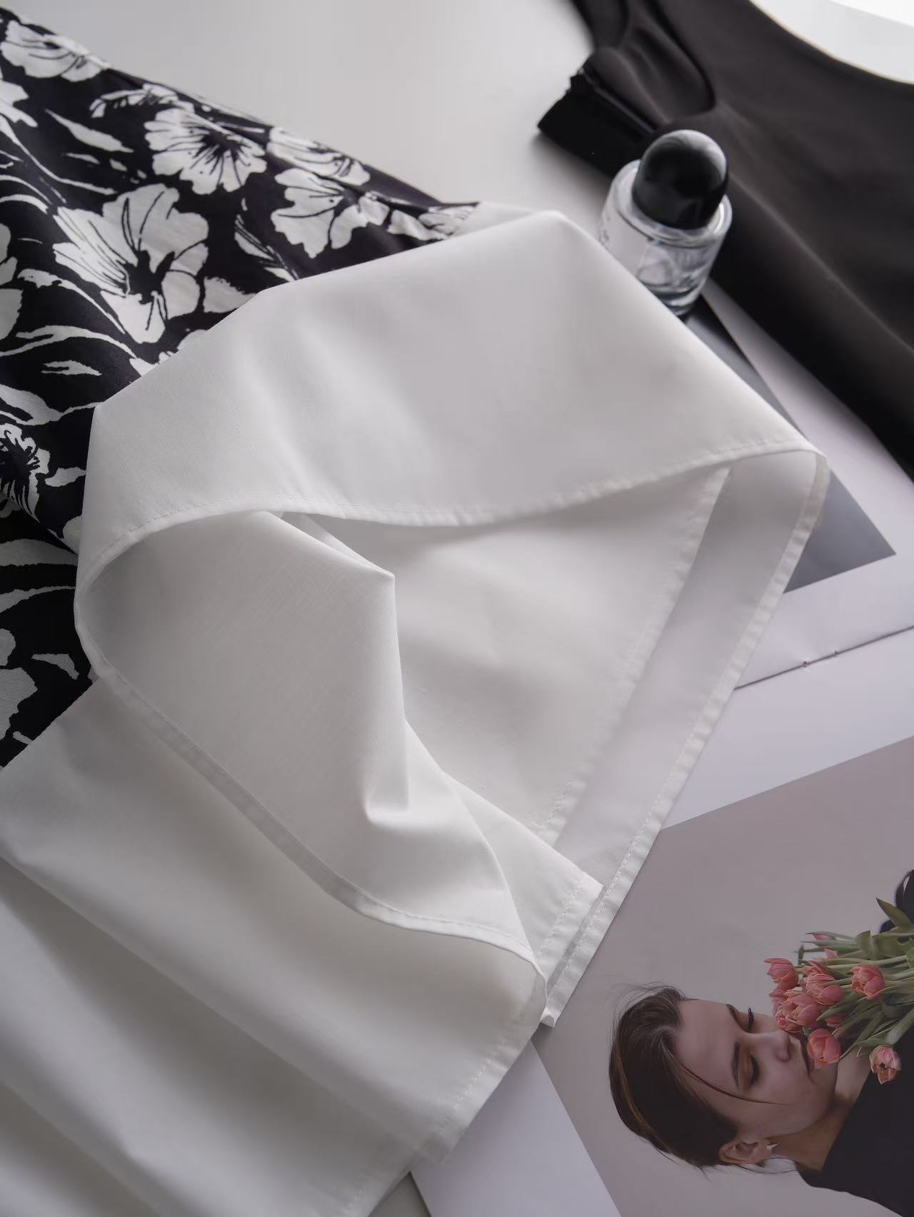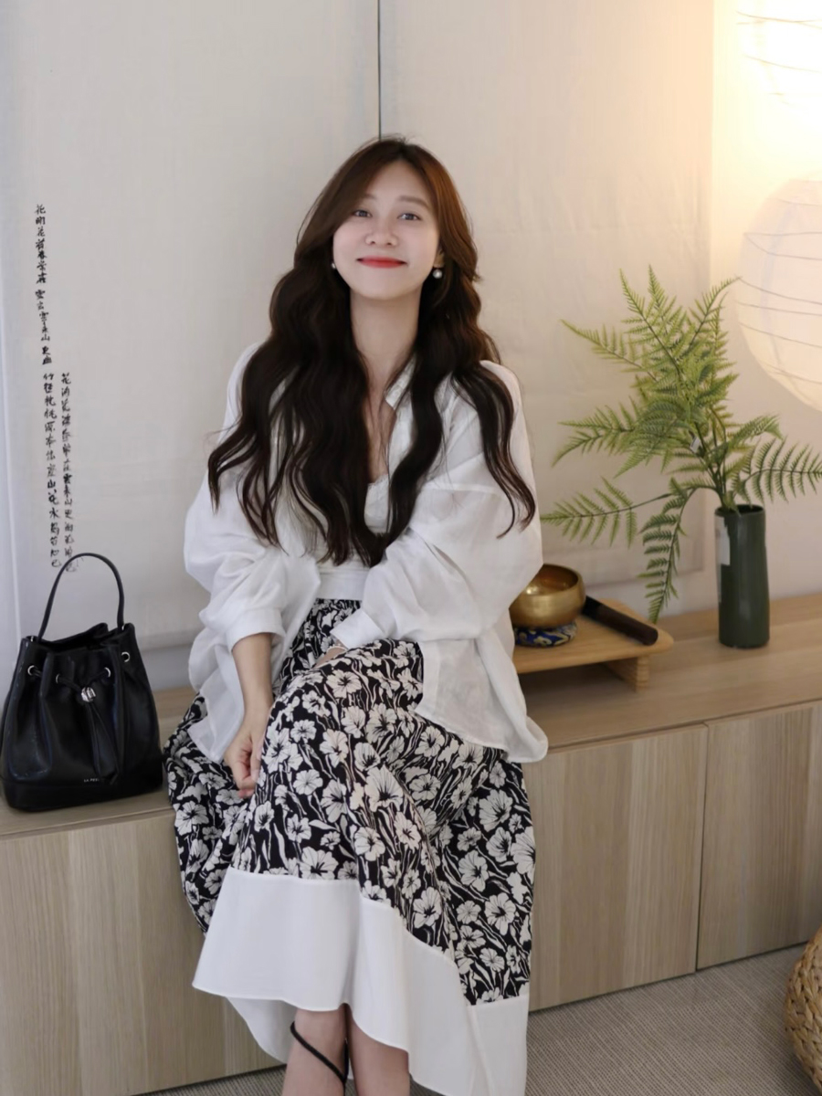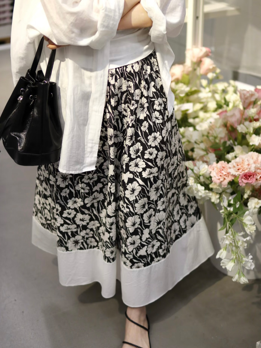 【百图lulu定制】【济州岛套装】【一套199】黑色工字领背心 数码花朵印花 弹力腰头 雪纺半裙