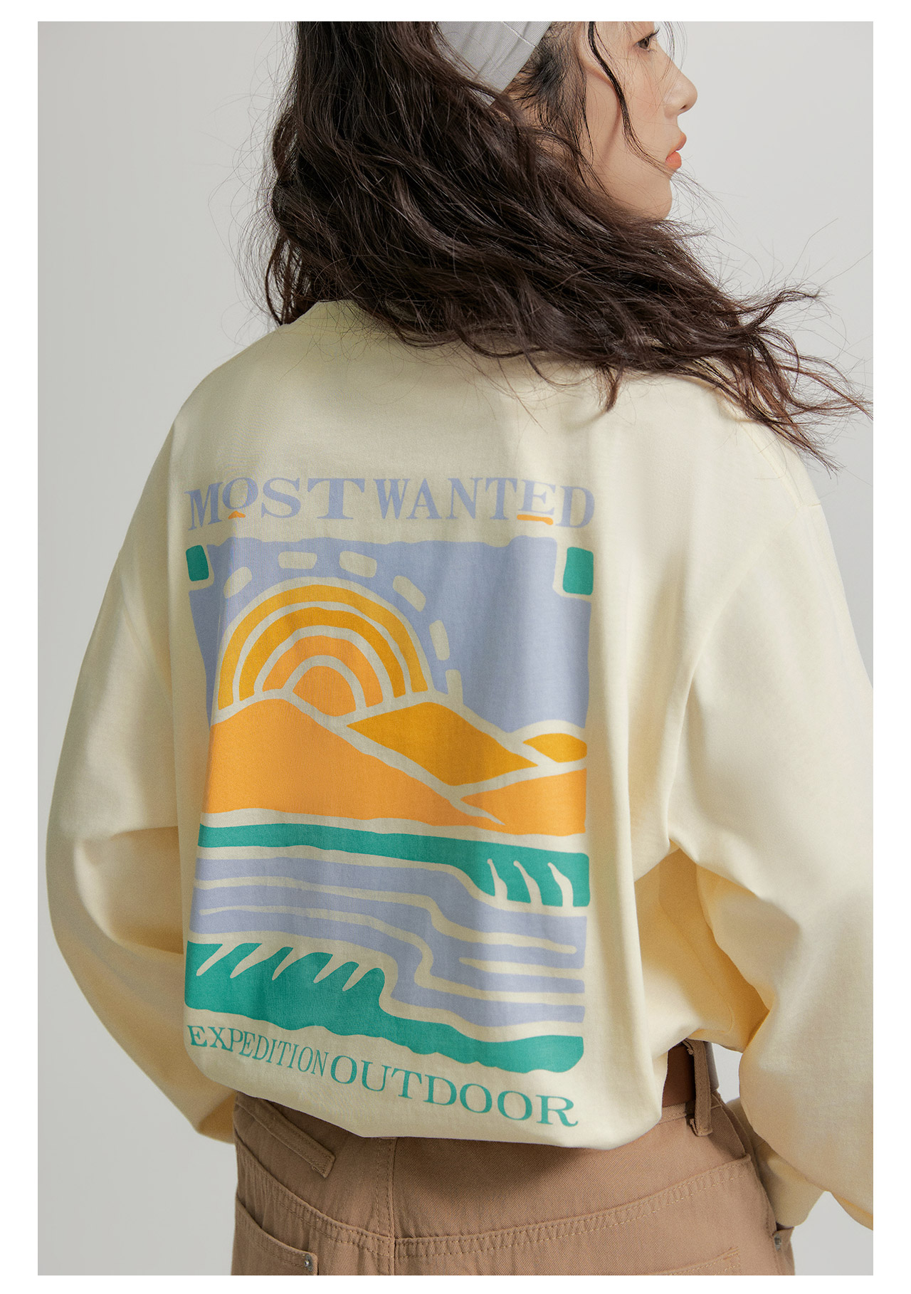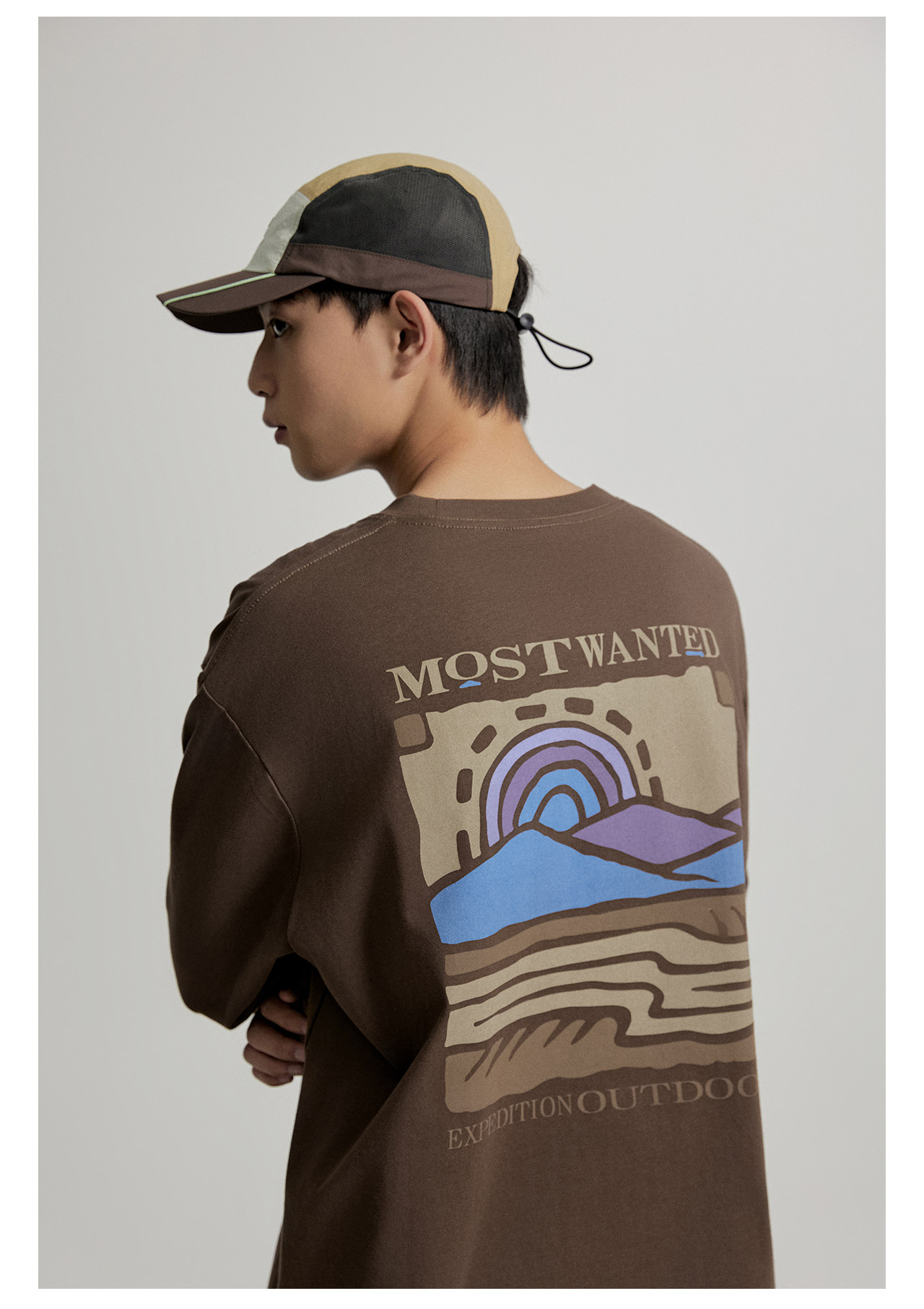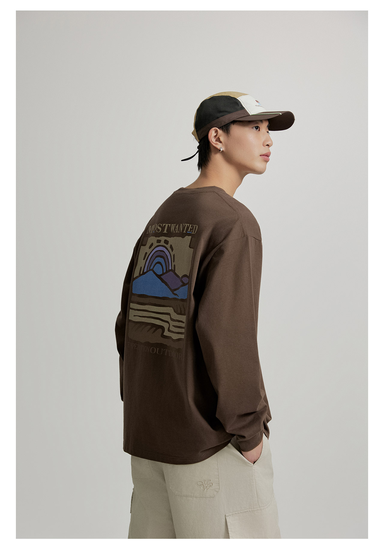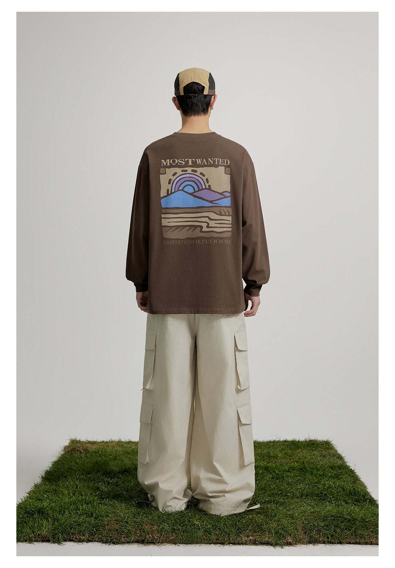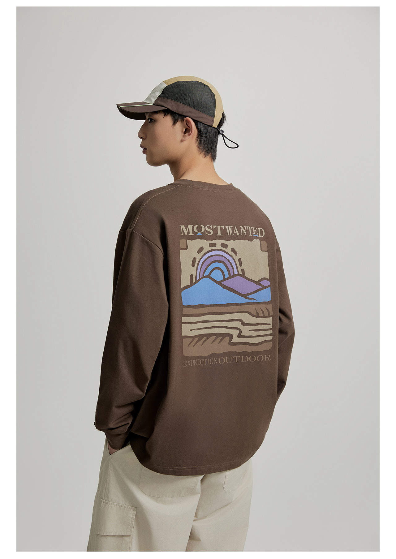mostwantedlab彩虹/M2412050/山脉印花圆领长袖T恤男女情侣潮流上衣