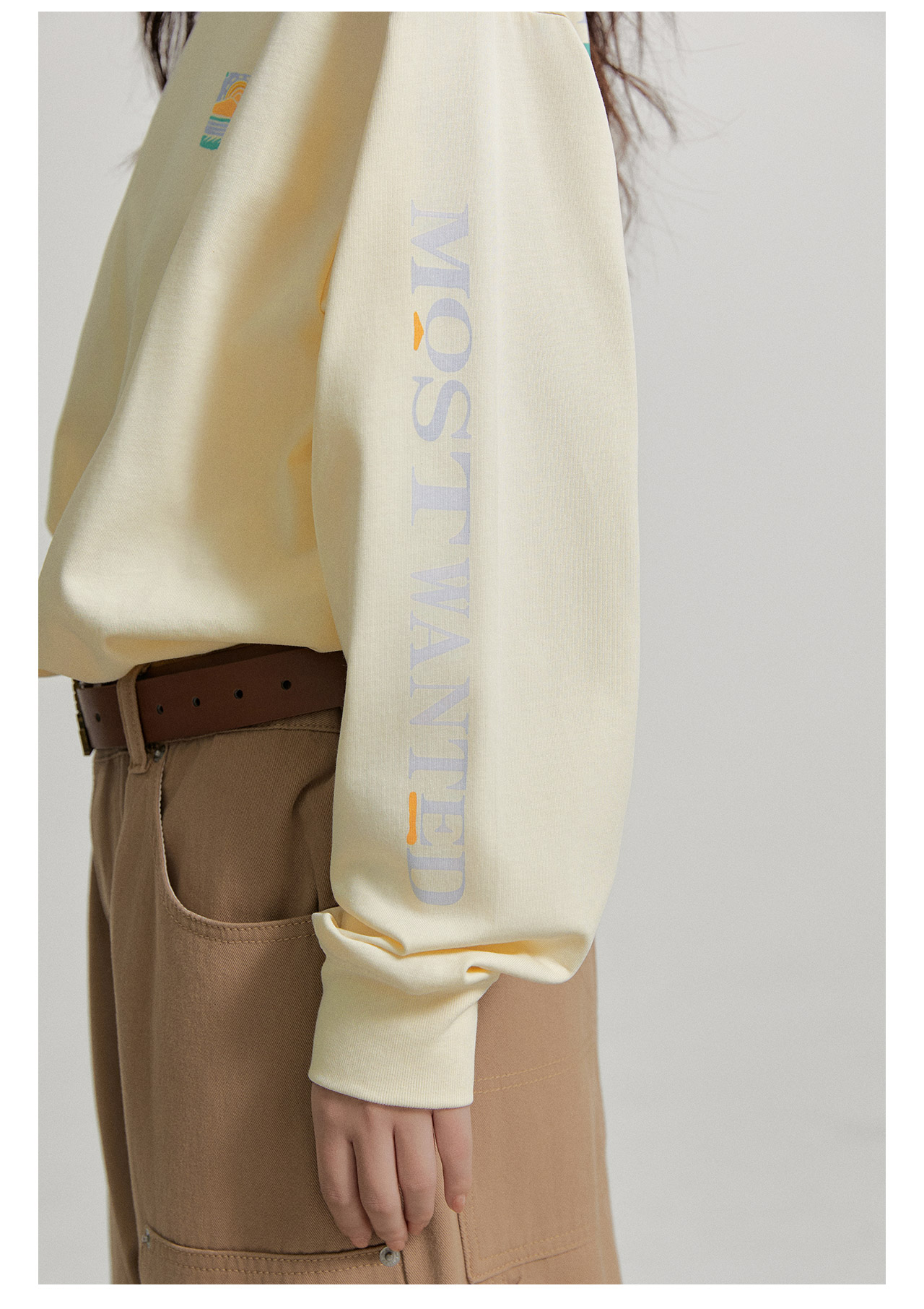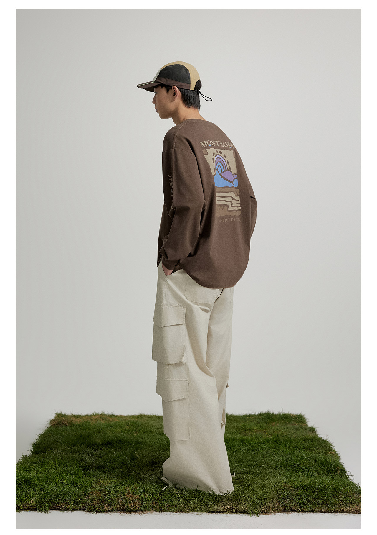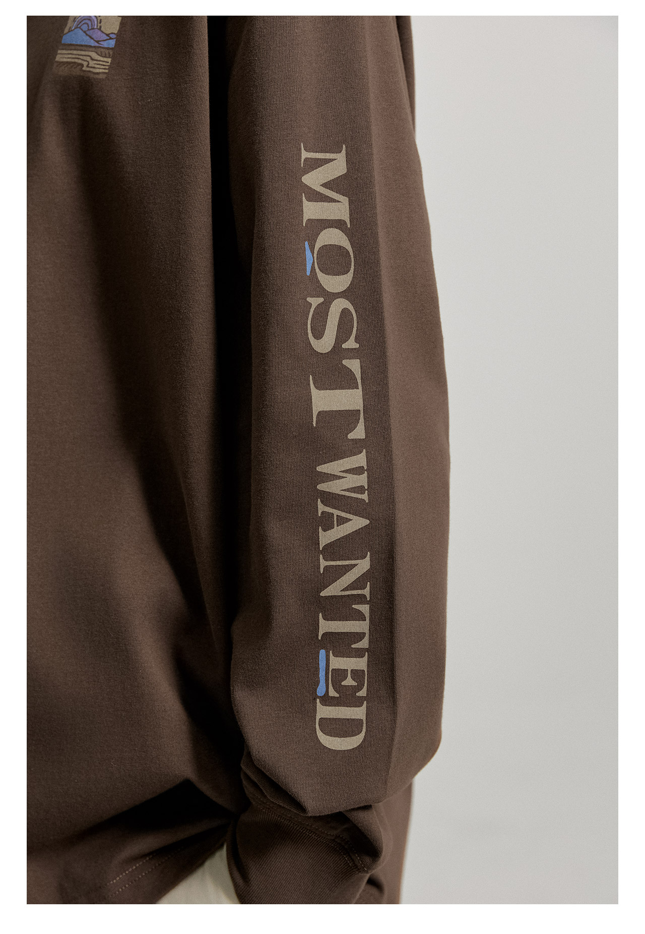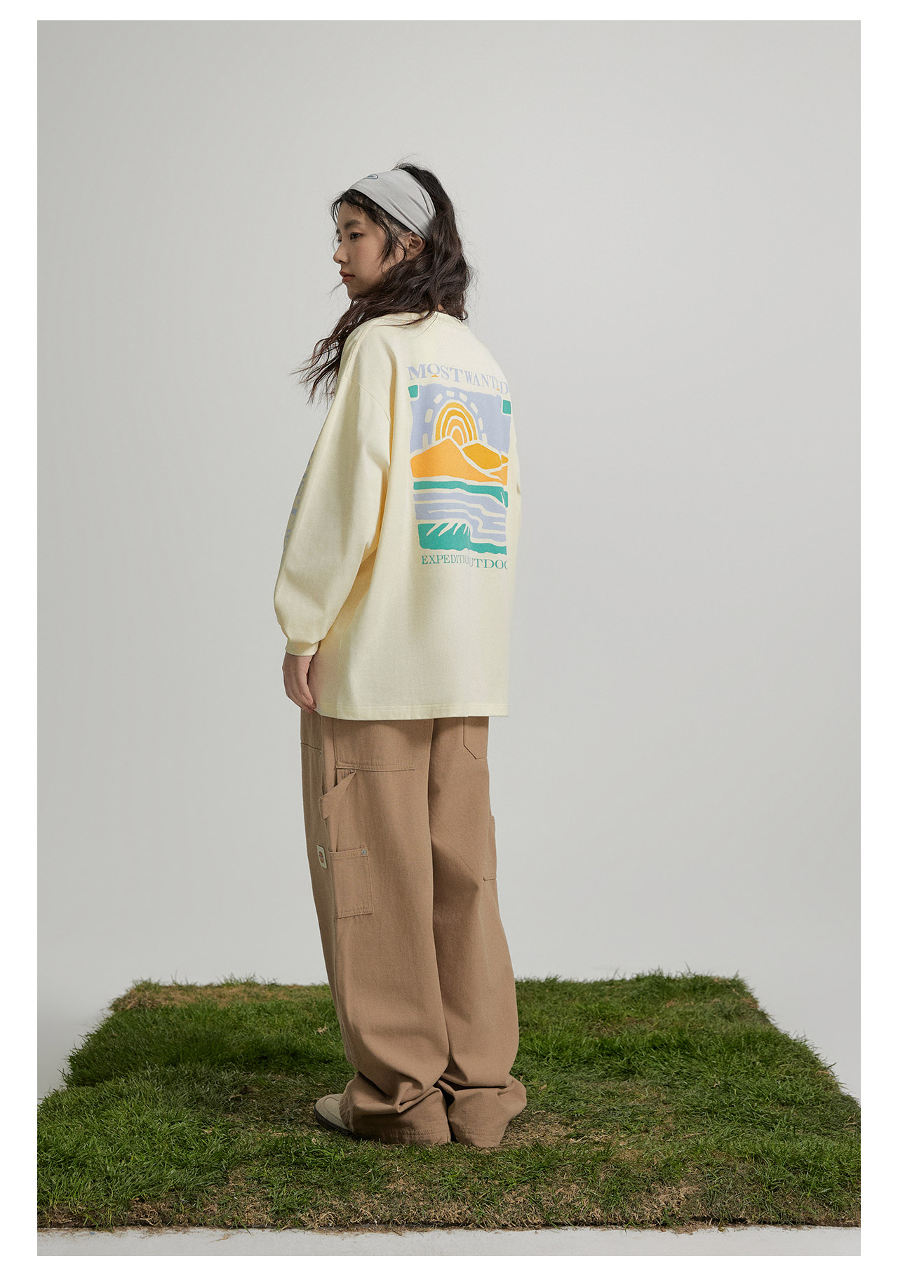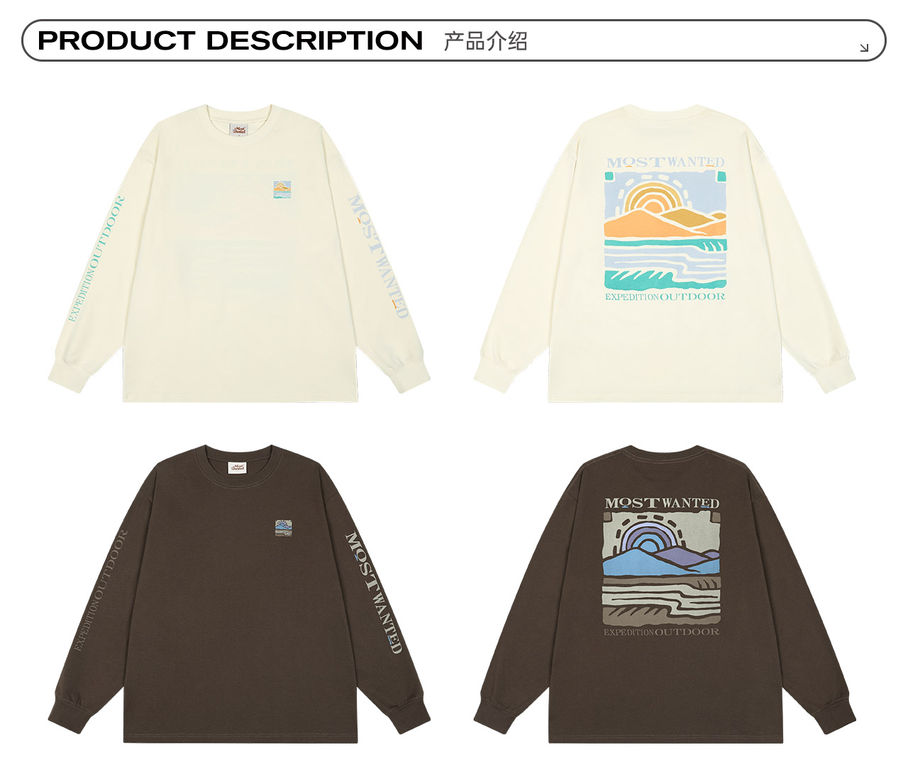 mostwantedlab彩虹/M2412050/山脉印花圆领长袖T恤男女情侣潮流上衣
