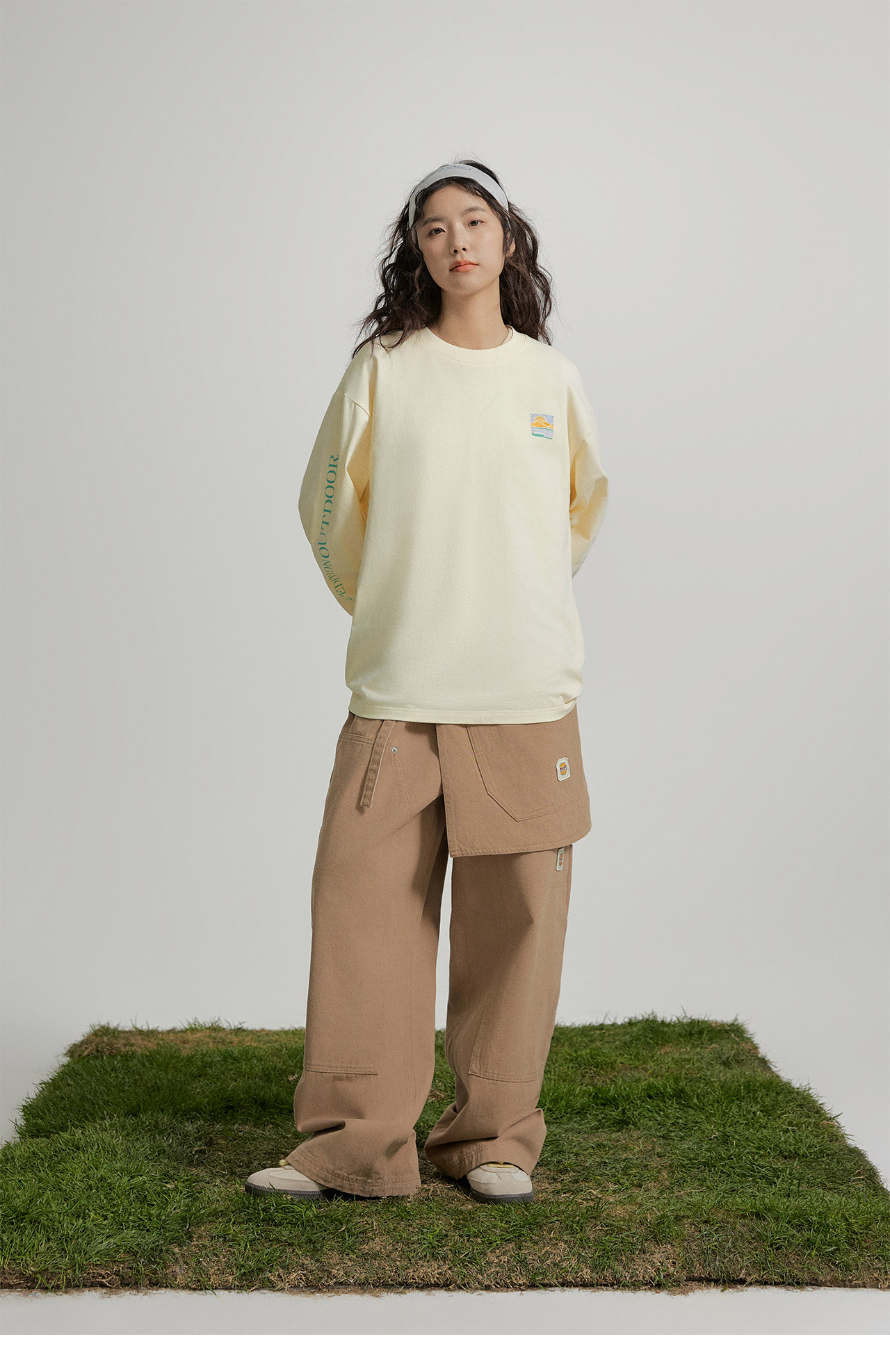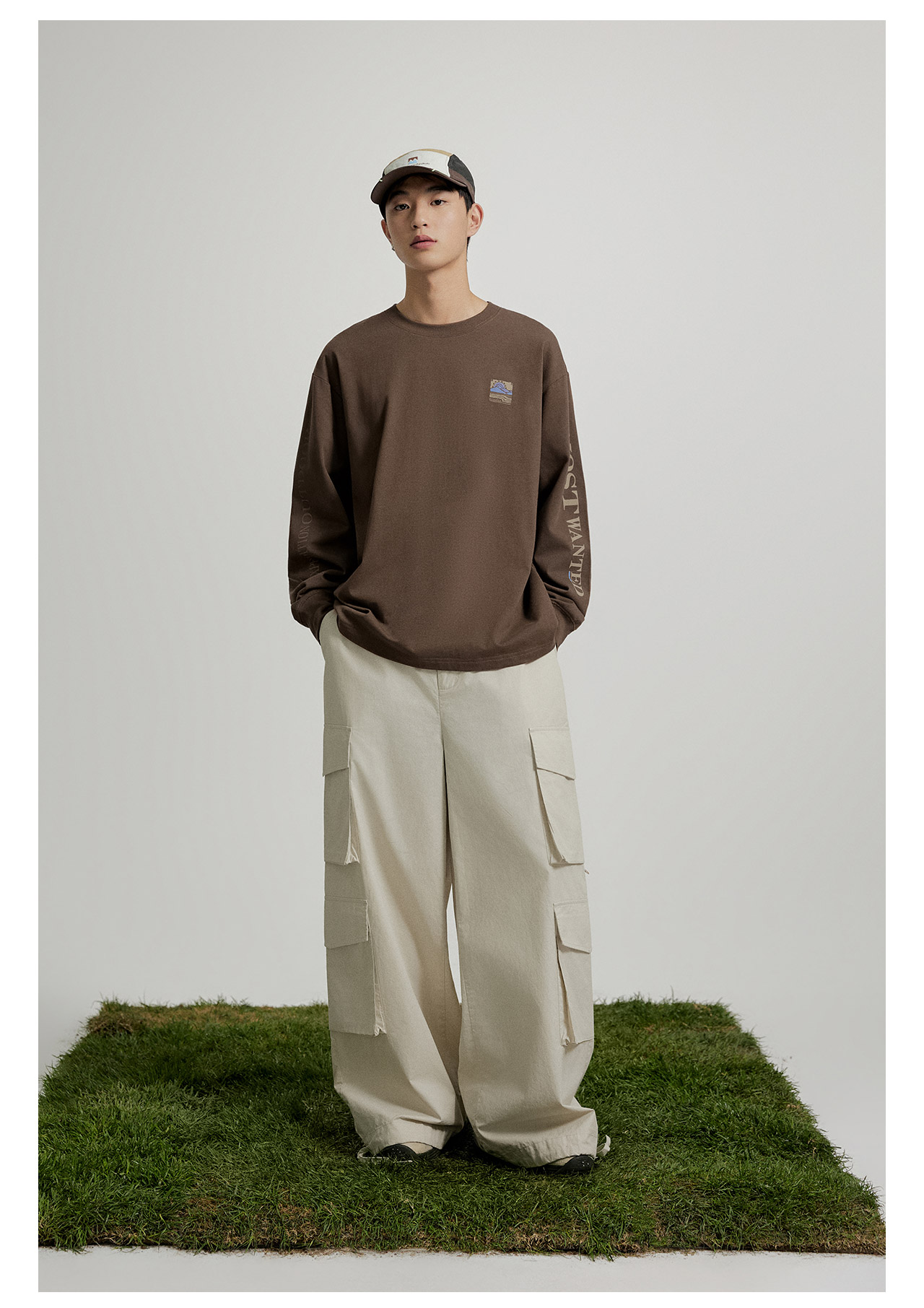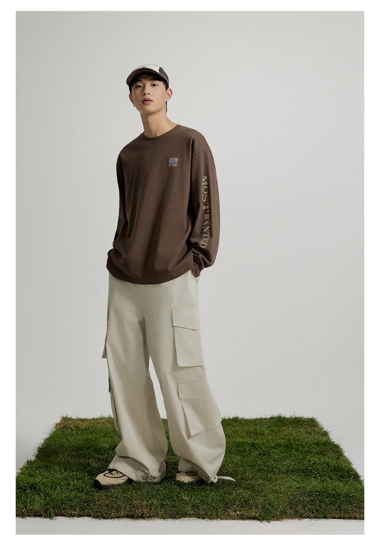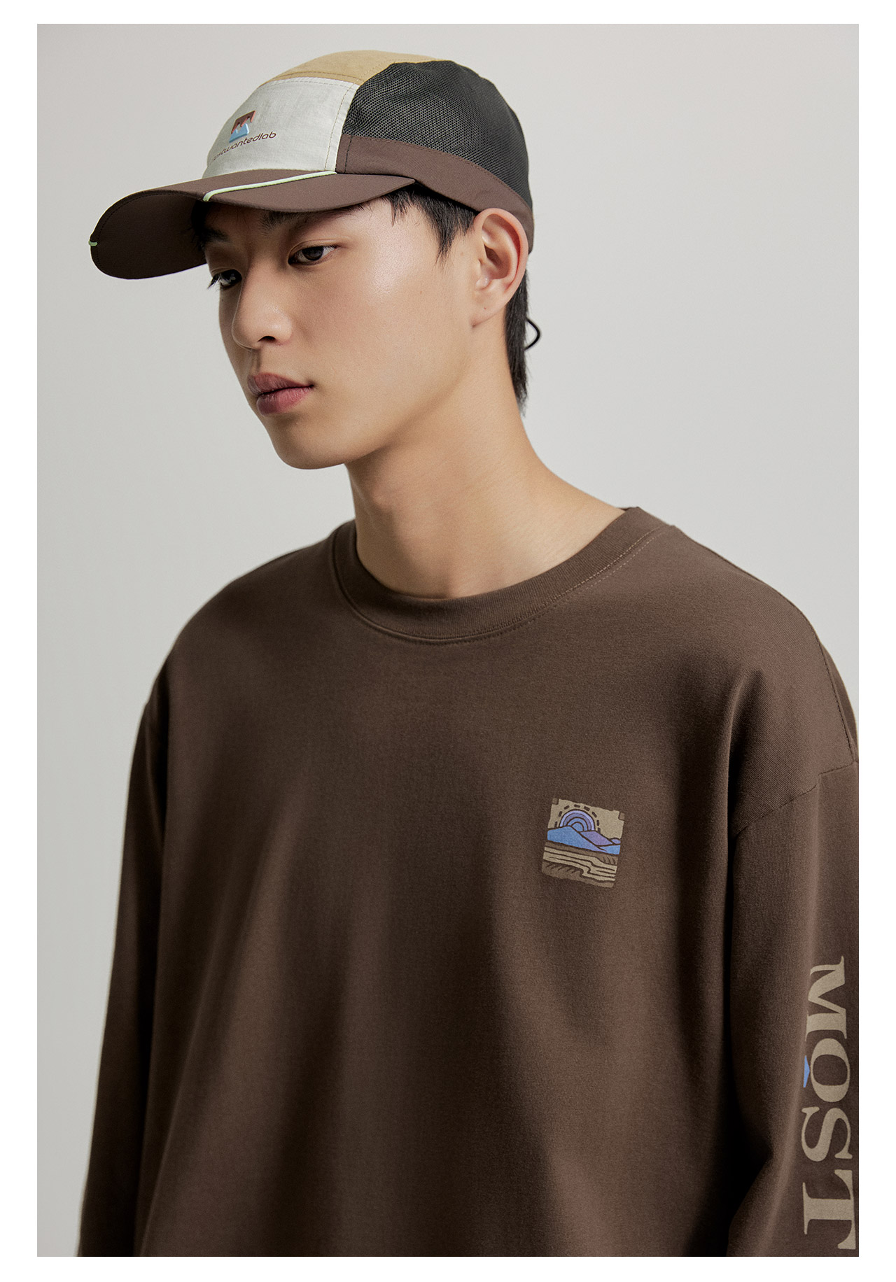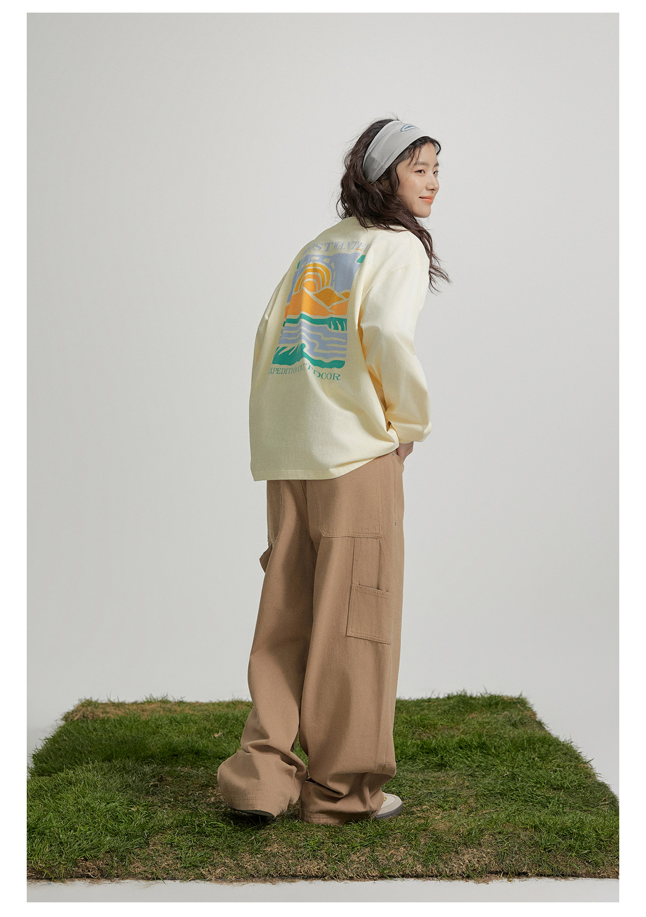 mostwantedlab彩虹/M2412050/山脉印花圆领长袖T恤男女情侣潮流上衣