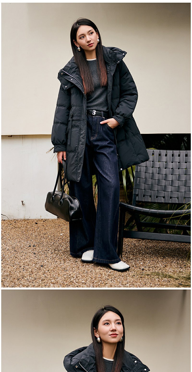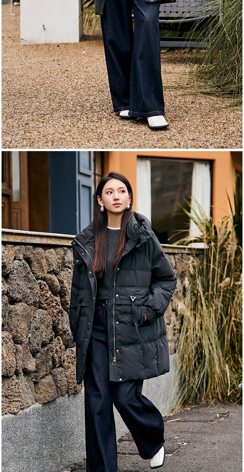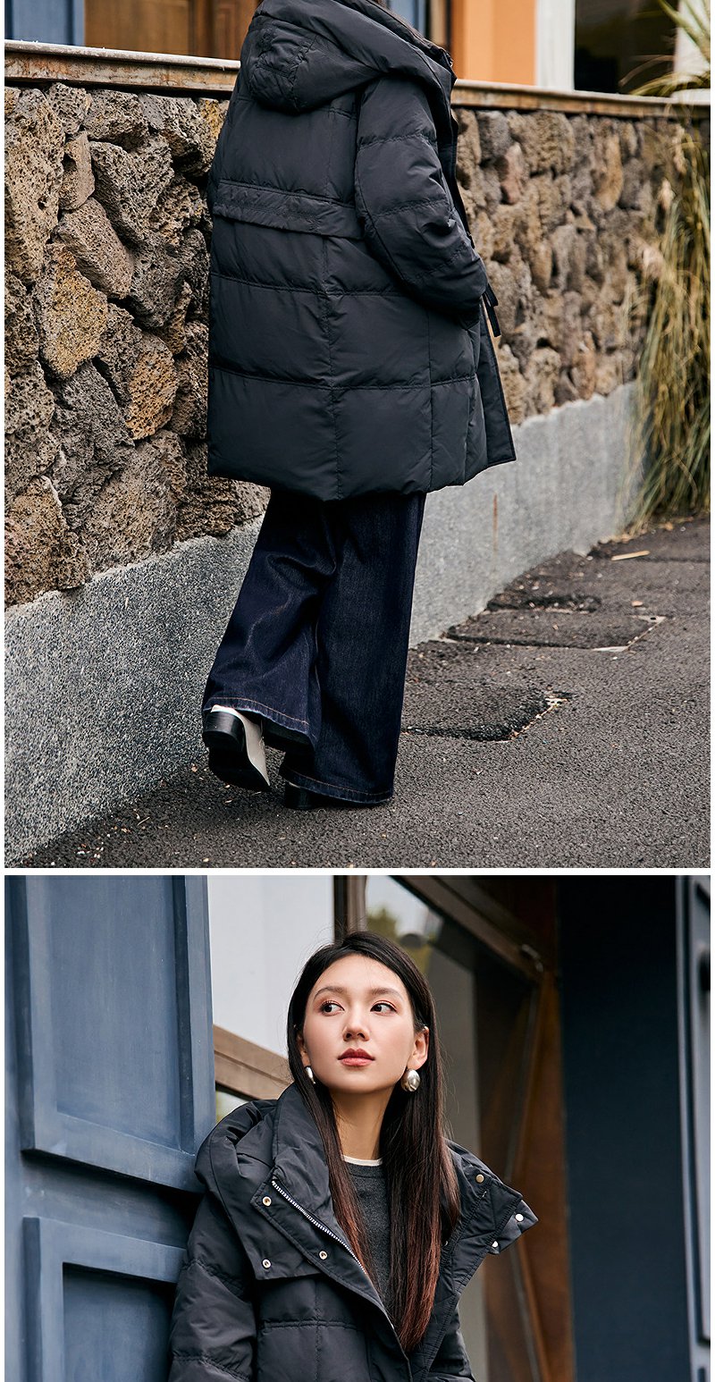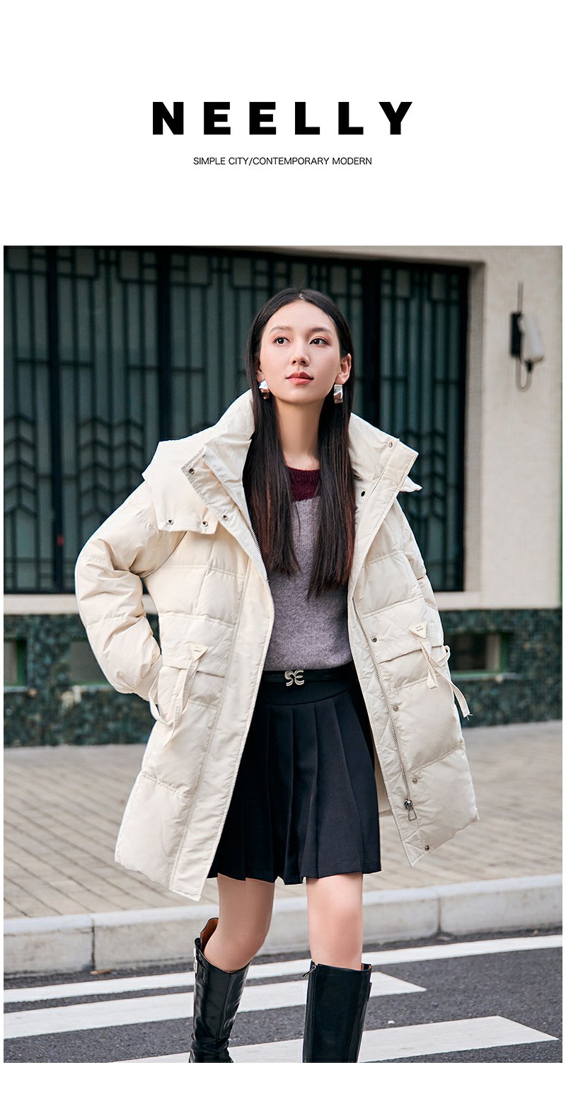 NEELLY纳俪商场同款冬季新款90%鸭绒宽松保暖连帽羽绒服女中长款N24104L07743