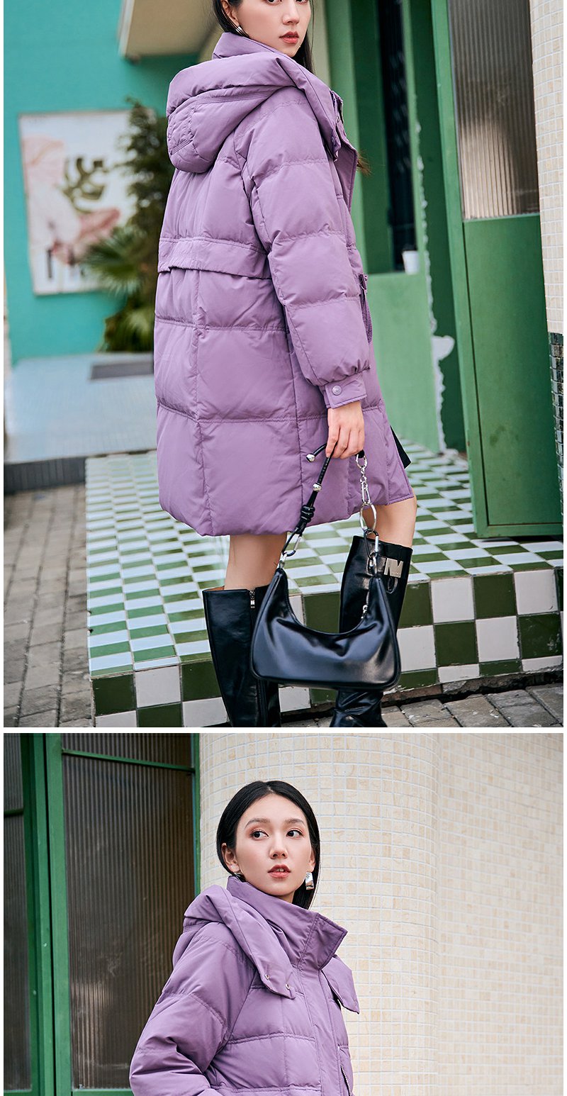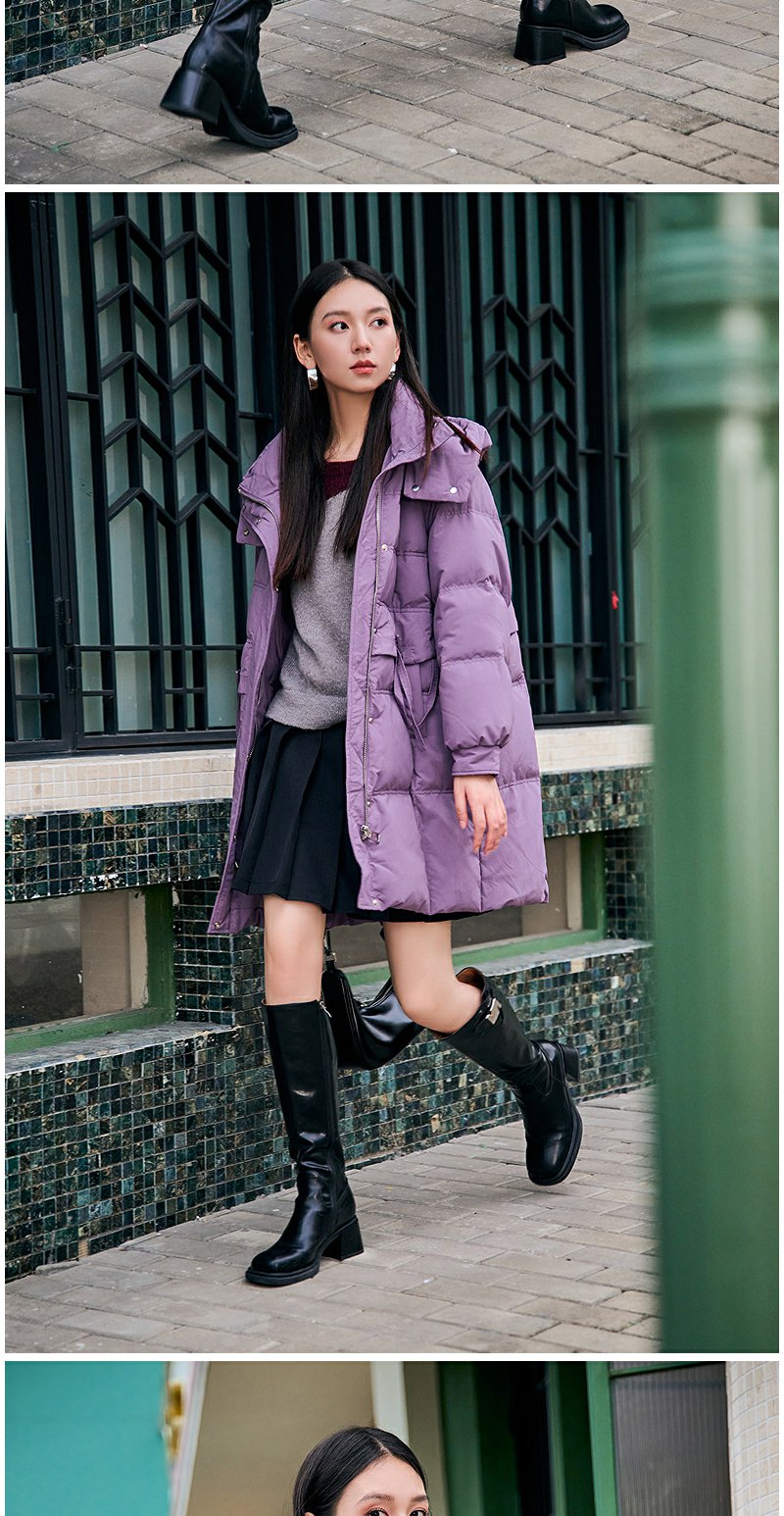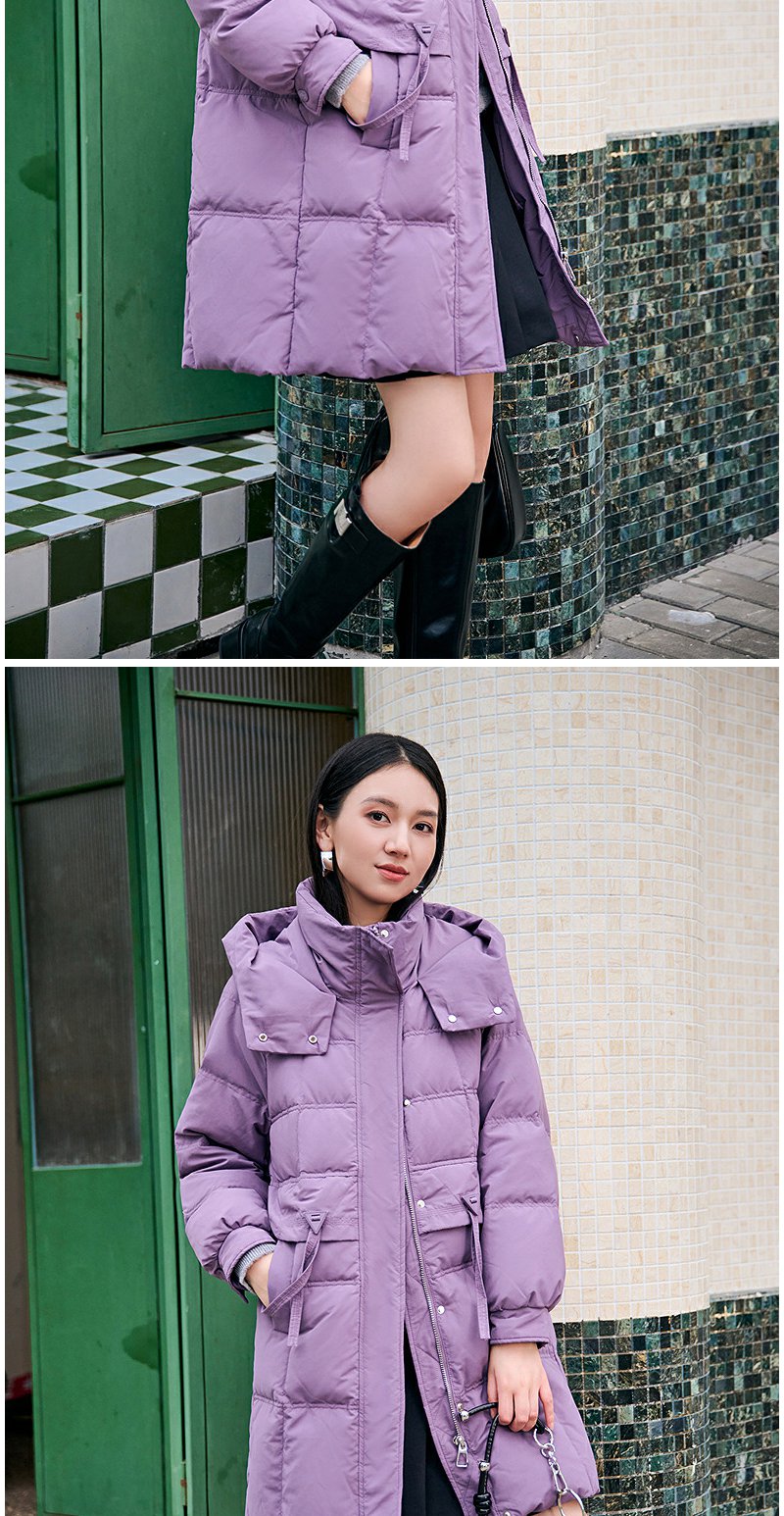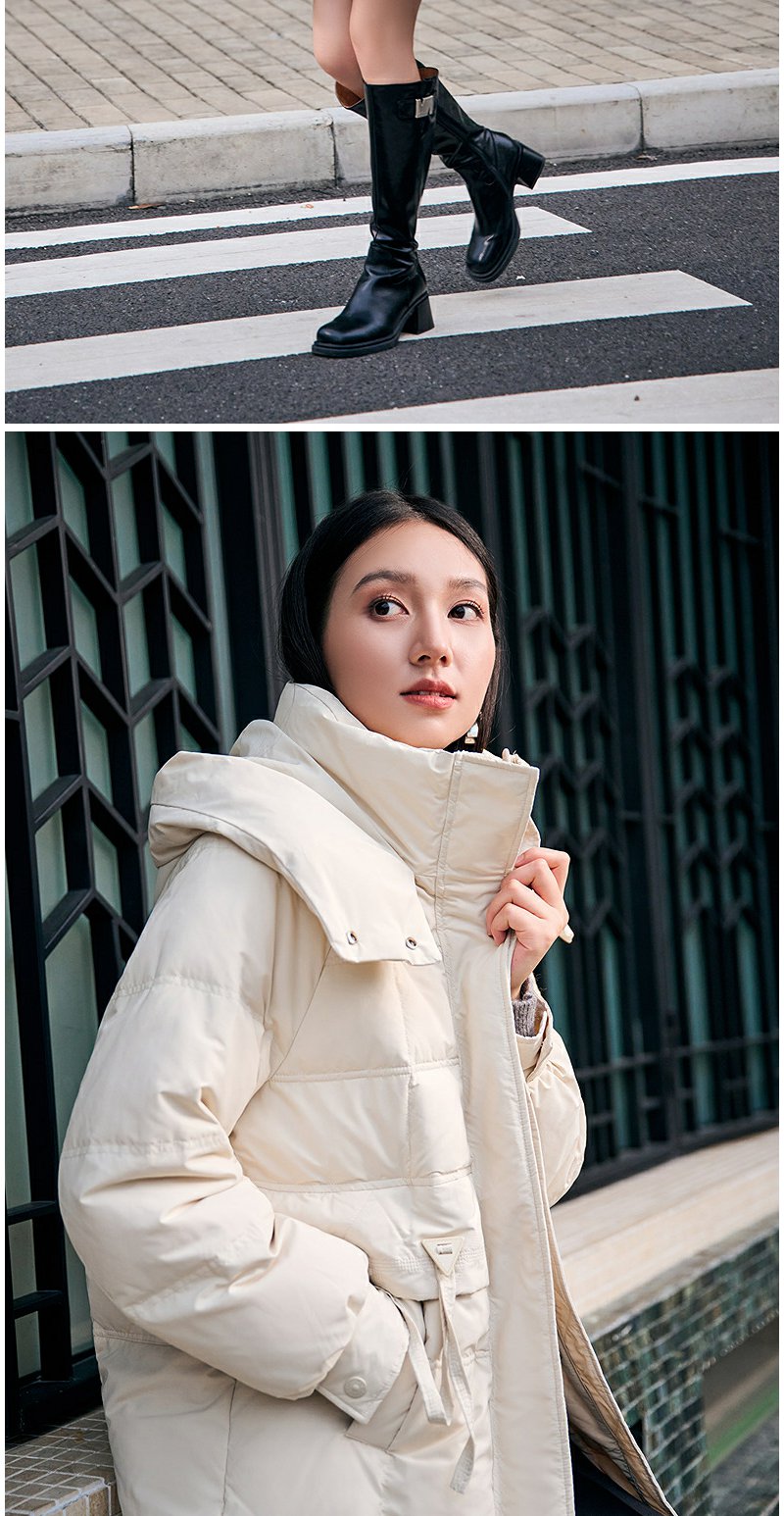 NEELLY纳俪商场同款冬季新款90%鸭绒宽松保暖连帽羽绒服女中长款N24104L07743