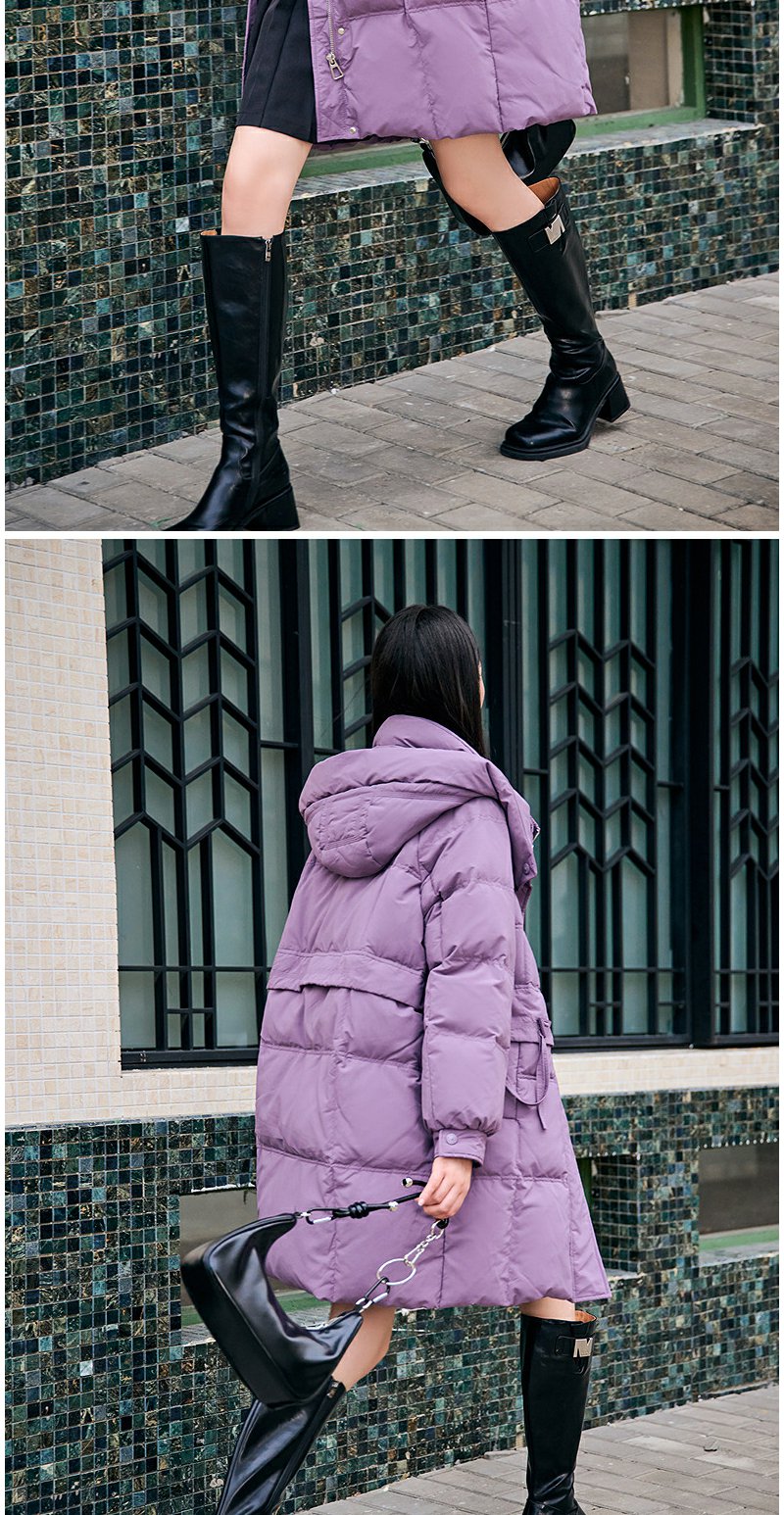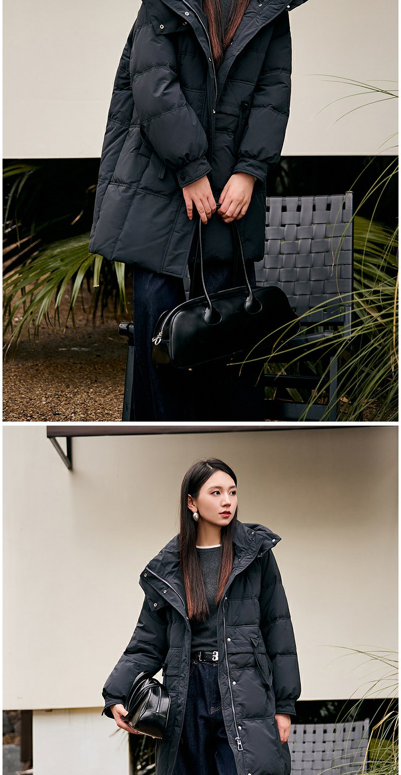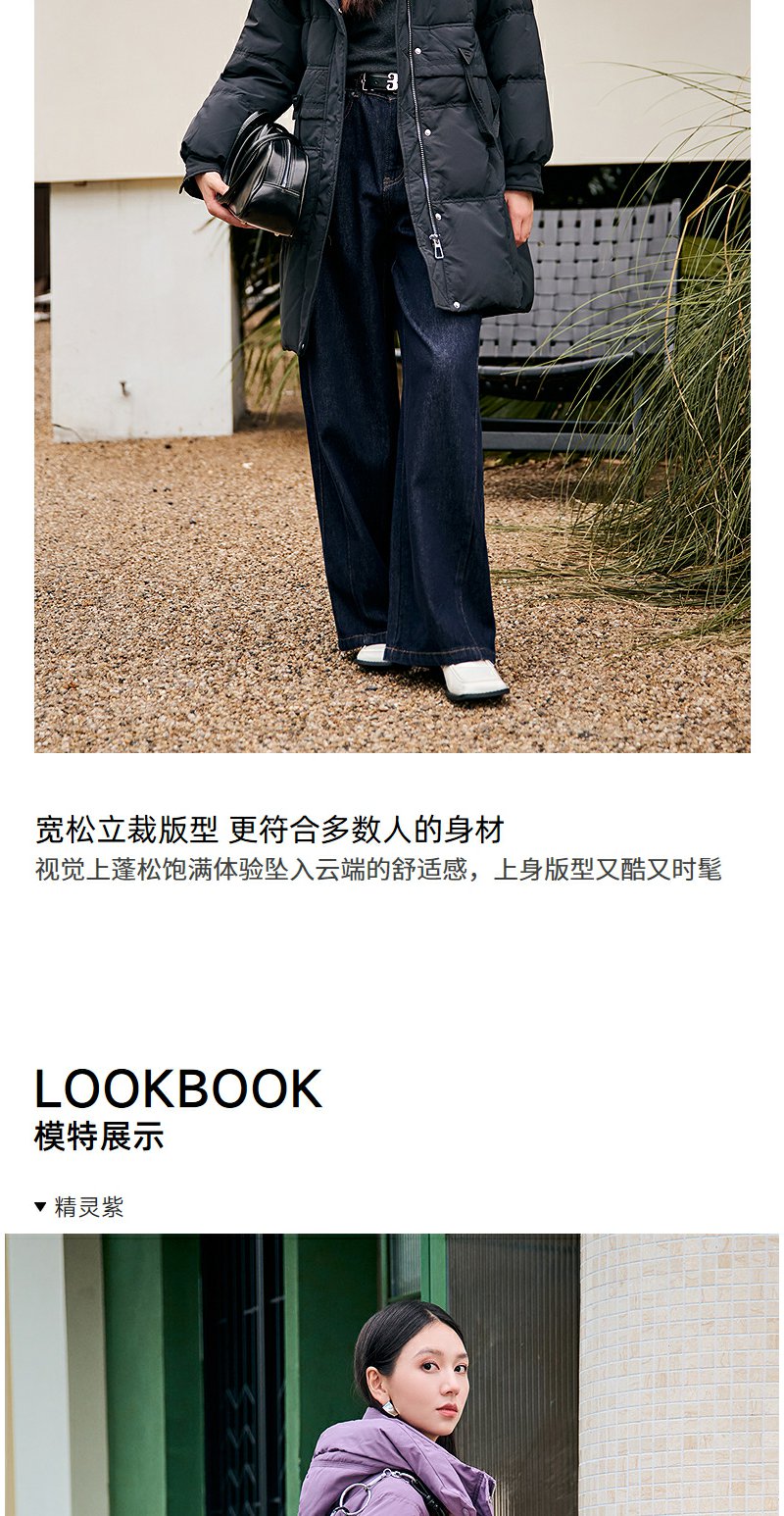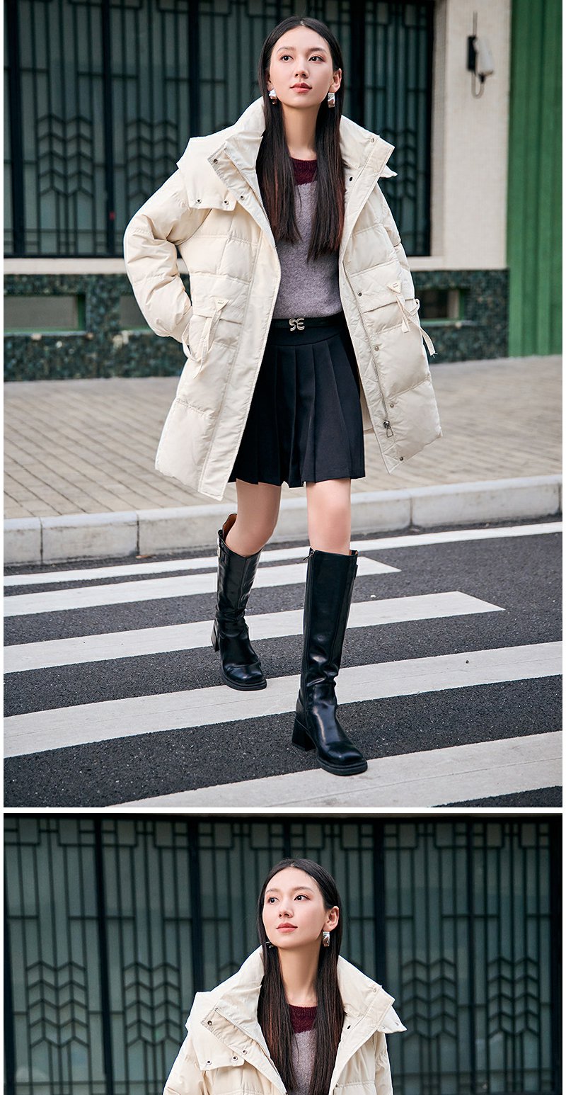 NEELLY纳俪商场同款冬季新款90%鸭绒宽松保暖连帽羽绒服女中长款N24104L07743