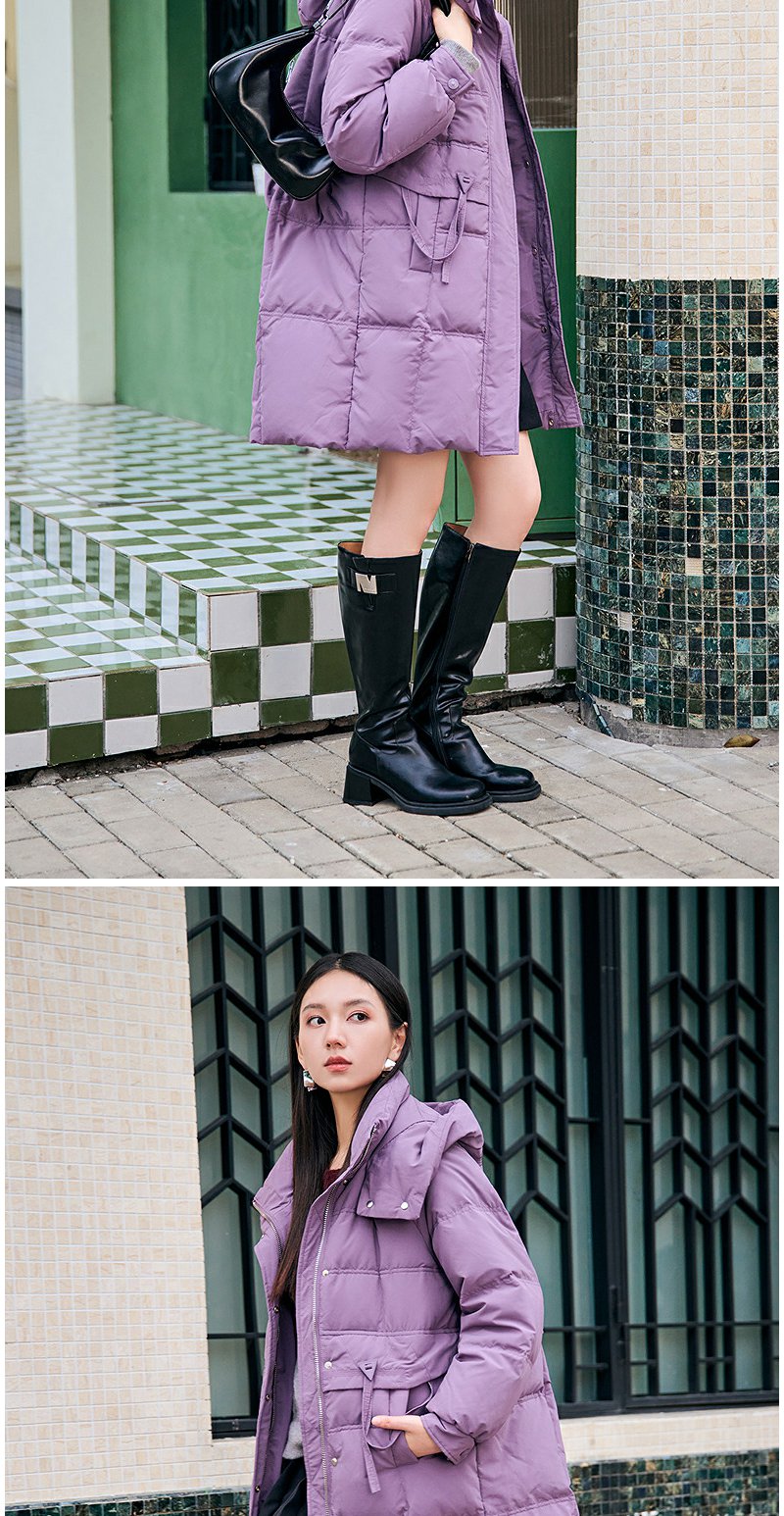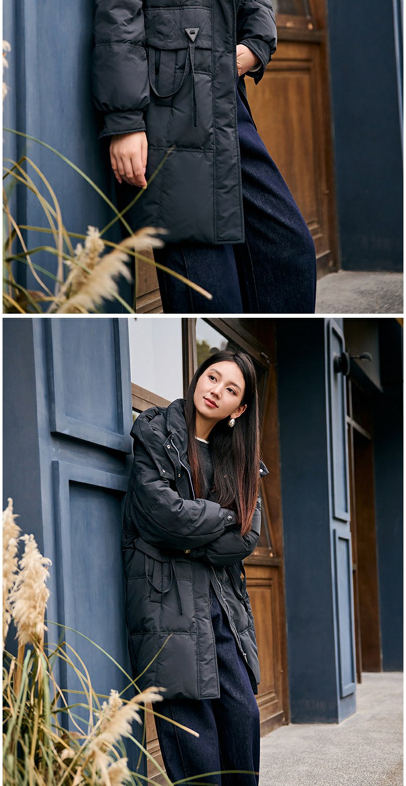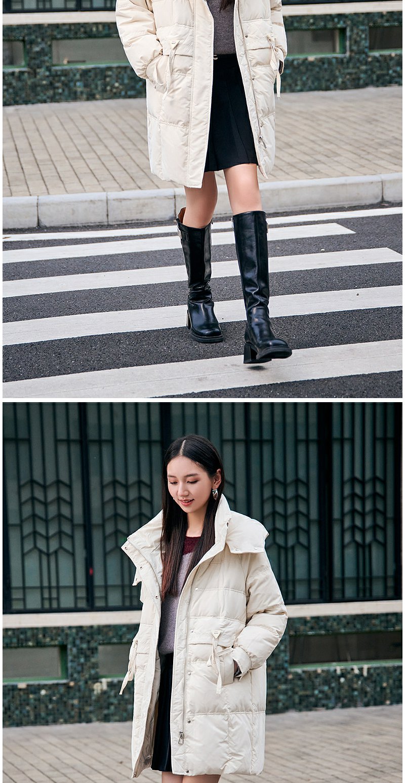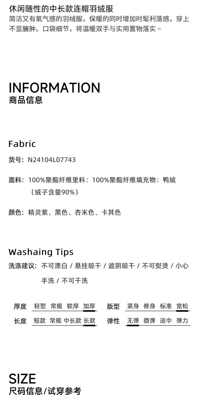NEELLY纳俪商场同款冬季新款90%鸭绒宽松保暖连帽羽绒服女中长款N24104L07743