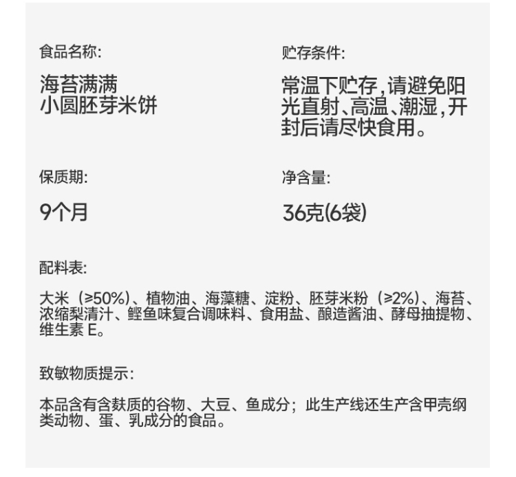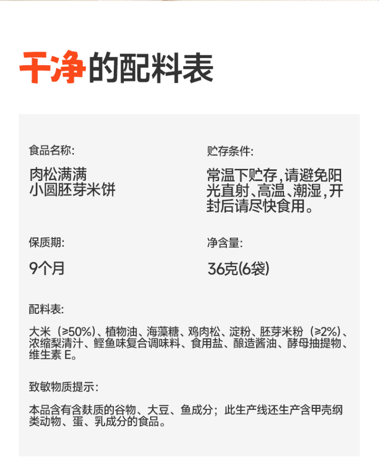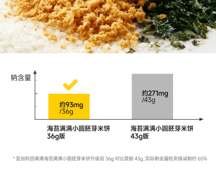 秋田满满肉松/海苔小圆胚芽米饼36g*3袋 宝宝饼干 12月+★