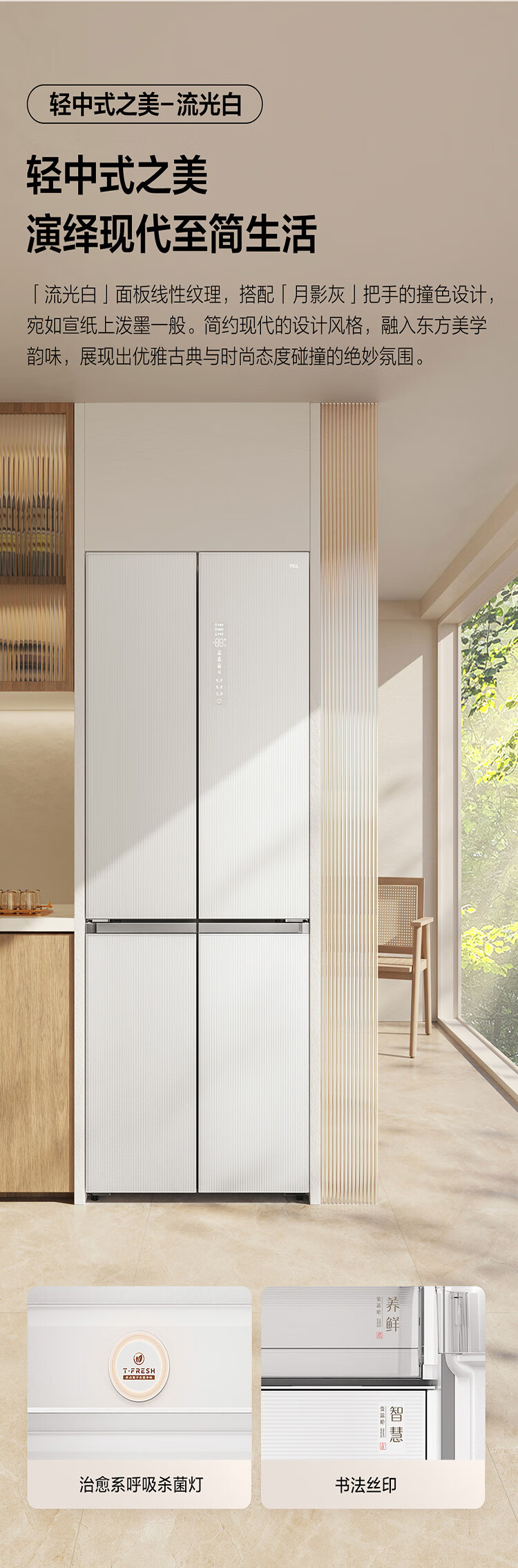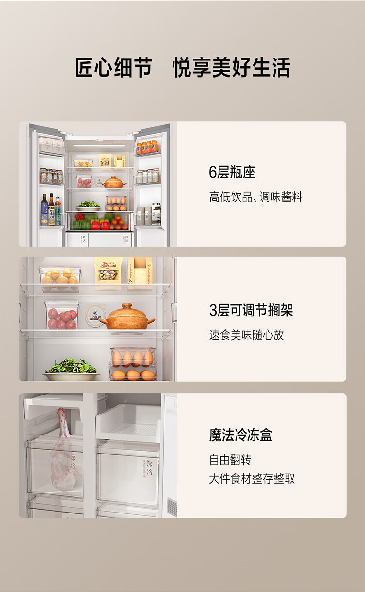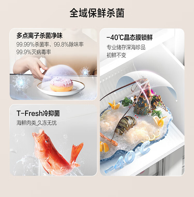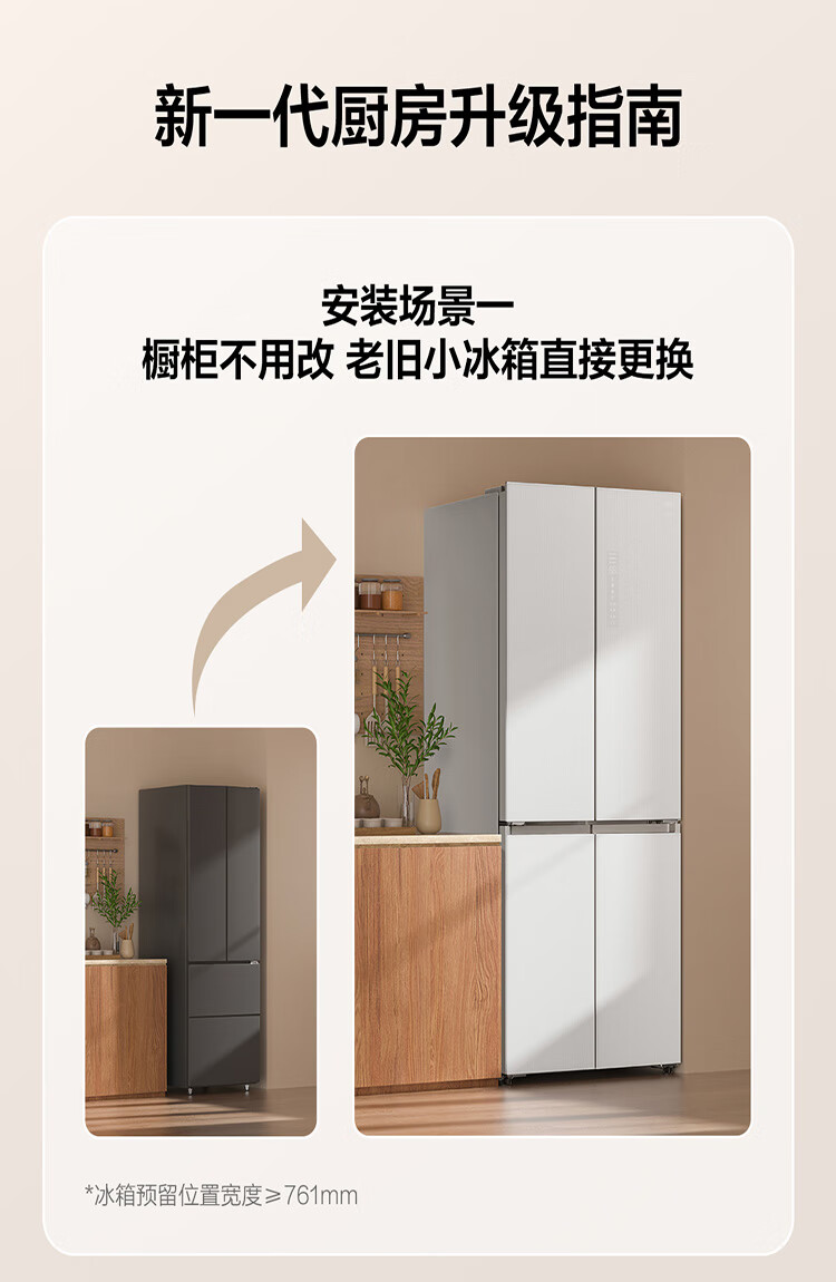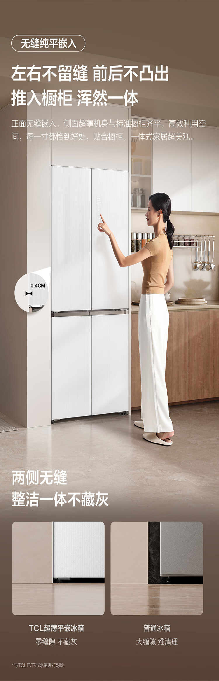 TCL415升十字门嵌入式冰箱_0cm无缝嵌入_58cm厚度_智慧变温空间_干湿分储_R415P10-UQ(线下同款T)