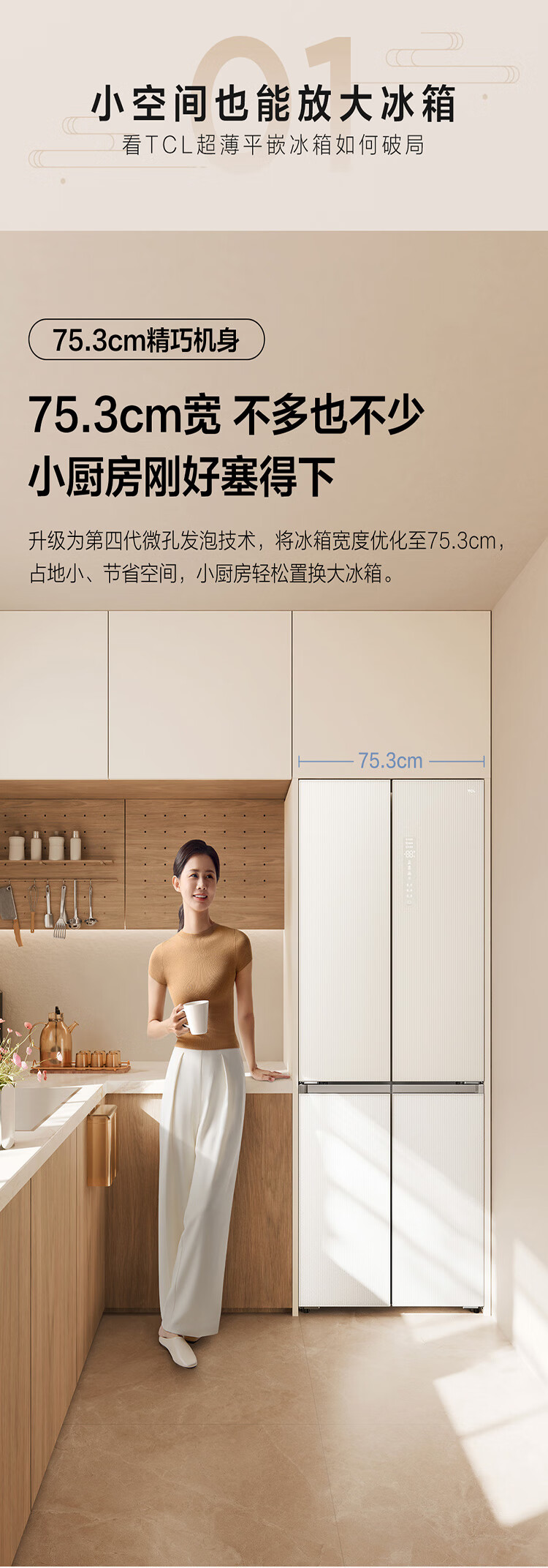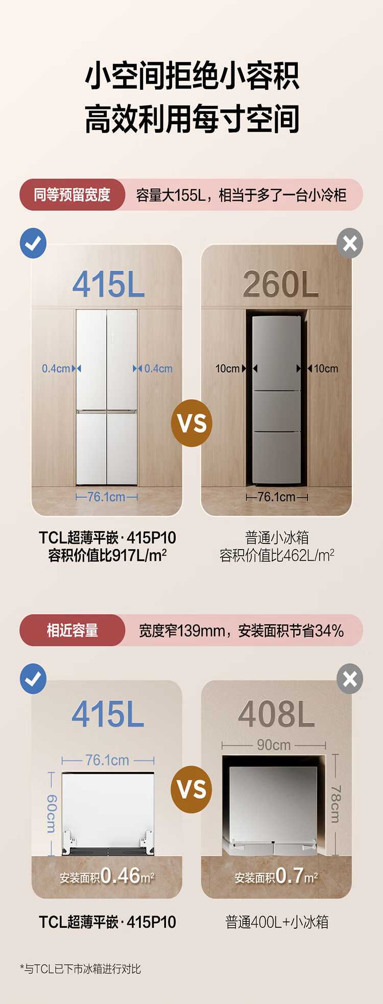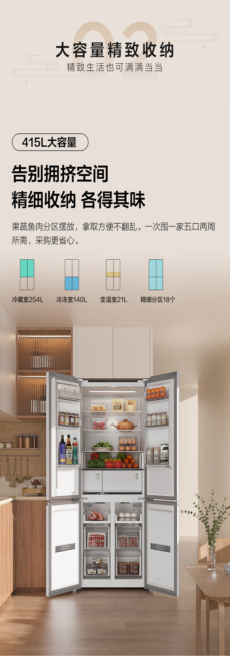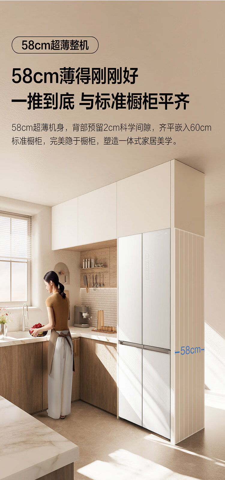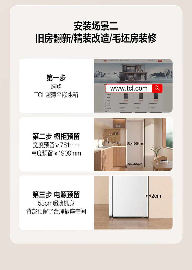 TCL415升十字门嵌入式冰箱_0cm无缝嵌入_58cm厚度_智慧变温空间_干湿分储_R415P10-UQ(线下同款T)