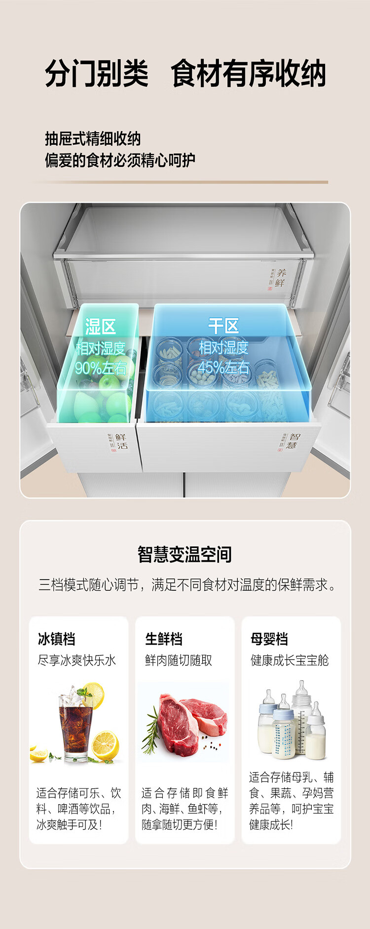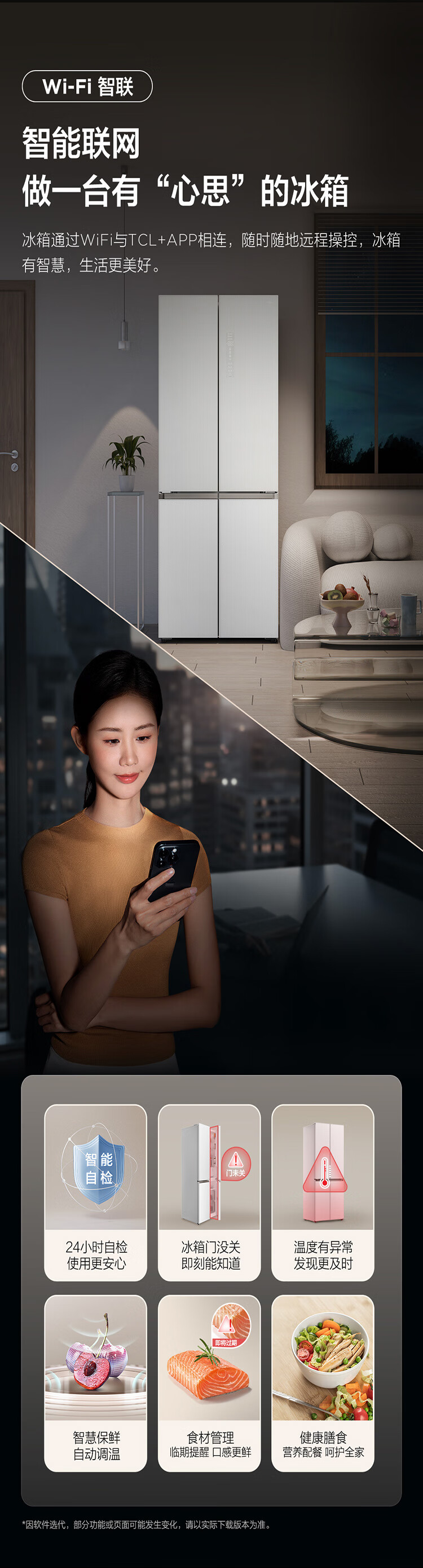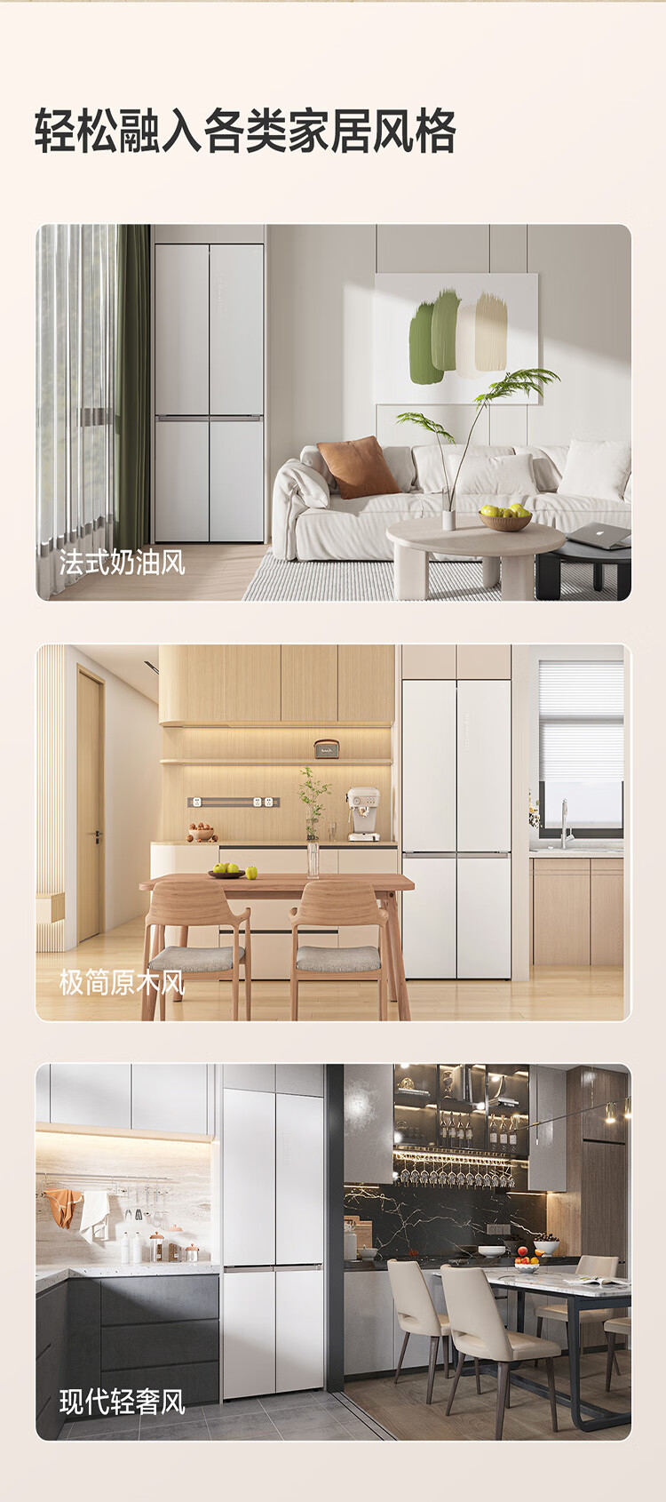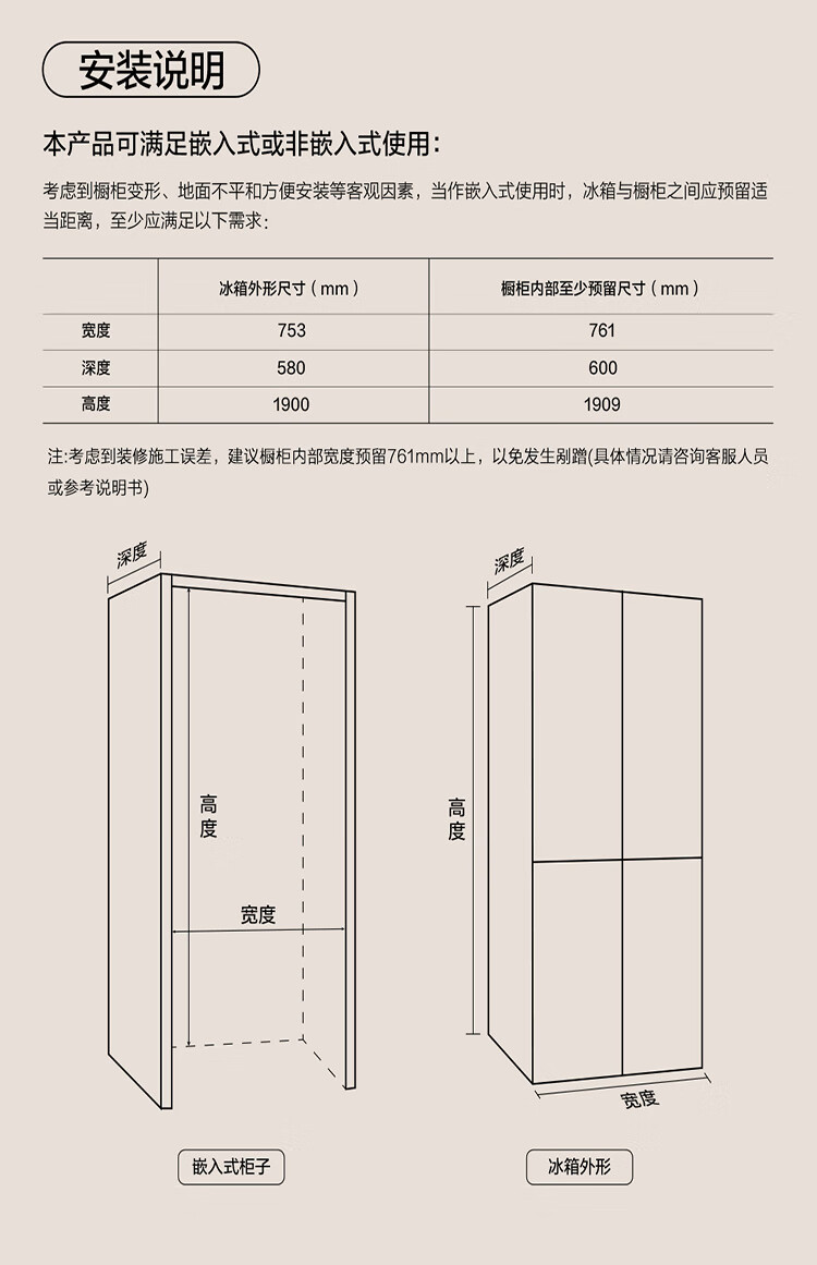 TCL415升十字门嵌入式冰箱_0cm无缝嵌入_58cm厚度_智慧变温空间_干湿分储_R415P10-UQ(线下同款T)