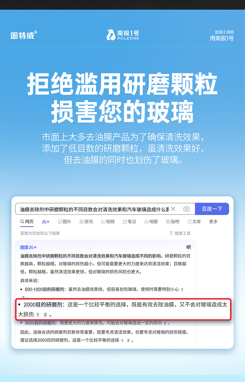 【南极1号】去油膜玻璃水 专研去油膜,17层过滤工艺,无杂质不堵喷头