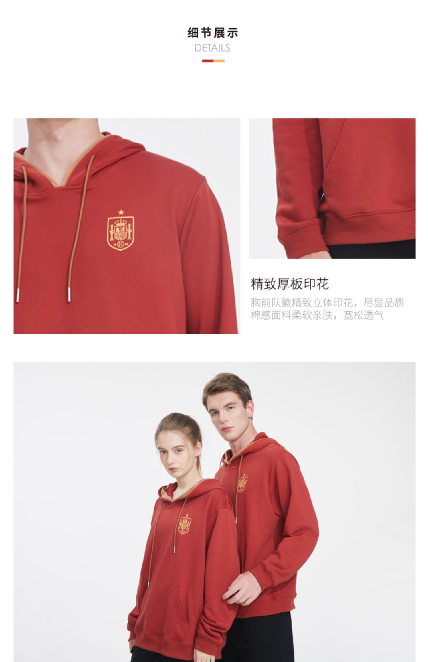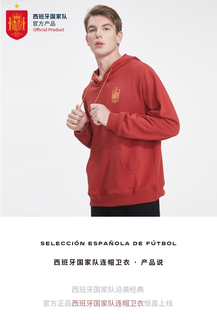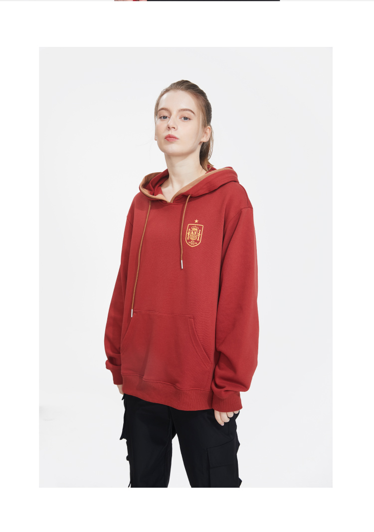 西班牙国家队官方商品丨连帽卫衣休闲宽松红色撞色帽毛圈球迷外套