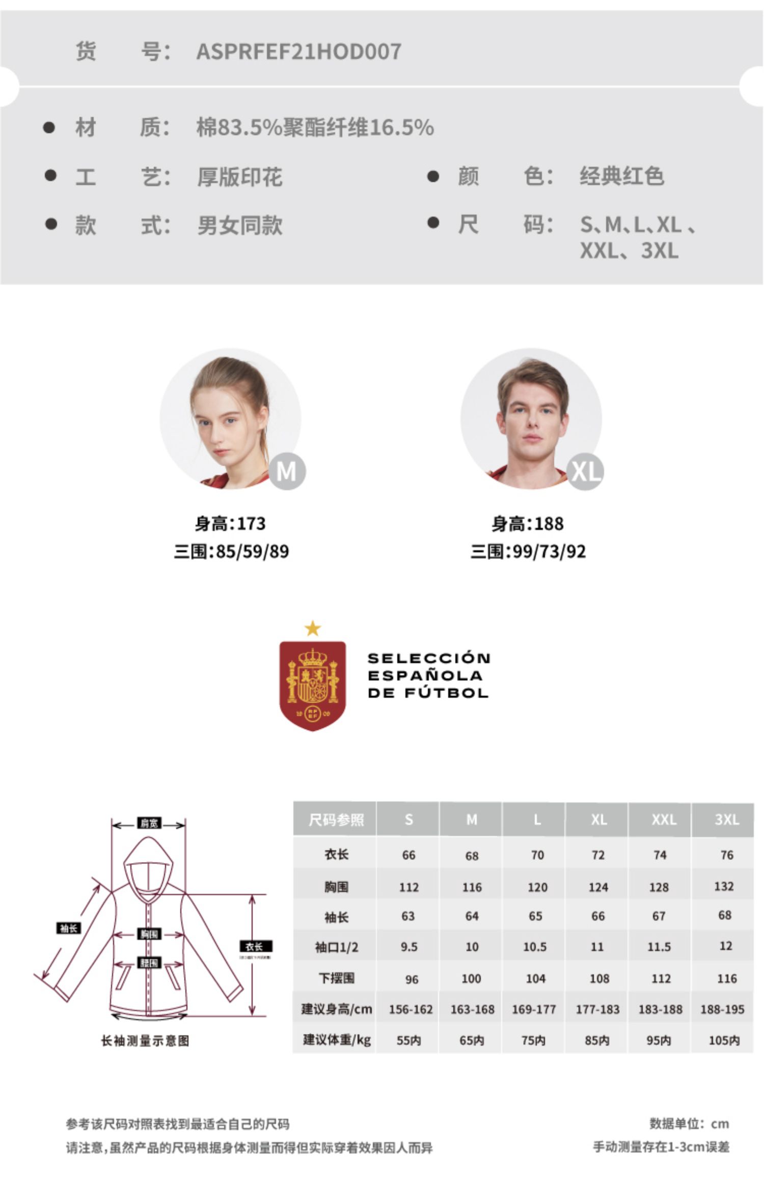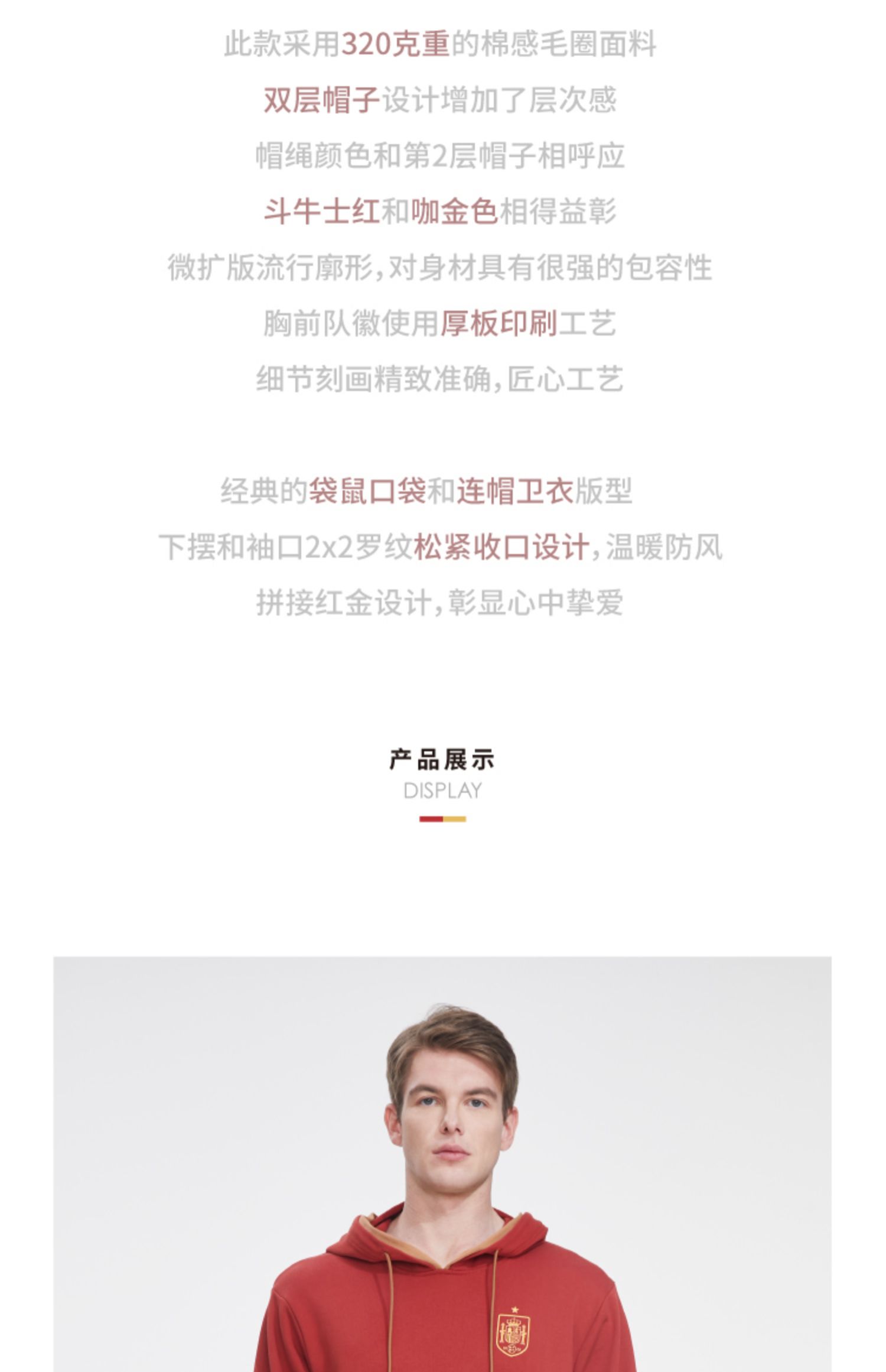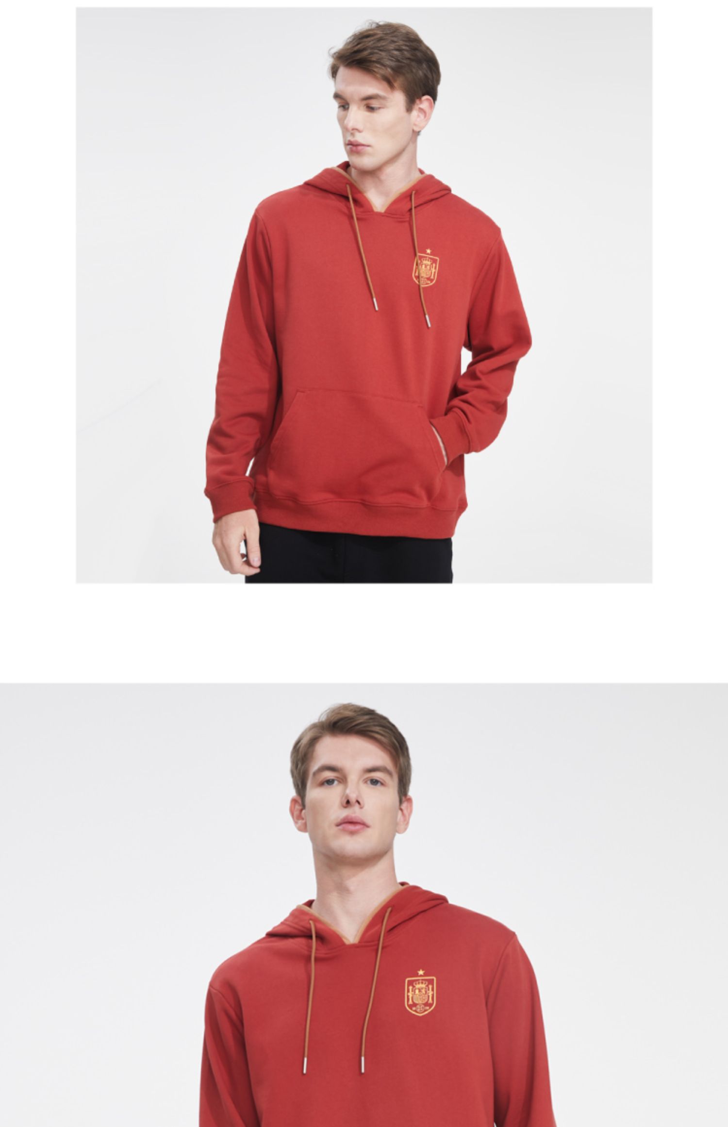 西班牙国家队官方商品丨连帽卫衣休闲宽松红色撞色帽毛圈球迷外套