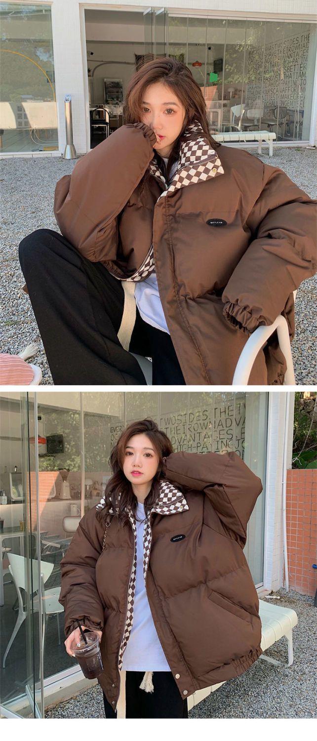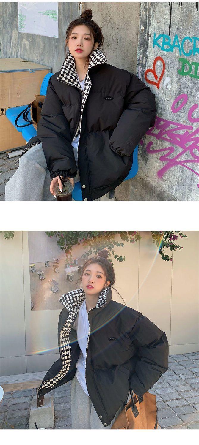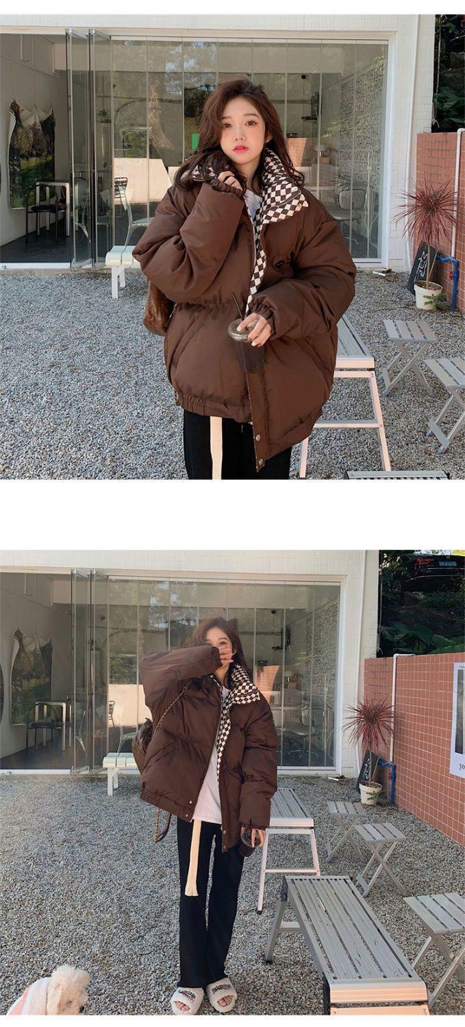 【清仓】棋盘格棉服外套女2023冬季新款森系面包服ins韩版宽松棉衣潮-MY1
