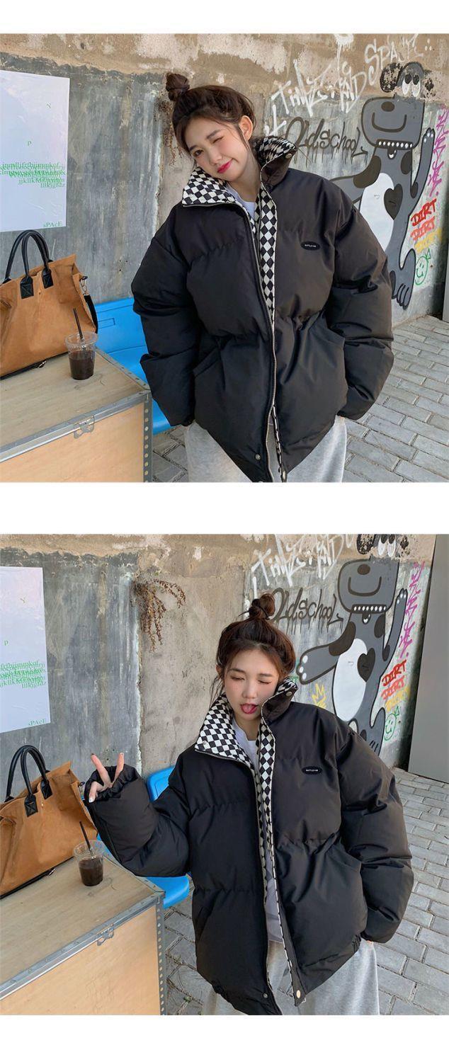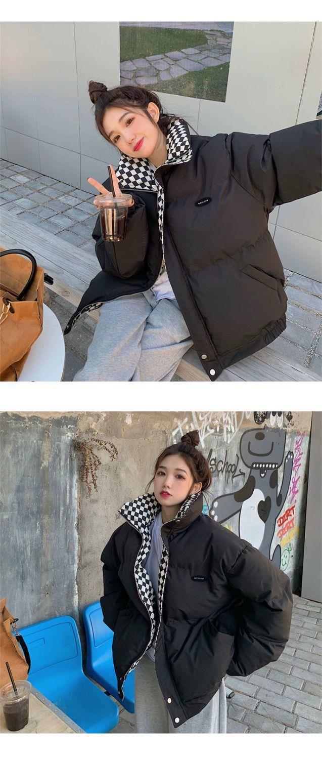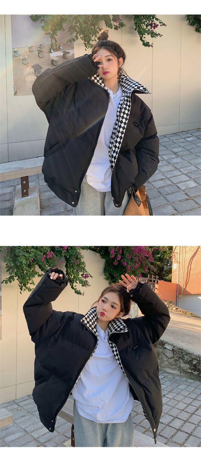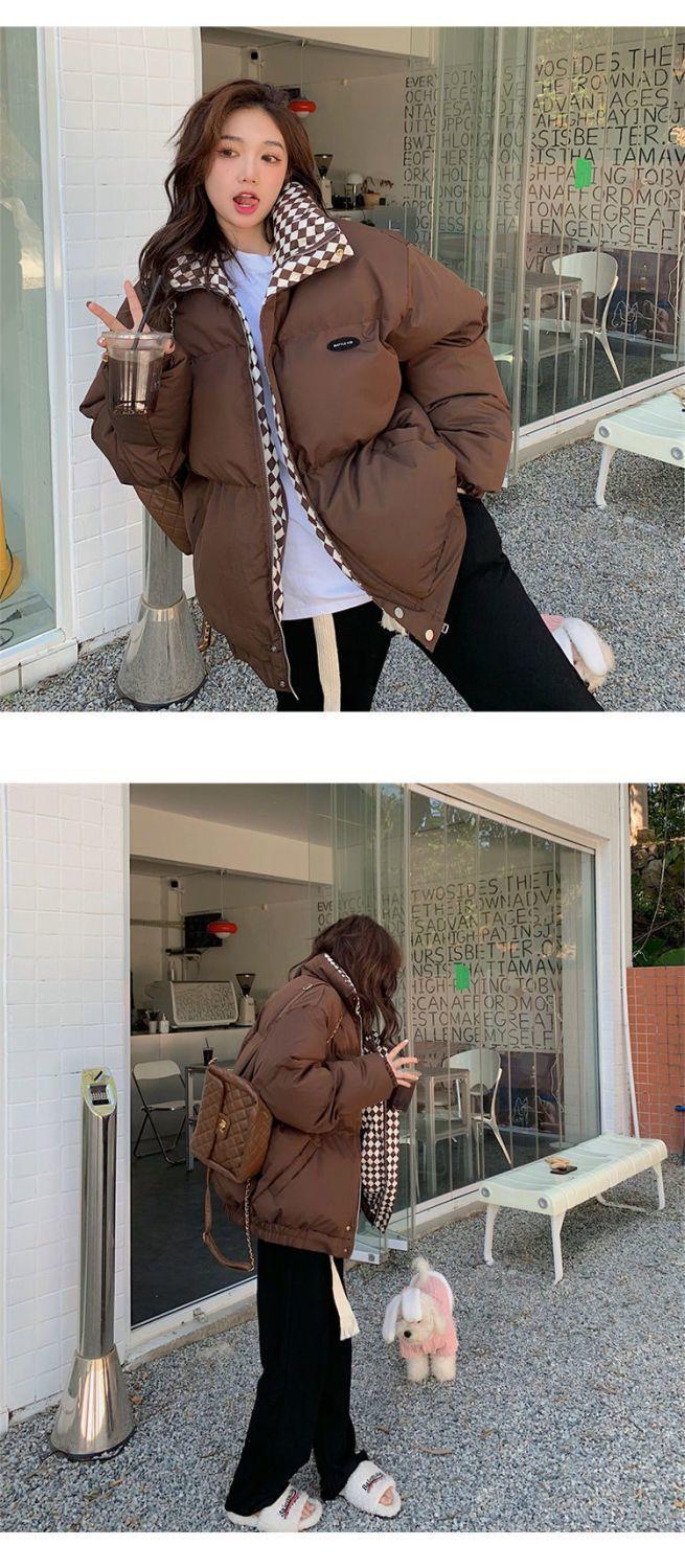 【清仓】棋盘格棉服外套女2023冬季新款森系面包服ins韩版宽松棉衣潮-MY1