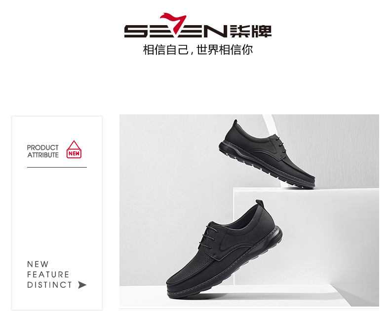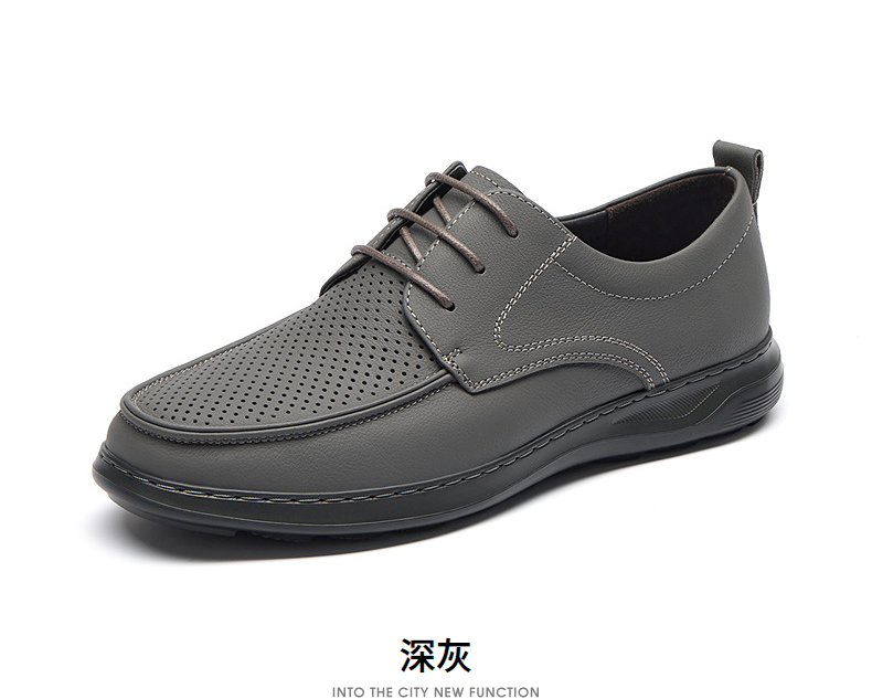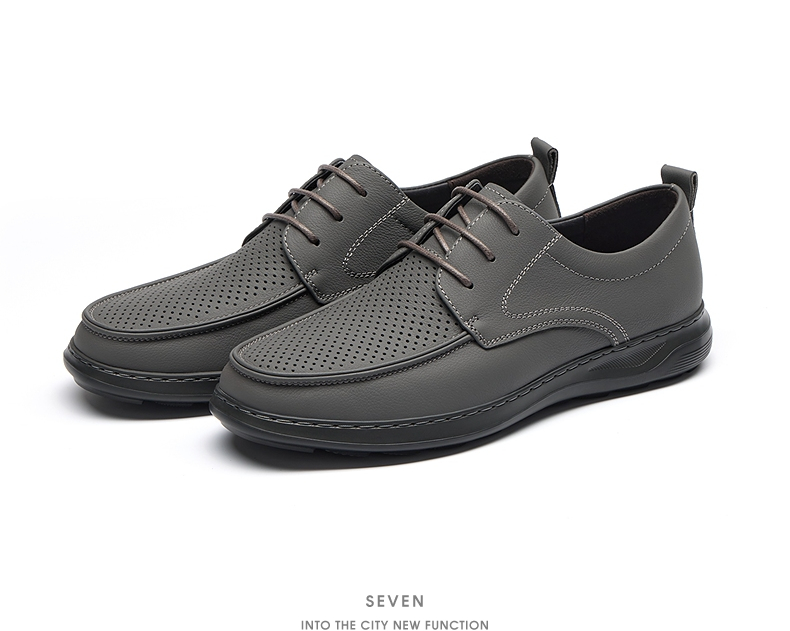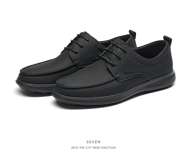 柒牌男士休闲鞋男春秋款时尚百搭低帮鞋轻便舒适真皮圆头系带潮鞋 127X70070