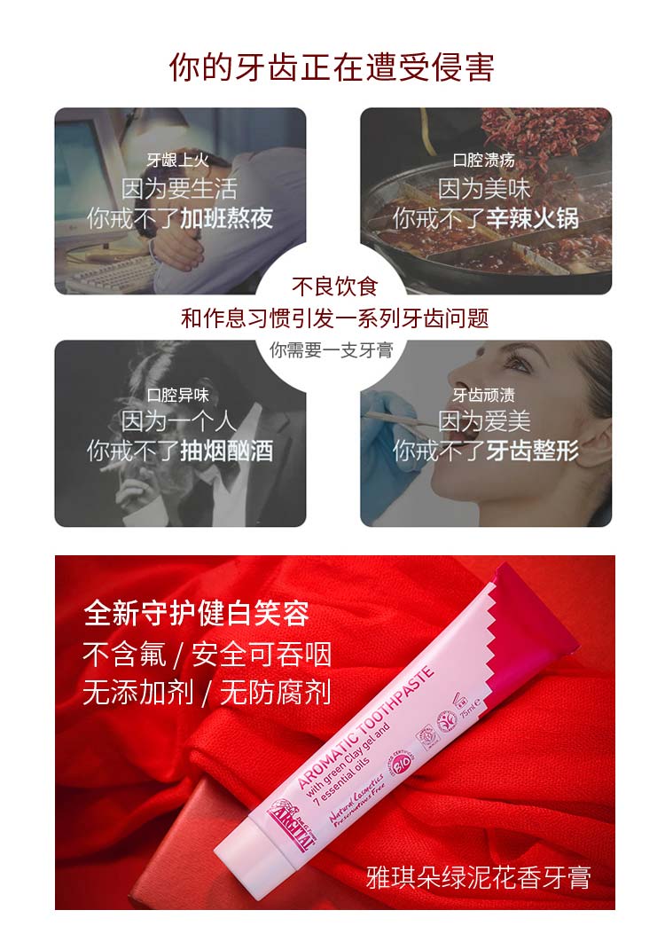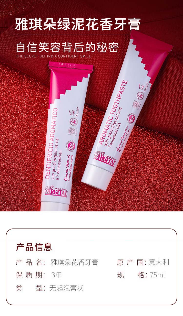 雅琪朵天然绿泥花香牙膏 75ML/瓶