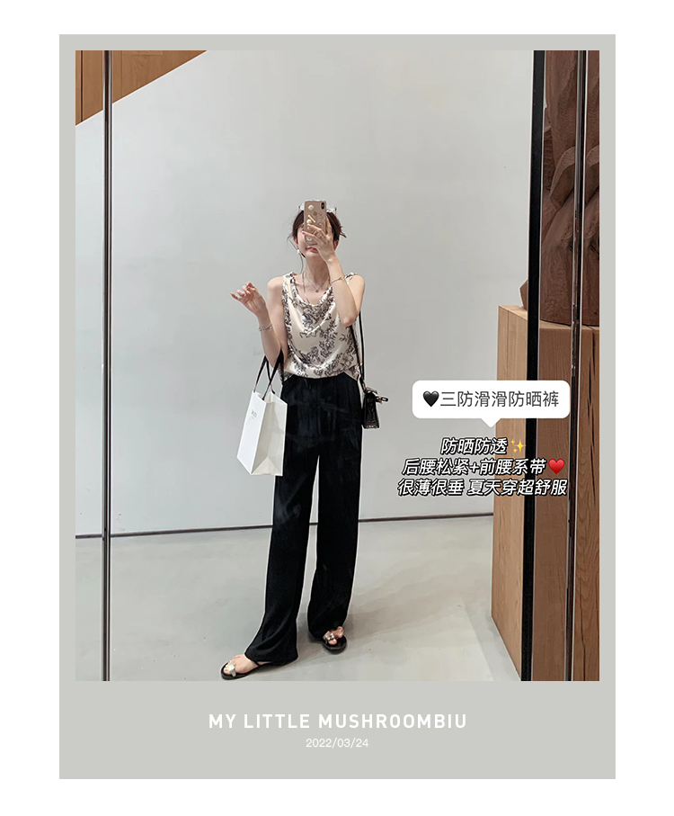 金蘑菇菇【三防滑滑防晒裤】防晒防透后腰松紧+前腰系带休闲长裤