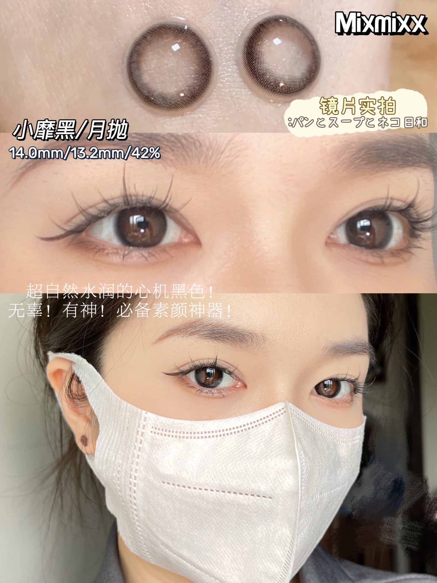 mixmixx月抛 小裸灰/小靡黑 14.0mm 非离子