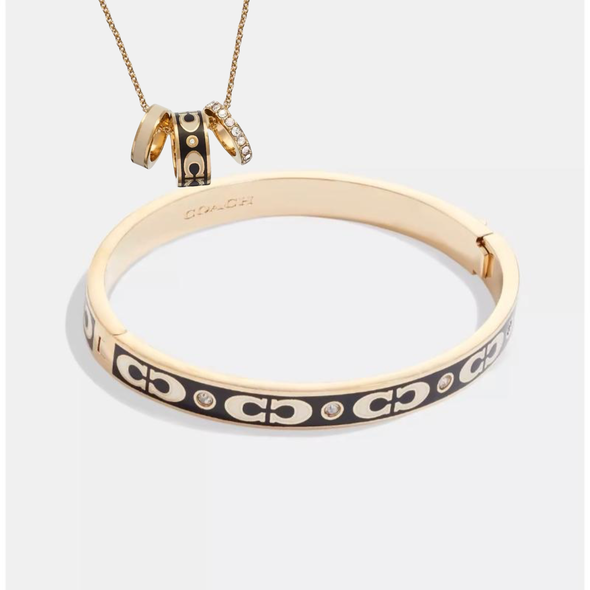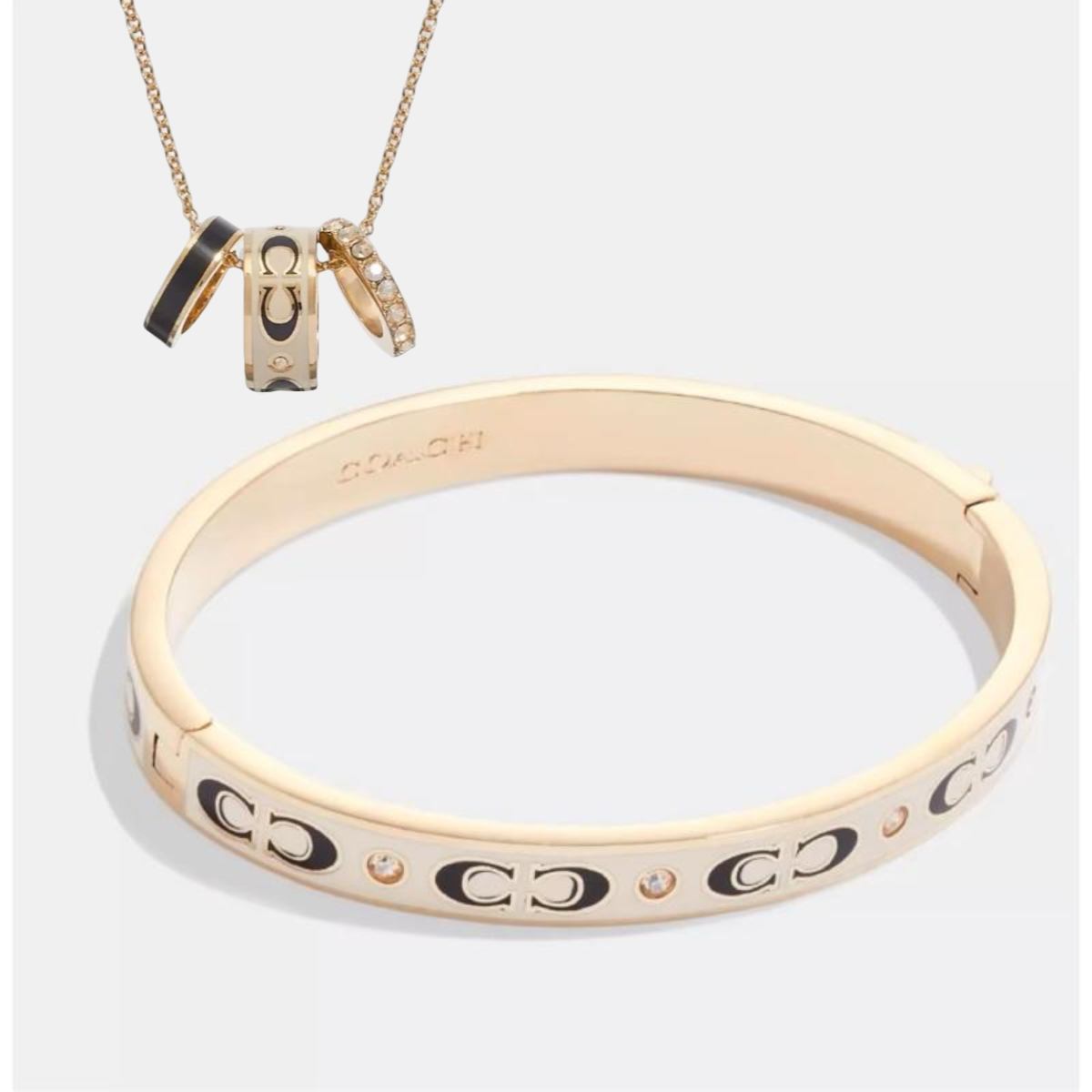 【品牌授权】【买手镯 送同款项链】COACH蔻驰奥莱潮流高奢饰品项链 手镯 黑金 白金 三环带钻项链