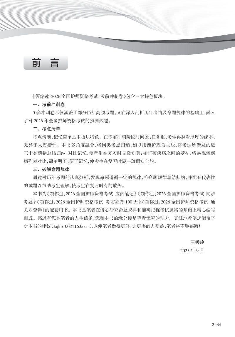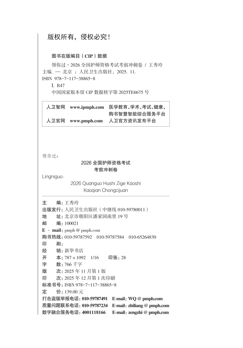领你过:2026全国护师资格考试 考前冲刺卷 王秀玲 主编 考试用书 2026职称考试 附赠《考点清单与破解命题规律》人民卫生出版社