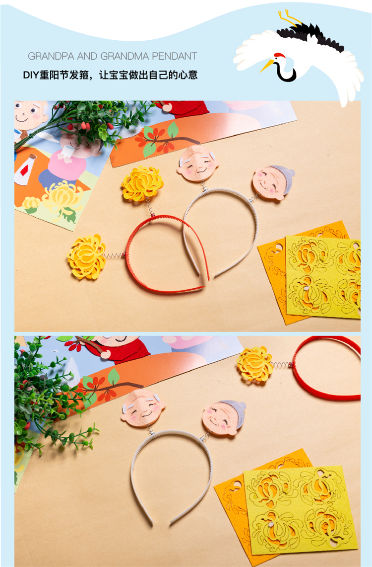 重阳节手工diy创意自制作重阳节发箍卡通可爱幼儿园儿童材料包