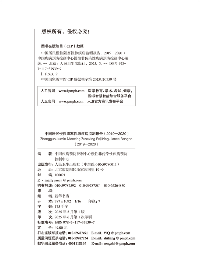 书名:中国居民慢性阻塞性肺疾病监测报告(2019—2020)