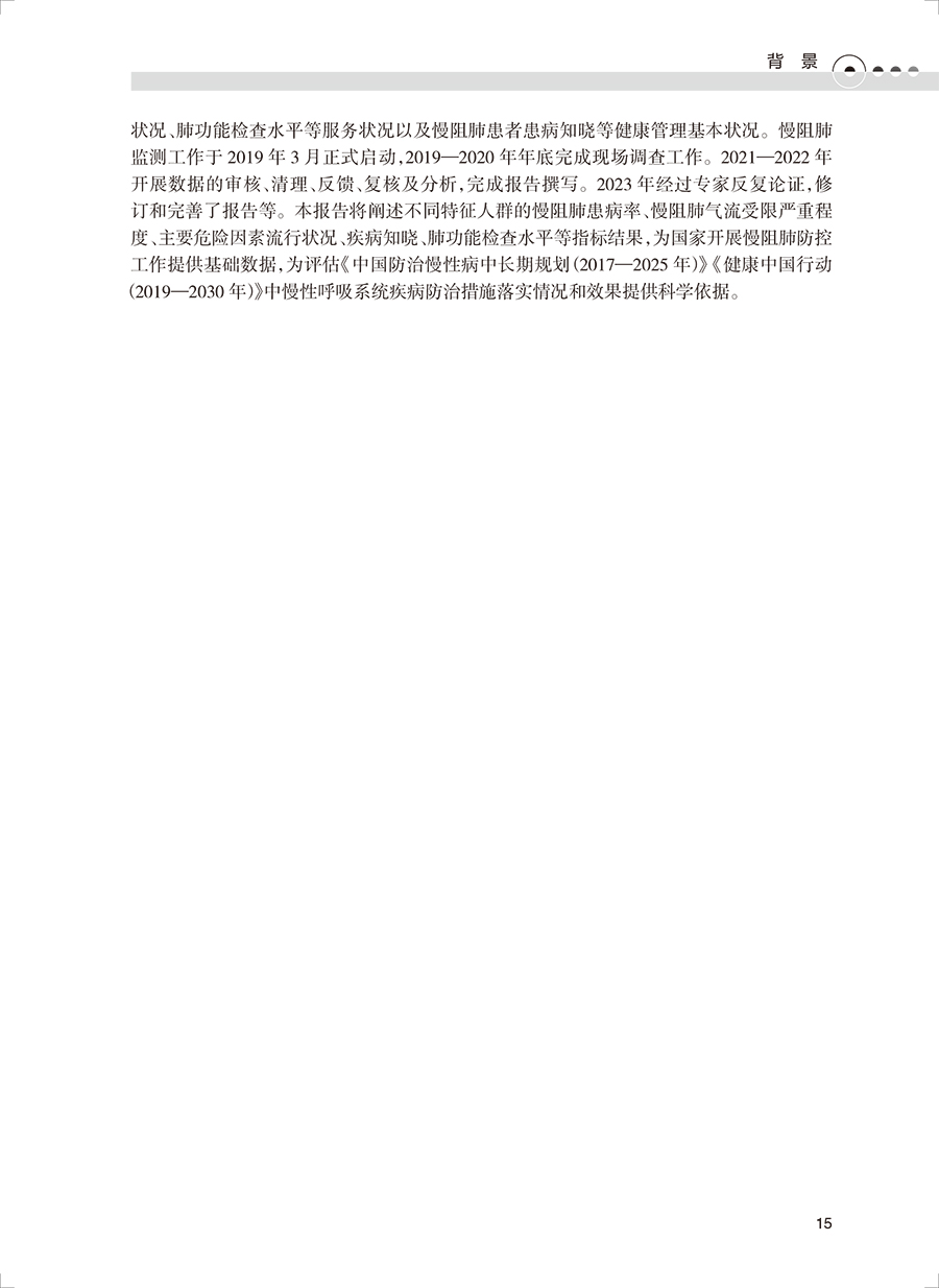 2.本监测报告结合**轮数据结果(2014-2015年)进行比较,有针对性地对我国以慢阻肺为主的慢性呼吸系统疾病防控政策和措施提出建议。