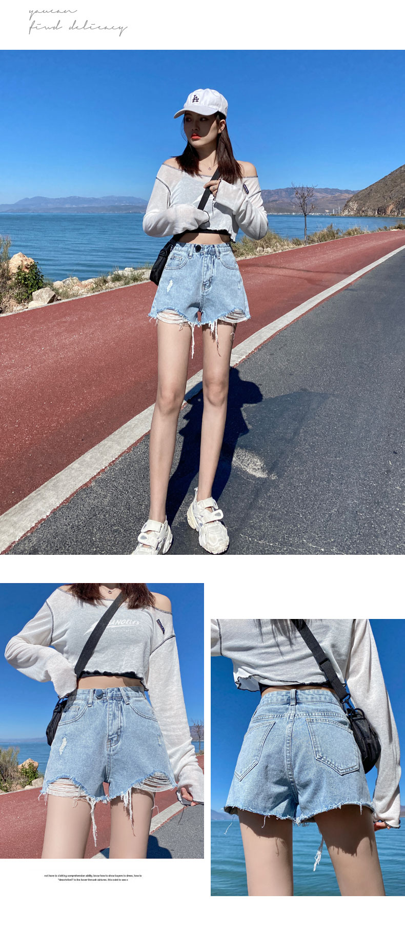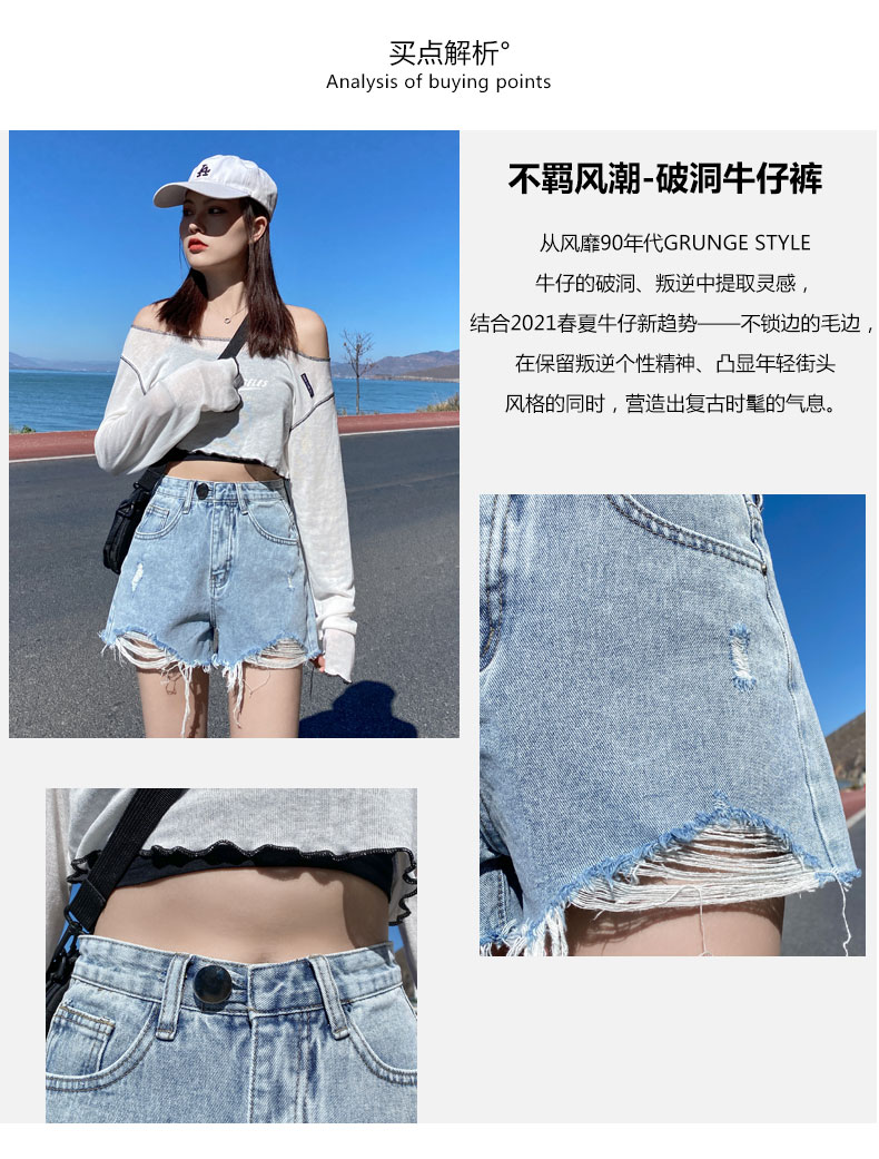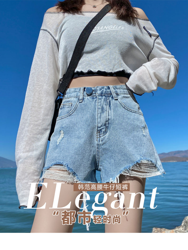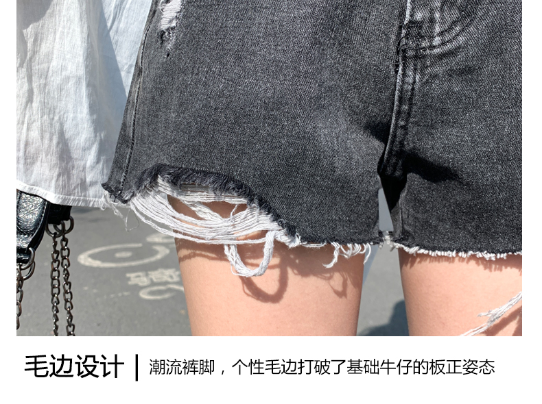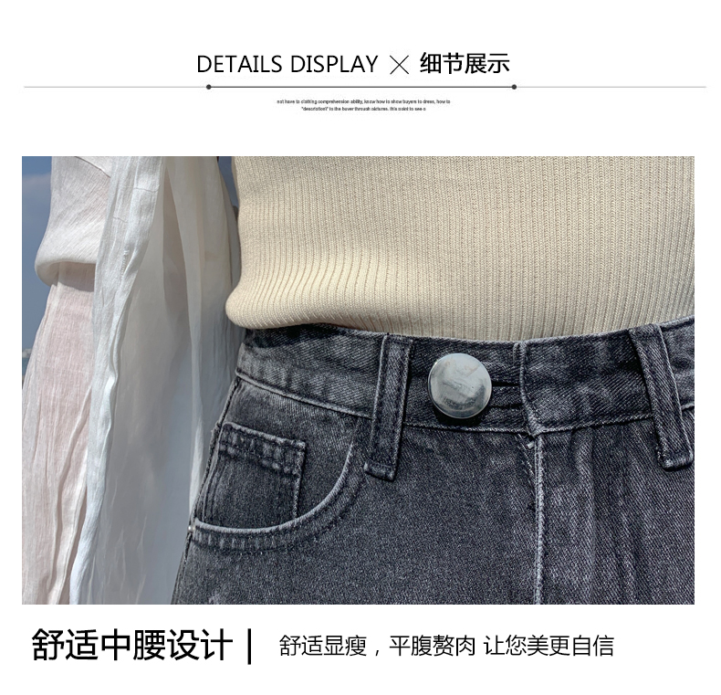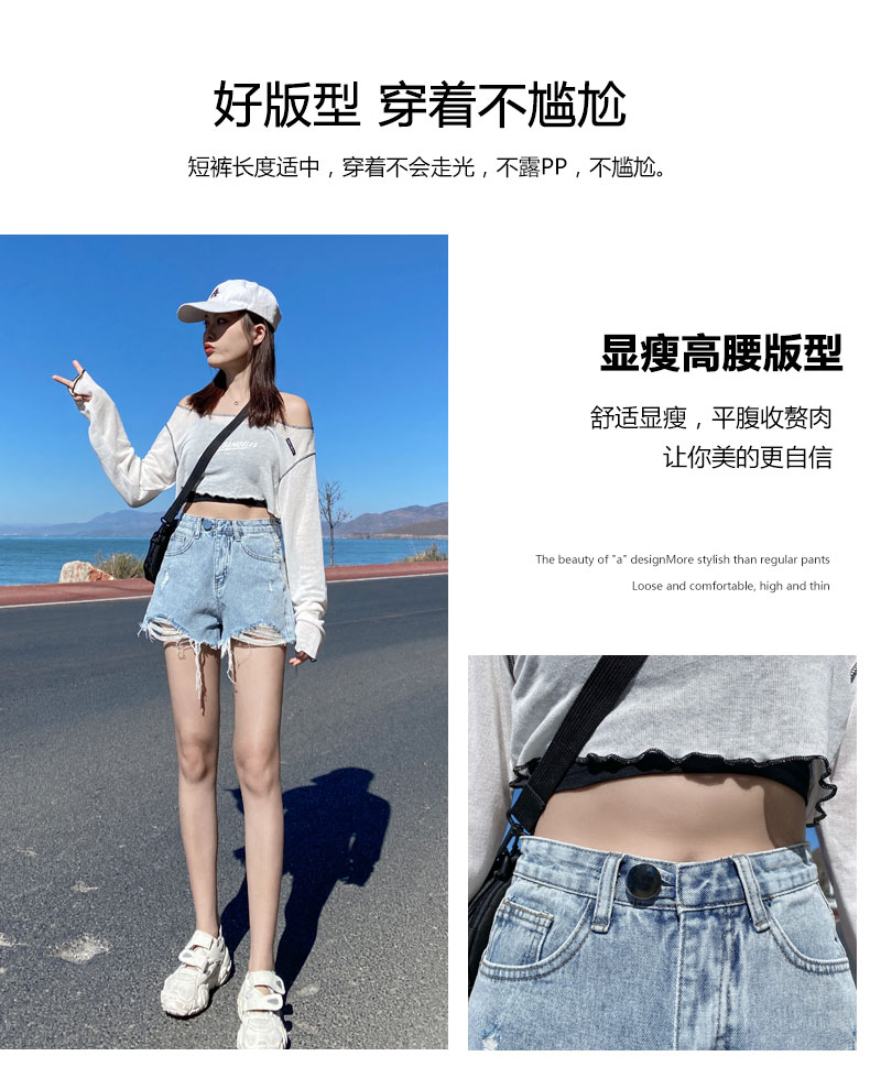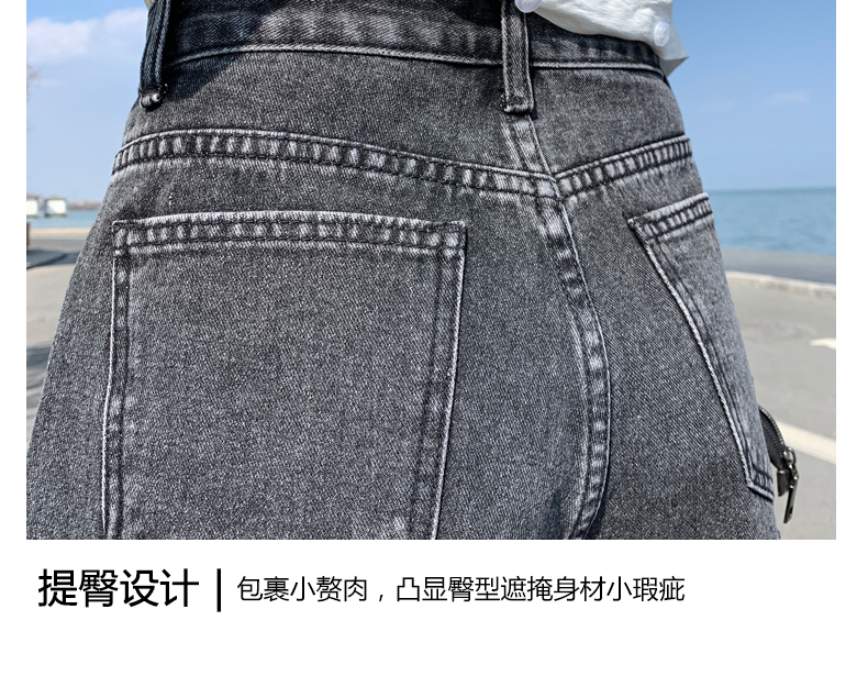 【AHEY+JEANS】女士高腰显瘦破洞牛仔裤