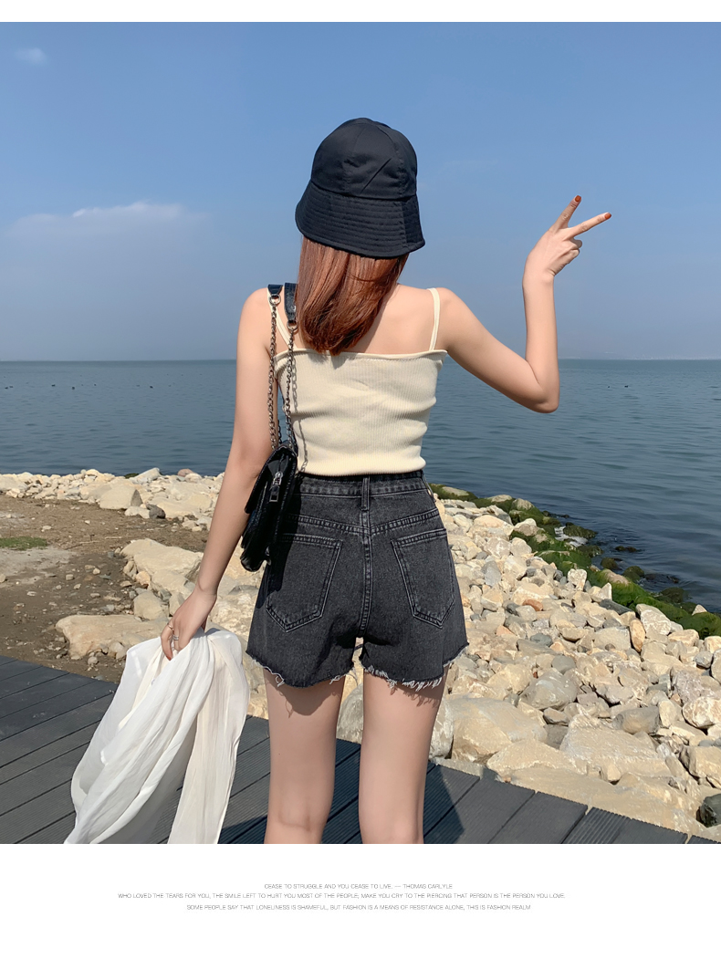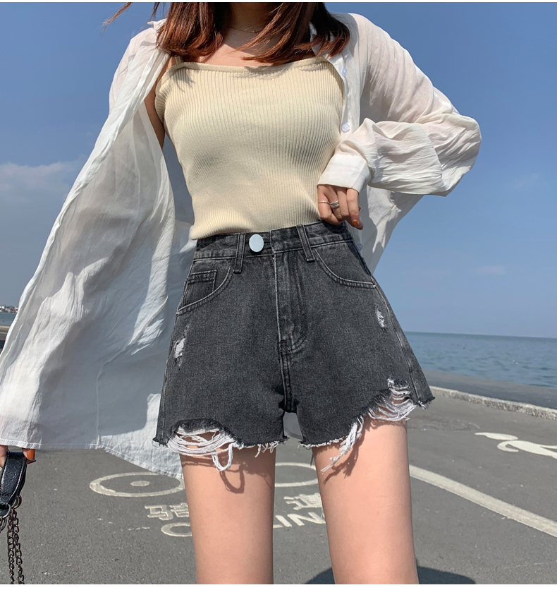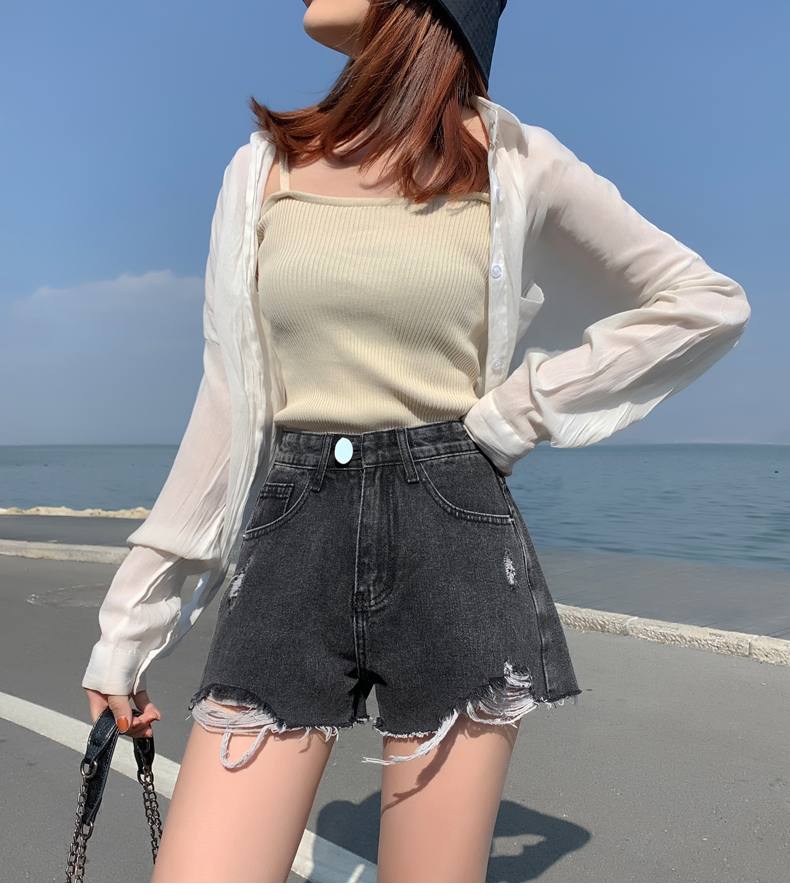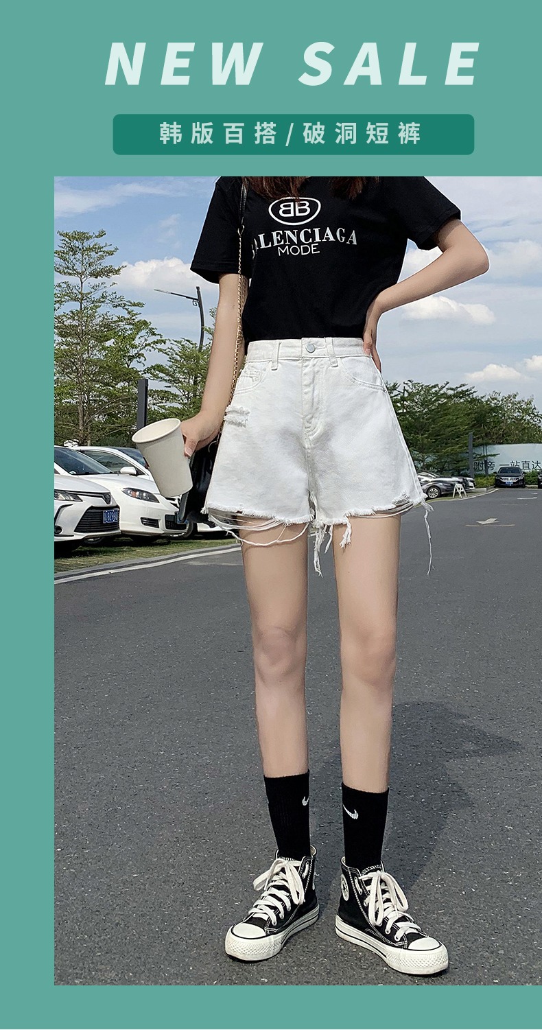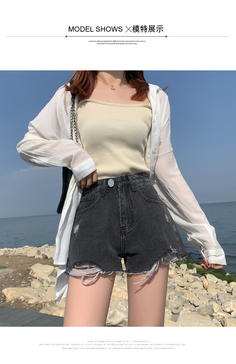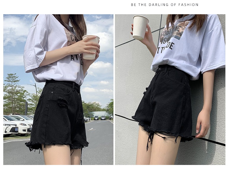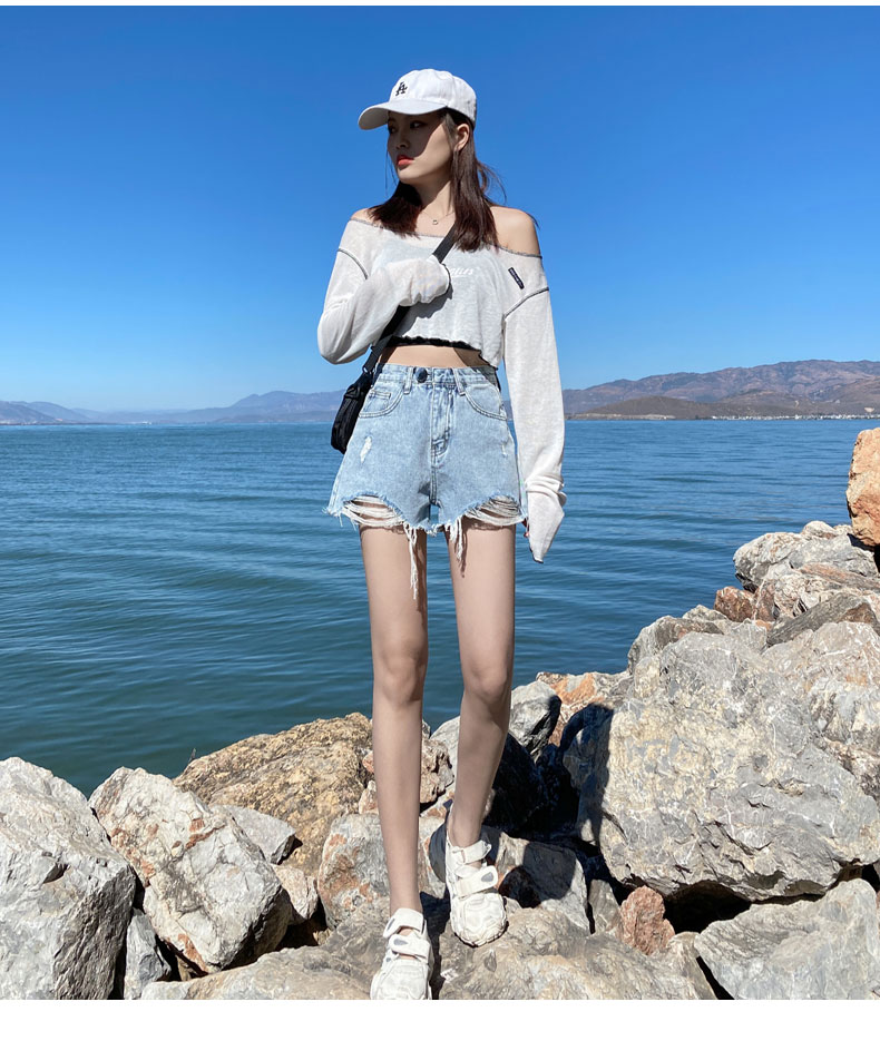 【AHEY+JEANS】女士高腰显瘦破洞牛仔裤