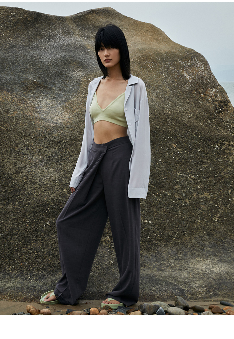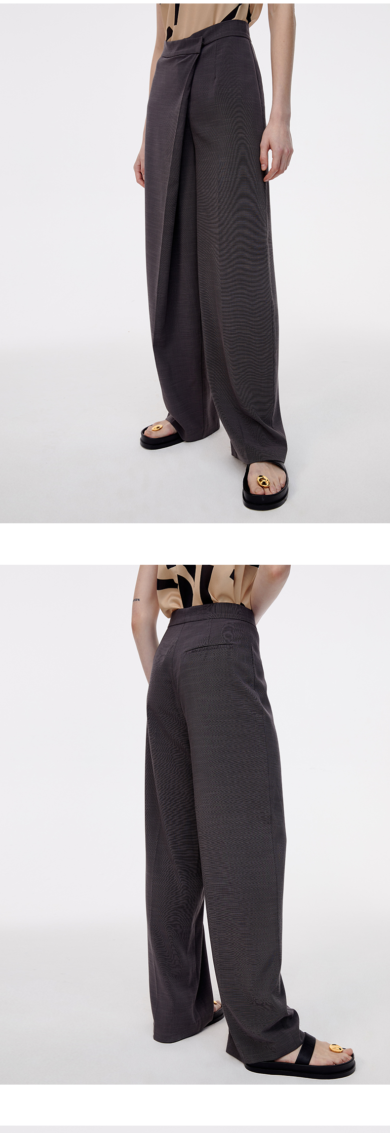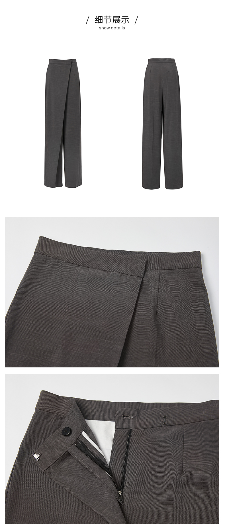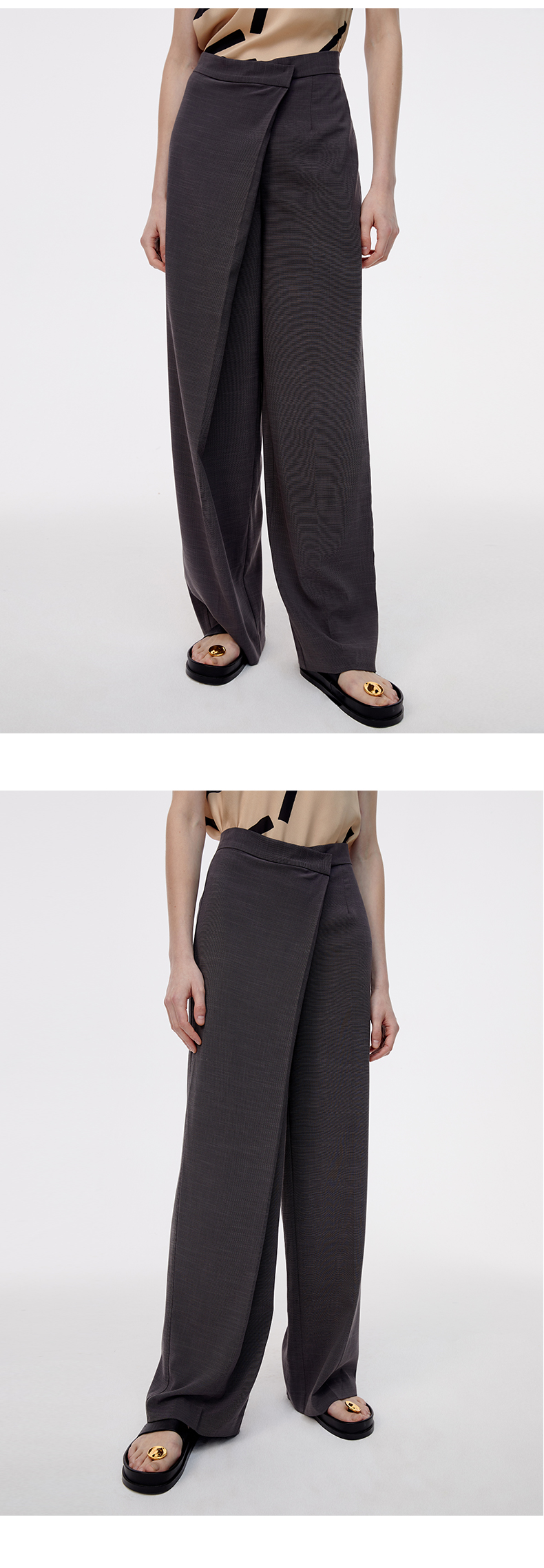 HIDEMI夜灰色简约不对称设计感一粒扣阔腿裤