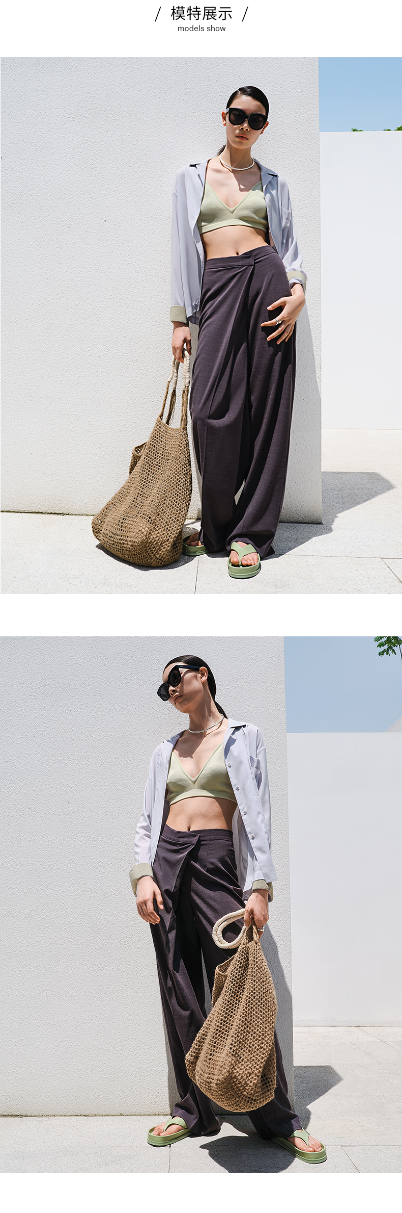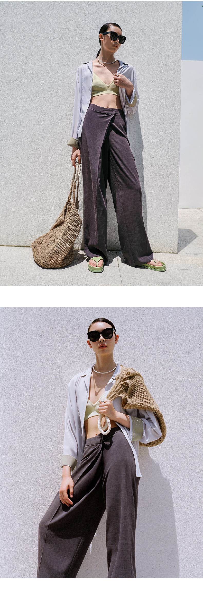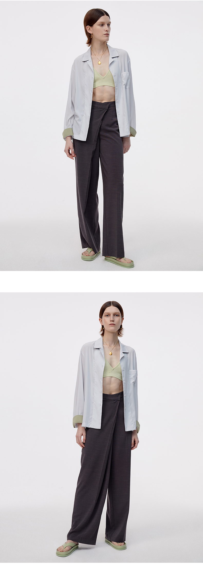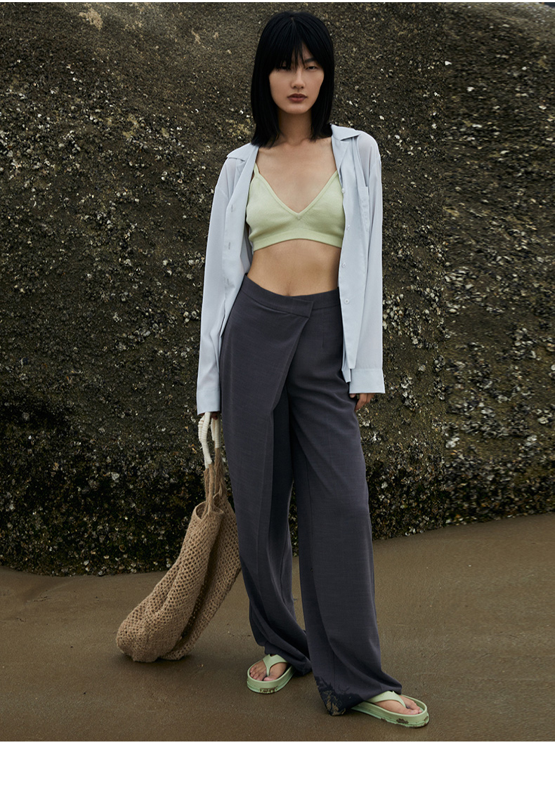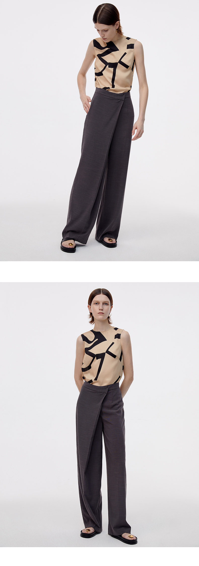 HIDEMI夜灰色简约不对称设计感一粒扣阔腿裤