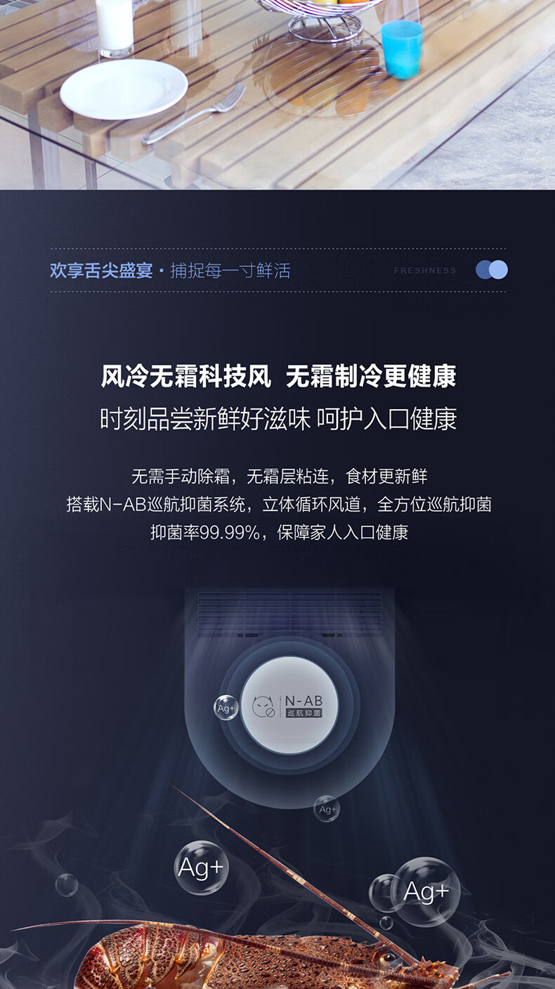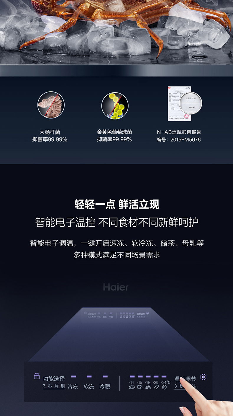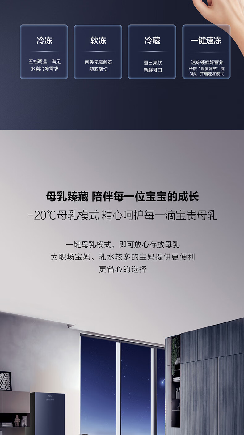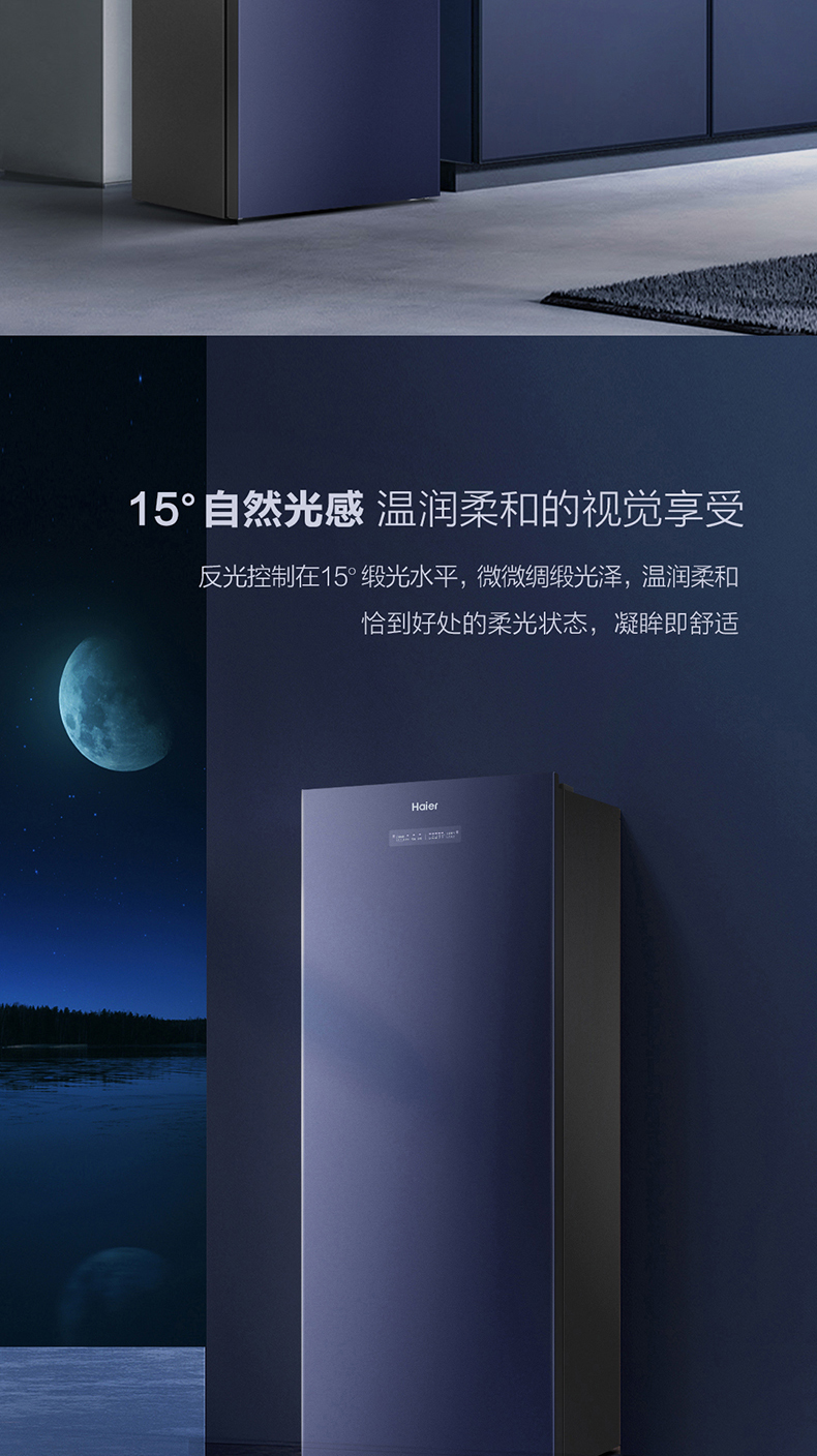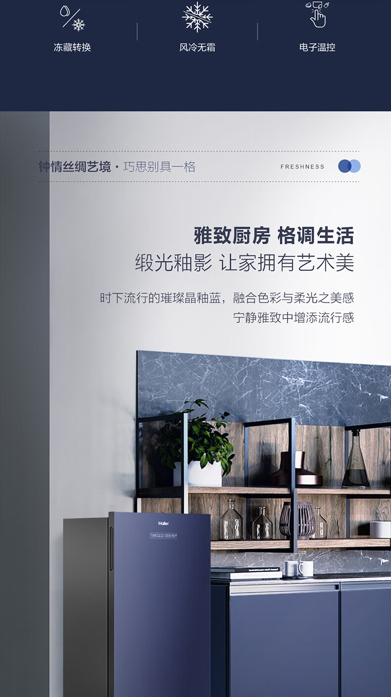 海尔立式冰柜 152升家用冷藏冷冻冷柜 风冷无霜 一级能效 飨宴系列 BD-152WEGK-肤感晶釉蓝