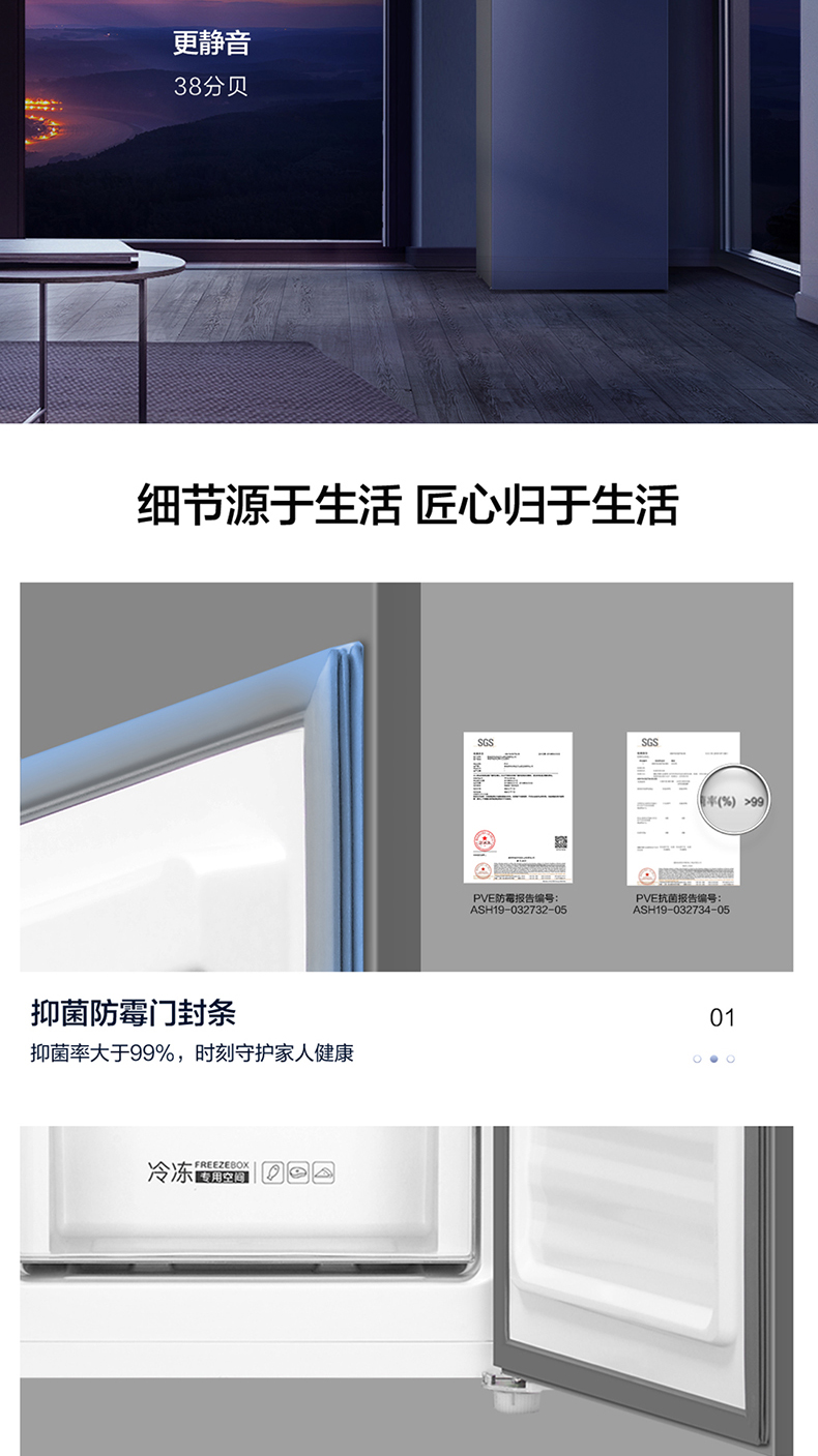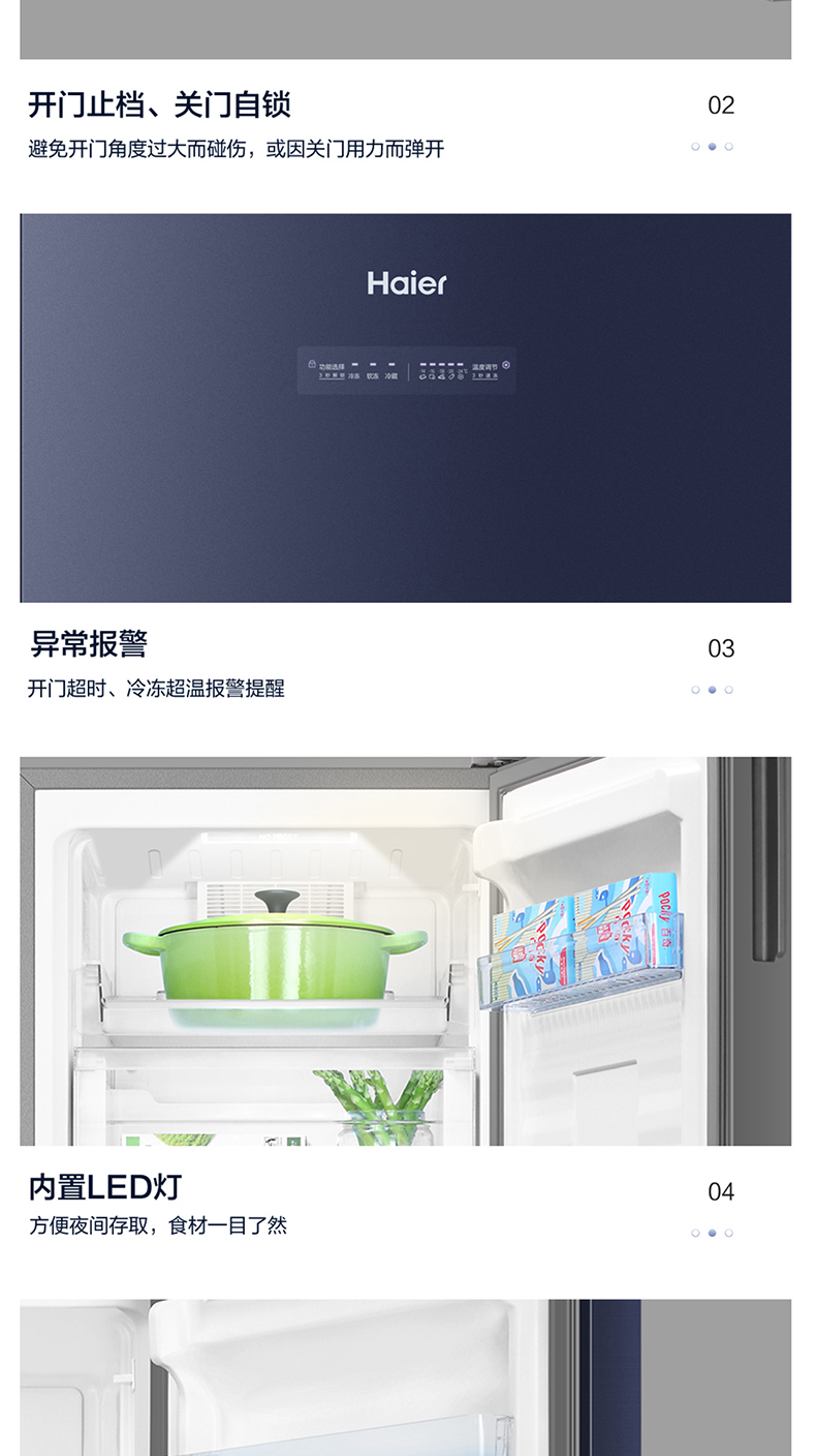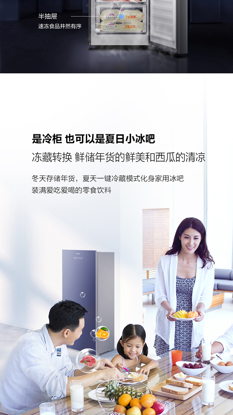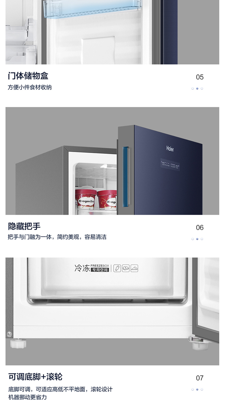 海尔立式冰柜 152升家用冷藏冷冻冷柜 风冷无霜 一级能效 飨宴系列 BD-152WEGK-肤感晶釉蓝